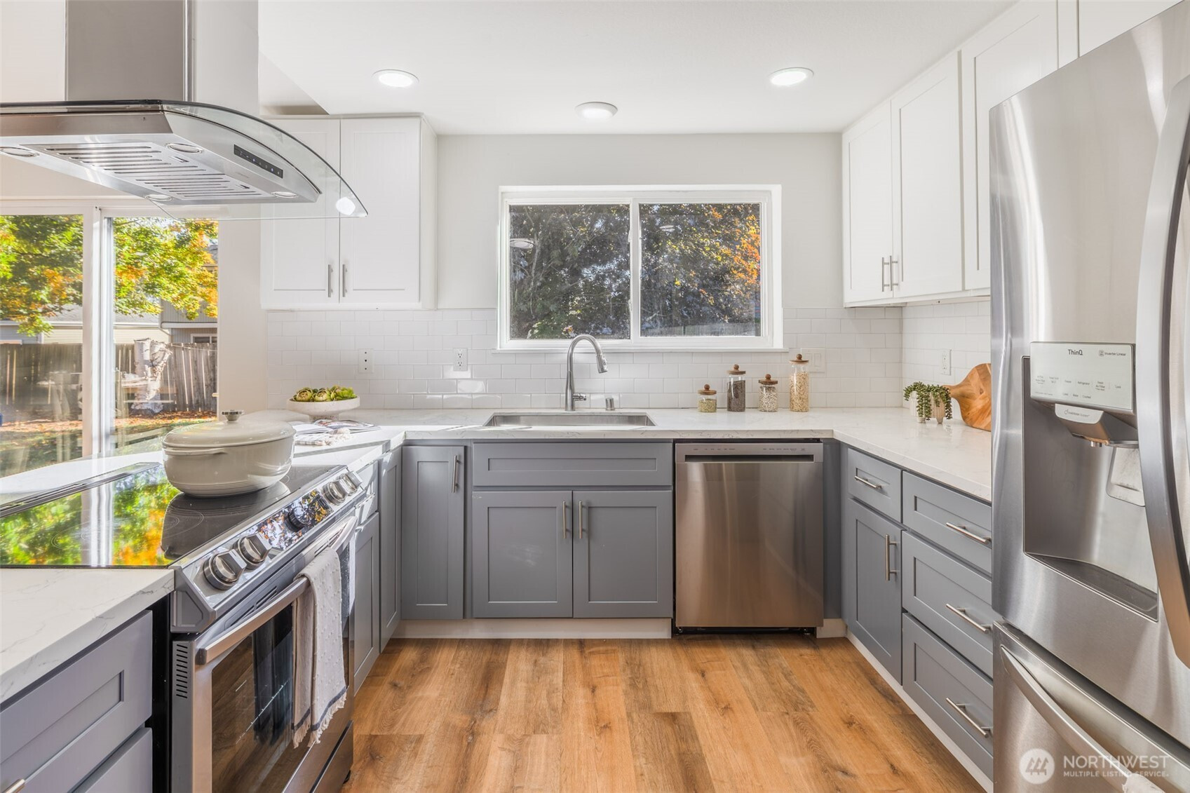 Welcome to this beautifully updated 3-bedroom, 2-bath rambler in the desirable Seven Oaks neighborhood. Enjoy an open and functional layout with LVP flooring, a spacious kitchen featuring quartz countertops, updated cabinets, and stainless steel appliances. Fresh interior and exterior paint, new carpet in all bedrooms, and recently remodeled bathrooms make this home truly move-in ready. The generous yard offers room to relax or play, and the quiet Seven Oaks community includes a park while keeping you close to all that Kent has to offer. Pre-inspected for peace of mind—don’t miss this incredible opportunity!