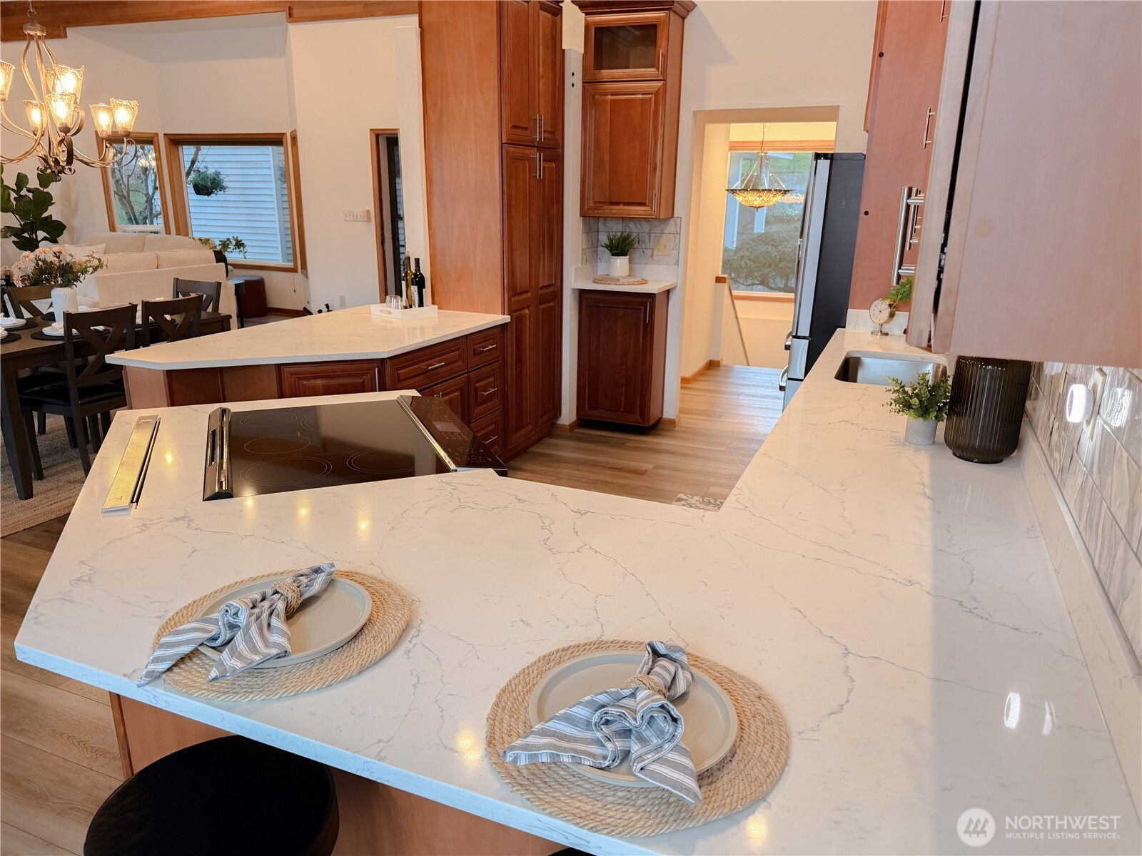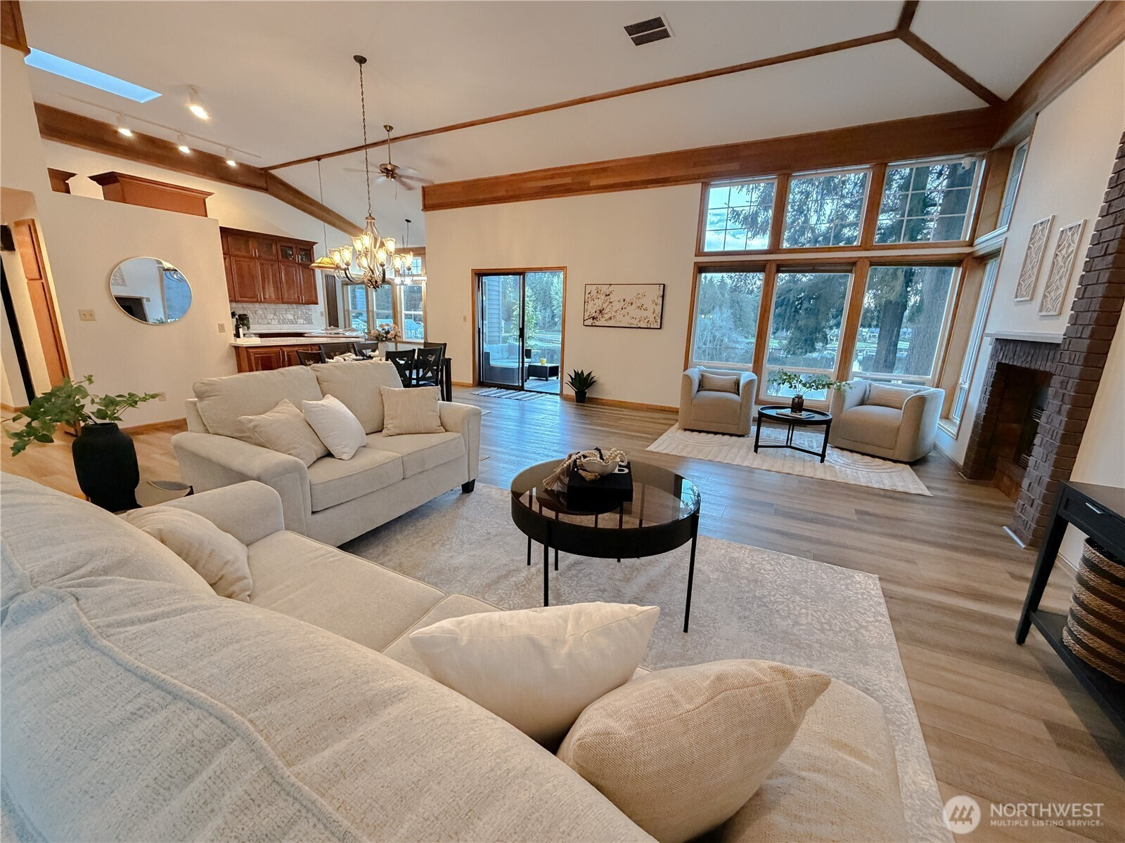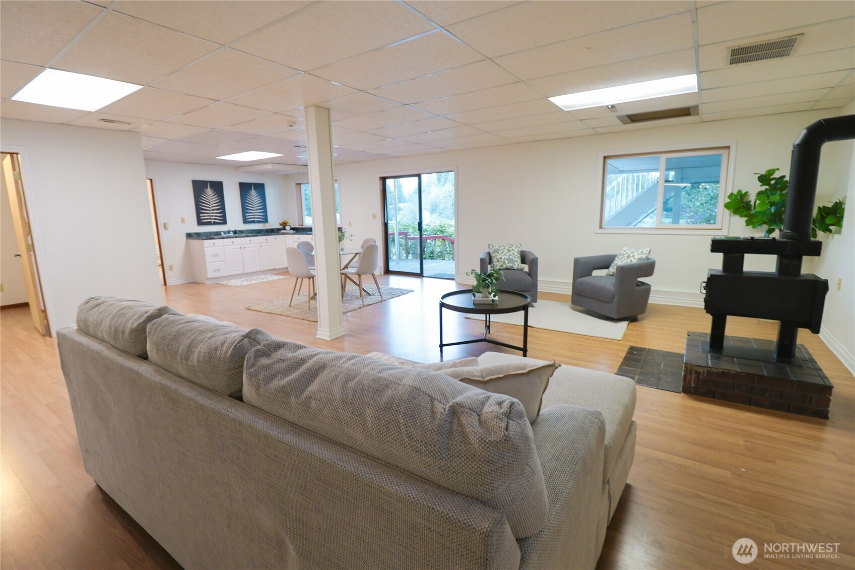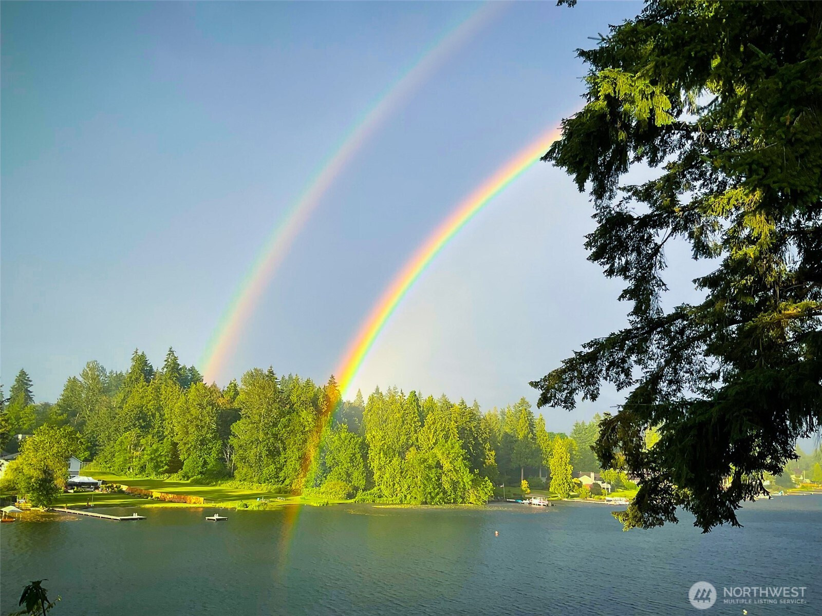 Welcome to stunning Lake Meridian, where 100' of waterfront & breathtaking views of Mt. Rainier offer an extraordinary lifestyle. Enjoy motorized boating, kayaking, fishing & abundant wildlife in your backyard. Entertaining is a dream with this property. A flat yard at lake level with both a deck, dock, & fire pit is perfect for swimming & launching watercraft, a deck off the main living room frames stunning views & visiting eagles, a covered patio below offers shelter when needed & the hot tub is pure magic day or night. Step inside to a breathtaking great room w/vaulted ceilings, tons of windows & warm wood accents. The kitchen shines with rich American cherry cabinets, quartz countertops & stainless steel appliances. Enjoy your primary suite on the main, fresh interior paint, new carpet & a concrete tile roof. The basement mother-in-law suite features a kitchenette, two potential bedrooms, a full bathroom & its own entrance, ideal for rental income. An additional 740 sf unfinished workshop space offers exciting potential (3,770 sf total). This sale includes two parcels & a two-car garage w/a large storage area. STRs are permitted, making this an exceptional investment opportunity! Centrally located between Seattle & Tacoma with quick access to Hwy 18; five blocks from restaurants, shops & fitness centers; minutes from Meridian Valley Country Club & minutes to Soos Creek Park & Trail for dog walking & biking. Don't miss this rare waterfront gem!