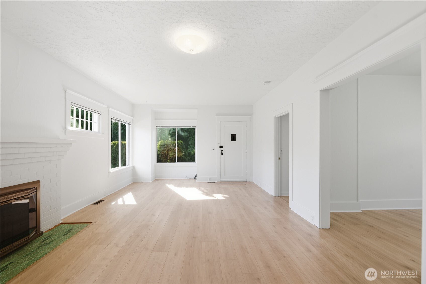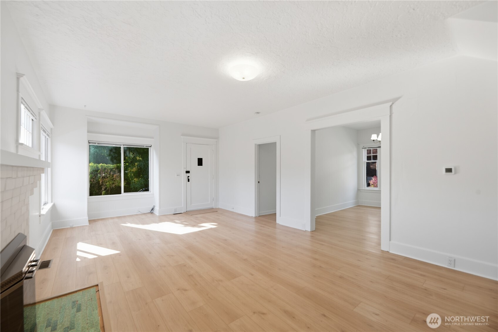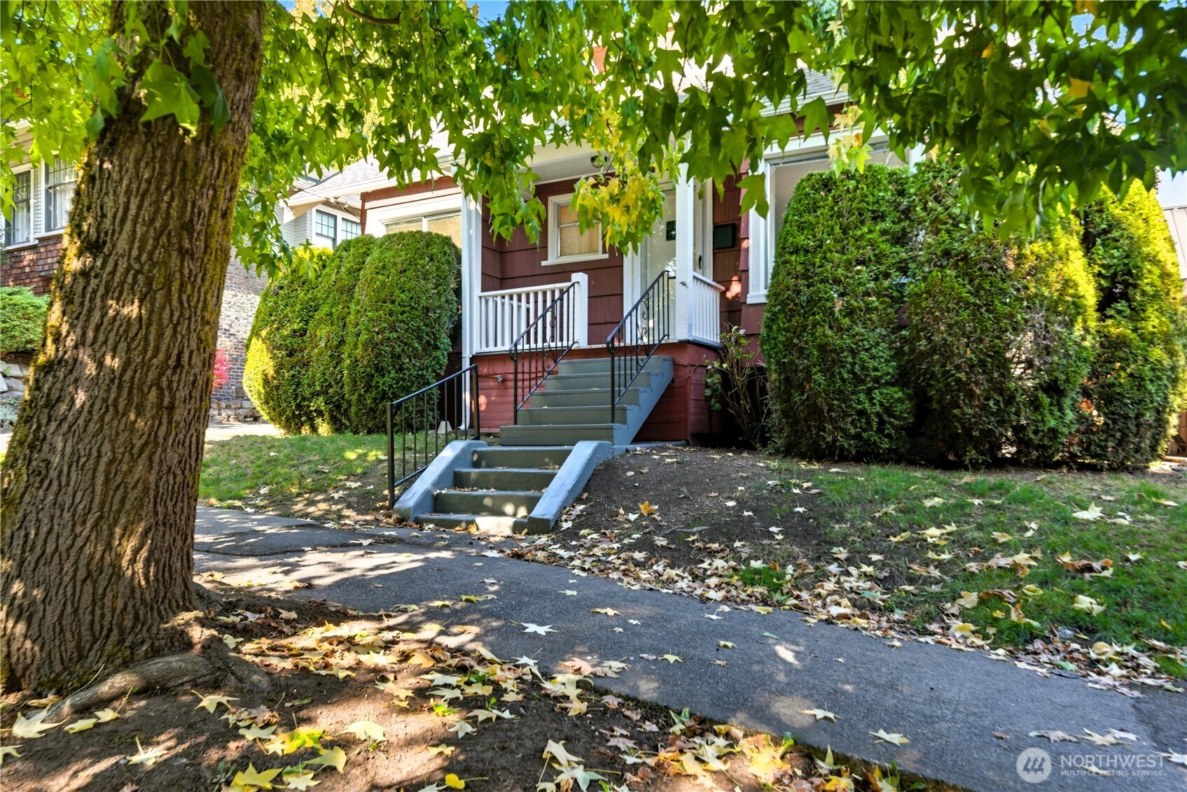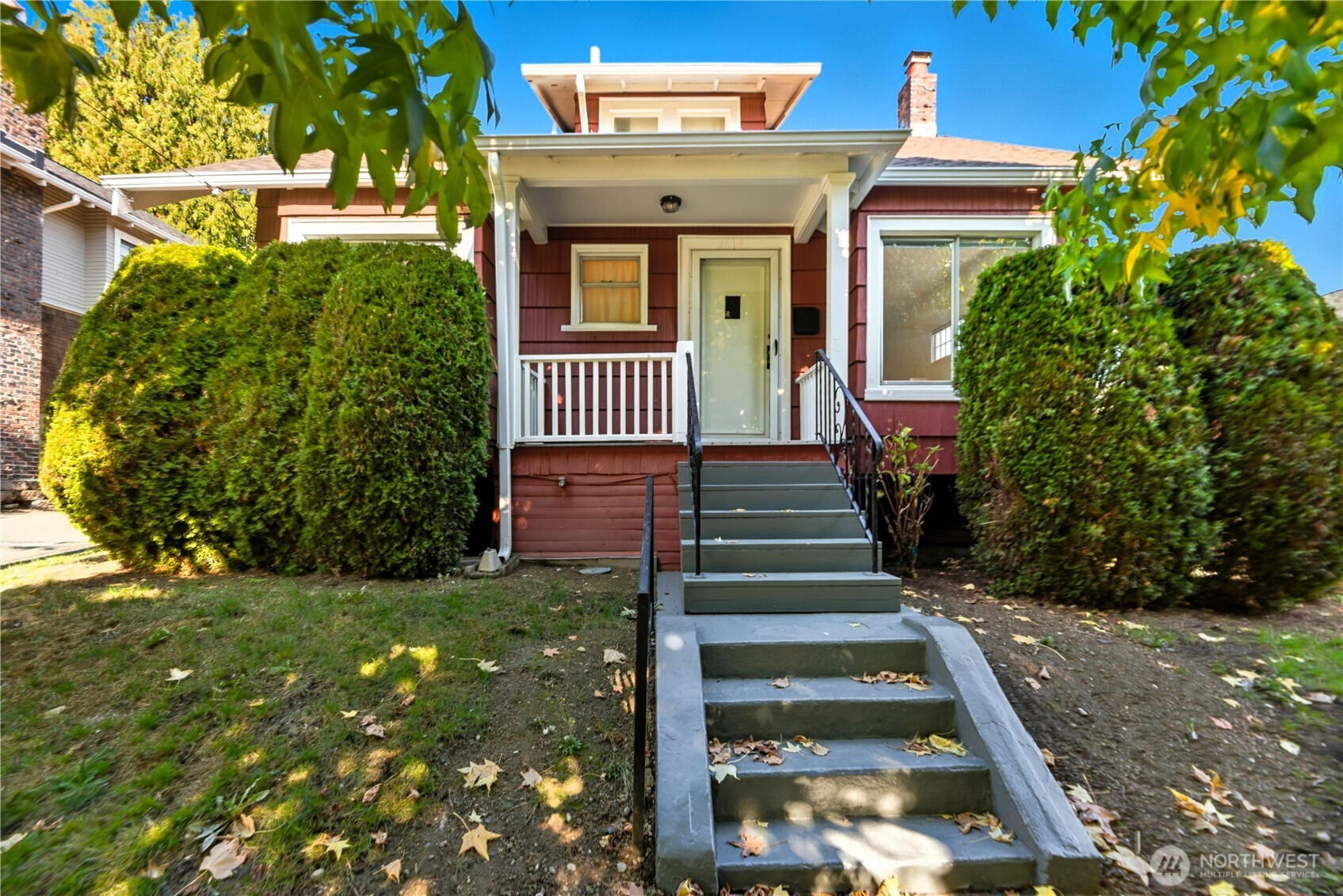 Light and bright charming craftsman home in quiet neighborhood with inviting front porch. Updated flooring, interior & exterior paint, newer roof. Generous living room with high ceilings & cozy wood-burning fireplace, dining room & Primary Bedroom with 1/2 bath. Large kitchen area with breakfast nook. Access to basement with one non-conforming finished bedroom, plenty of storage space & laundry. Newer forced air furnace. Upper floor features two bedrooms with vaulted ceilings & full-bath. Level yard with off-street parking for two cars (add a garage and ADU on top!), back porch & backyard area for entertaining with alley access. Easy walk to Madrona, Madison Valley, restaurants, shops, bus line & parks. Owned by family since 1954!
