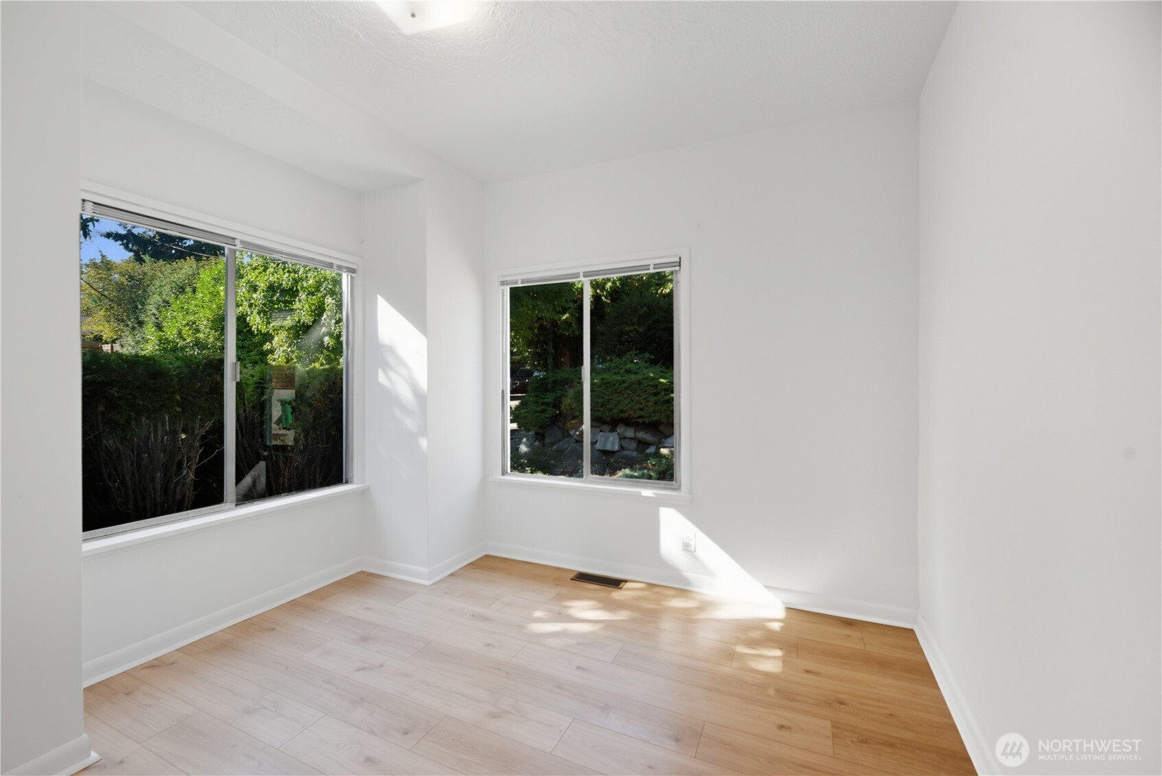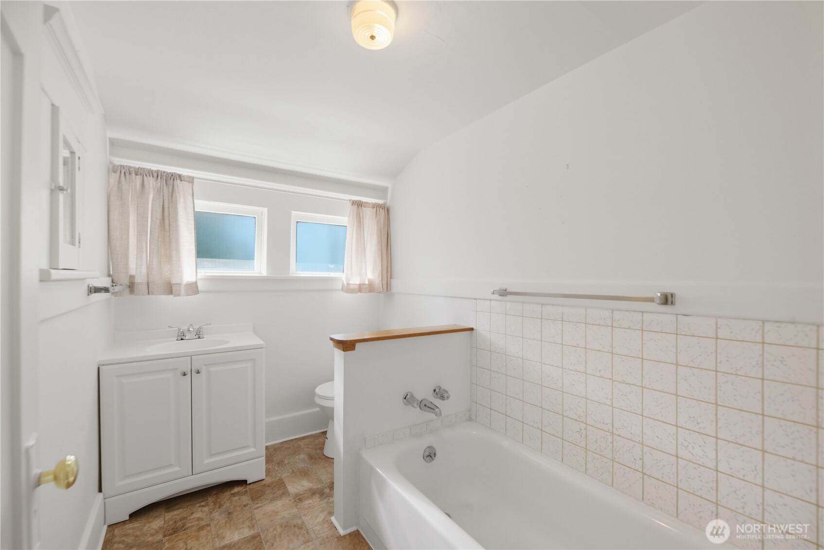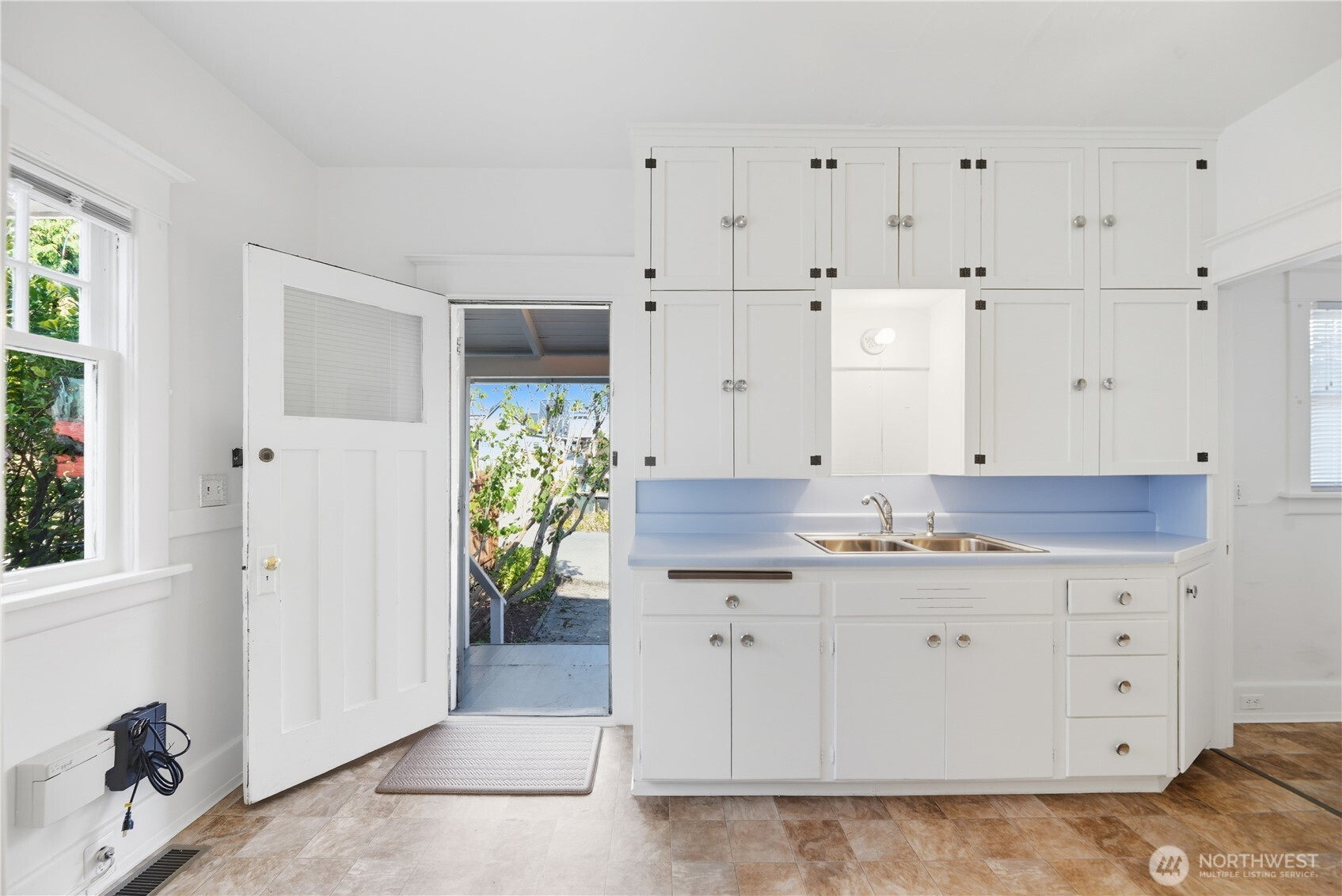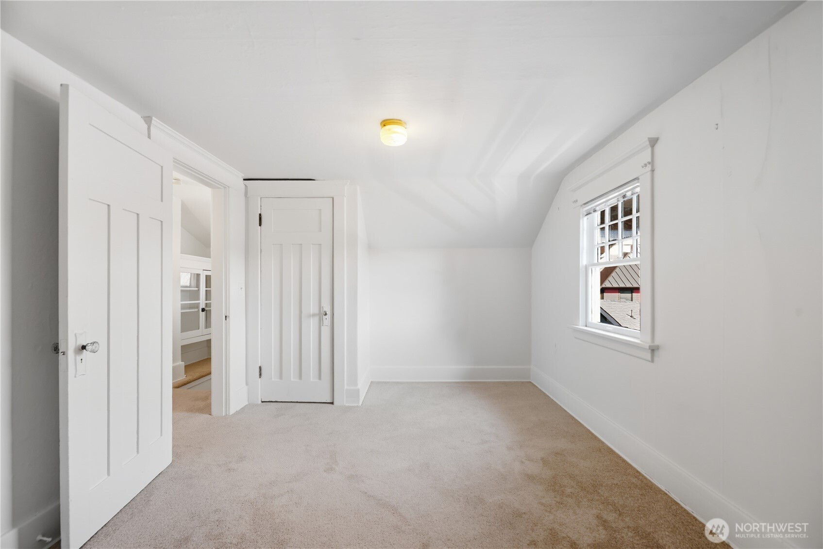 Light and bright charming craftsman home in quiet neighborhood with inviting front porch. Updated flooring, interior & exterior paint, newer roof. Generous living room with high ceilings & cozy wood-burning fireplace, dining room & Primary Bedroom with 1/2 bath. Large kitchen area with breakfast nook. Access to basement with one non-conforming finished bedroom, plenty of storage space & laundry. Newer forced air furnace. Upper floor features two bedrooms with vaulted ceilings & full-bath. Level yard with off-street parking for two cars (add a garage and ADU on top!), back porch & backyard area for entertaining with alley access. Easy walk to Madrona, Madison Valley, restaurants, shops, bus line & parks. Owned by family since 1954!