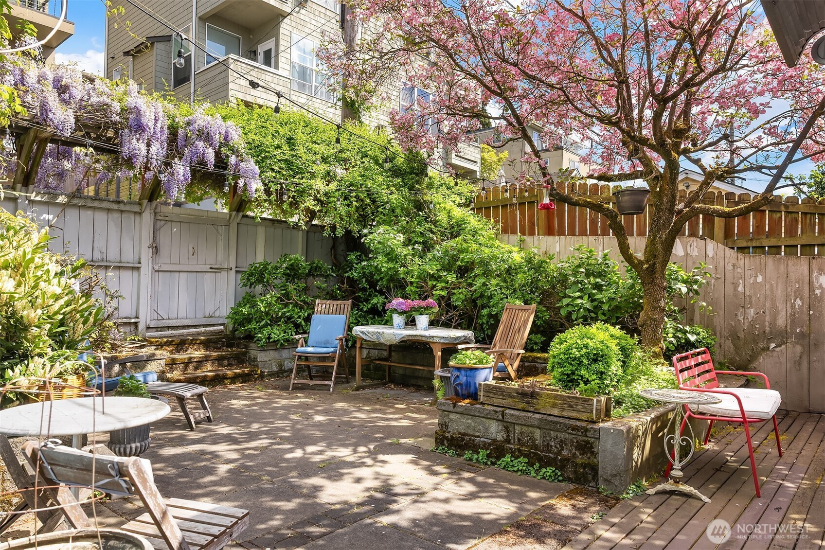 Eastlake Craftsman blends timeless charm with urban convenience. Nearly 3,000 sq. ft. of flexible living includes 4 bedrooms, 3 baths, plus 2 bonus attic rooms. A wisteria-draped porch leads to a living room with leaded glass windows, hardwoods, built-ins, and fireplace. Dining glows with southern light, the kitchen offers a cozy breakfast bar. Upstairs bedroom and bonus rooms capture territorial views, glimpses of Lake Union & Queen Anne, with a sunny deck. The lower level adds a bedroom, TV room, and workshop space. Outdoors: A private fenced patio oasis, mature greenery, with a rare two-car garage! Walk to tennis courts and Lake Union’s waterfront parks. Steps to Eastlake’s cafes and TOPS K-8. Zoned LR2 for future development potential.