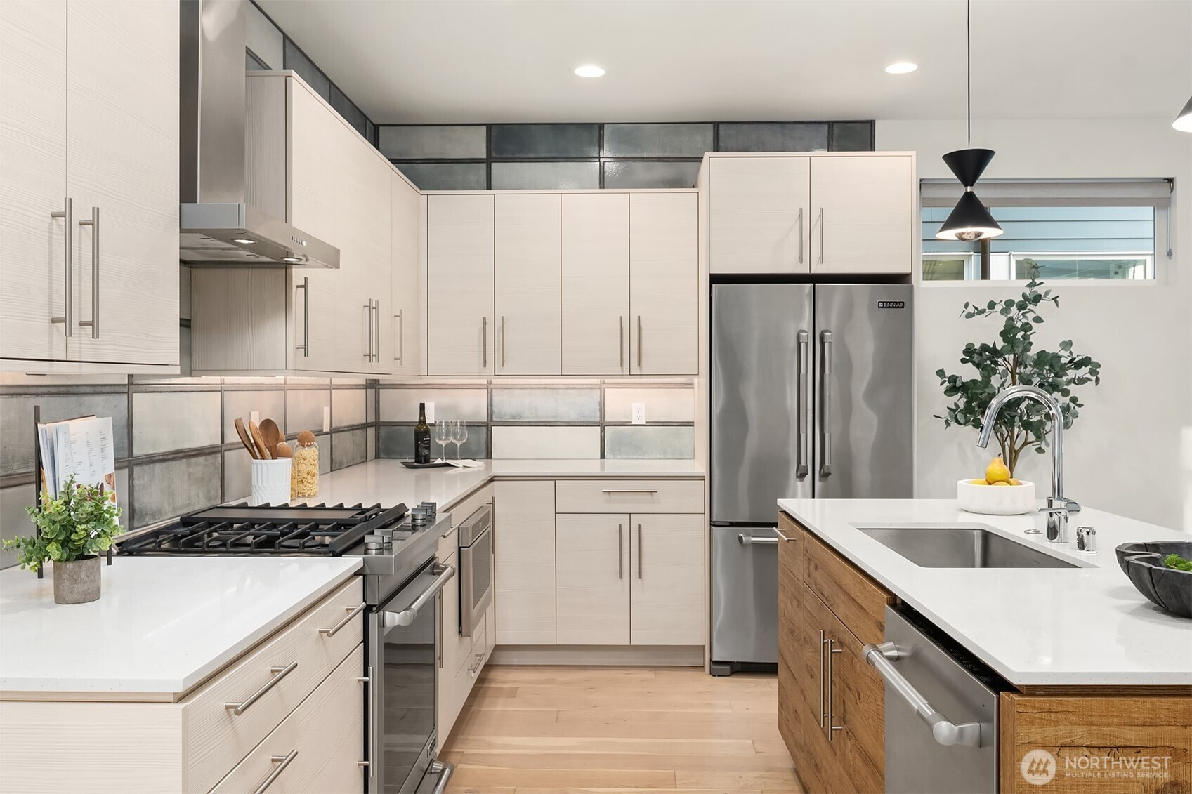 In a sea of sameness, require better. This home delivers w/key features that everyone would prefer but rarely appear in one package: This is a standalone home w/no shared walls. It is set away from the street for enhanced peace, privacy & security. Key windows feature a wall of greenery. Garage is attached & set in a wide courtyard making for easy parking & getting to know neighbors (street prkg is readily avail as well). The finishes are an elevated, fresh take. Best of all, location: get to SLU, DT, Fremont, Ballard in minutes, and of course Queen Anne w/beloved Coe Elem and Rogers Park, which serves as the hub for dog & playground afficionados alike. A far superior floorplan than you’ll see in the 2025/2026 THs with new carpet & paint.