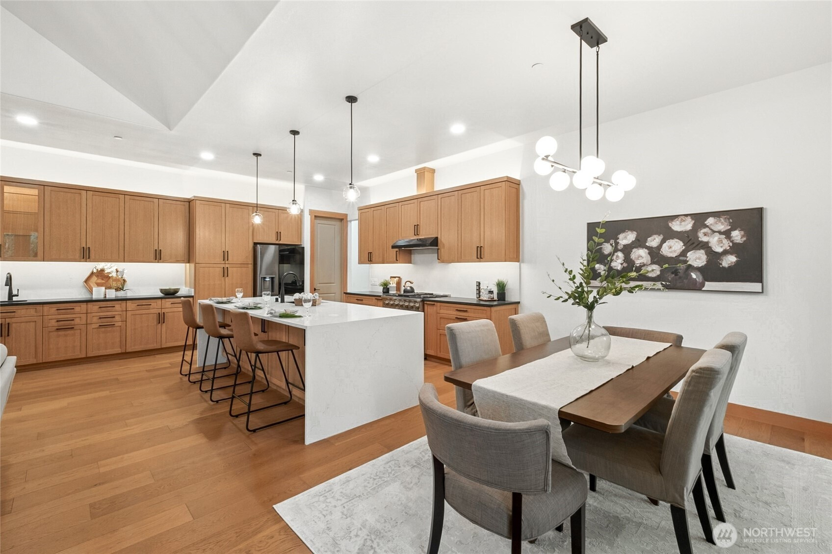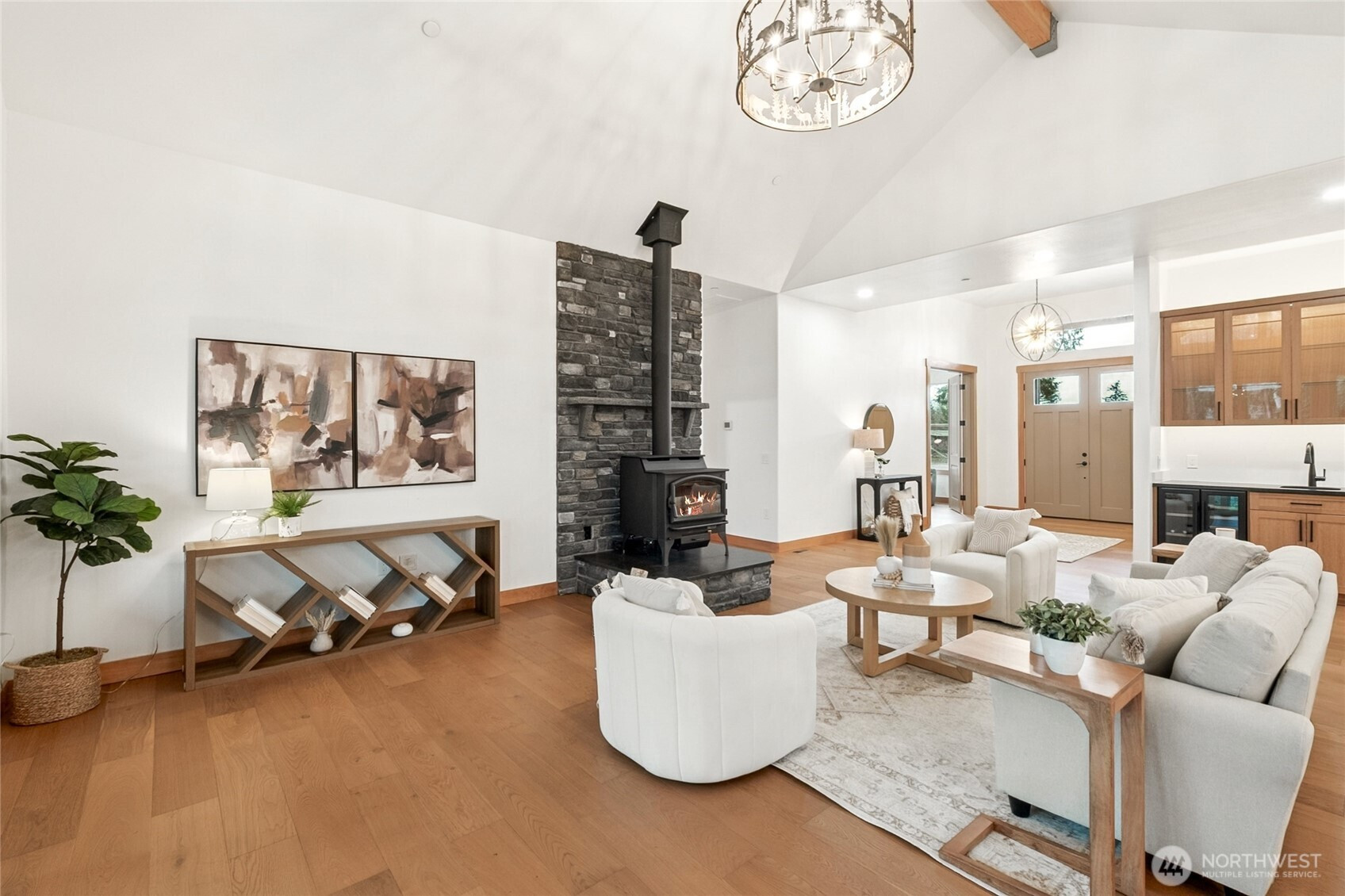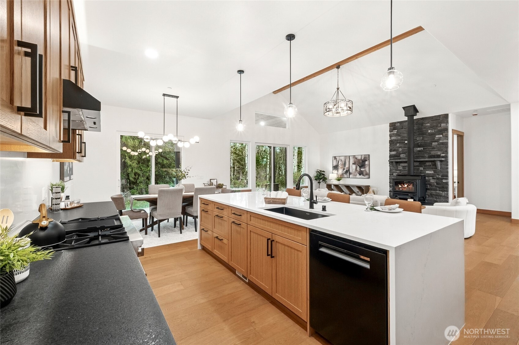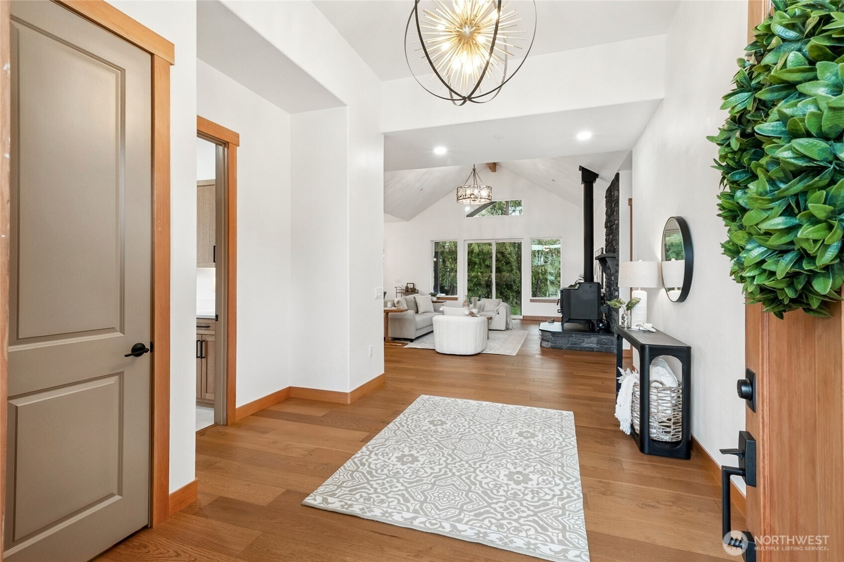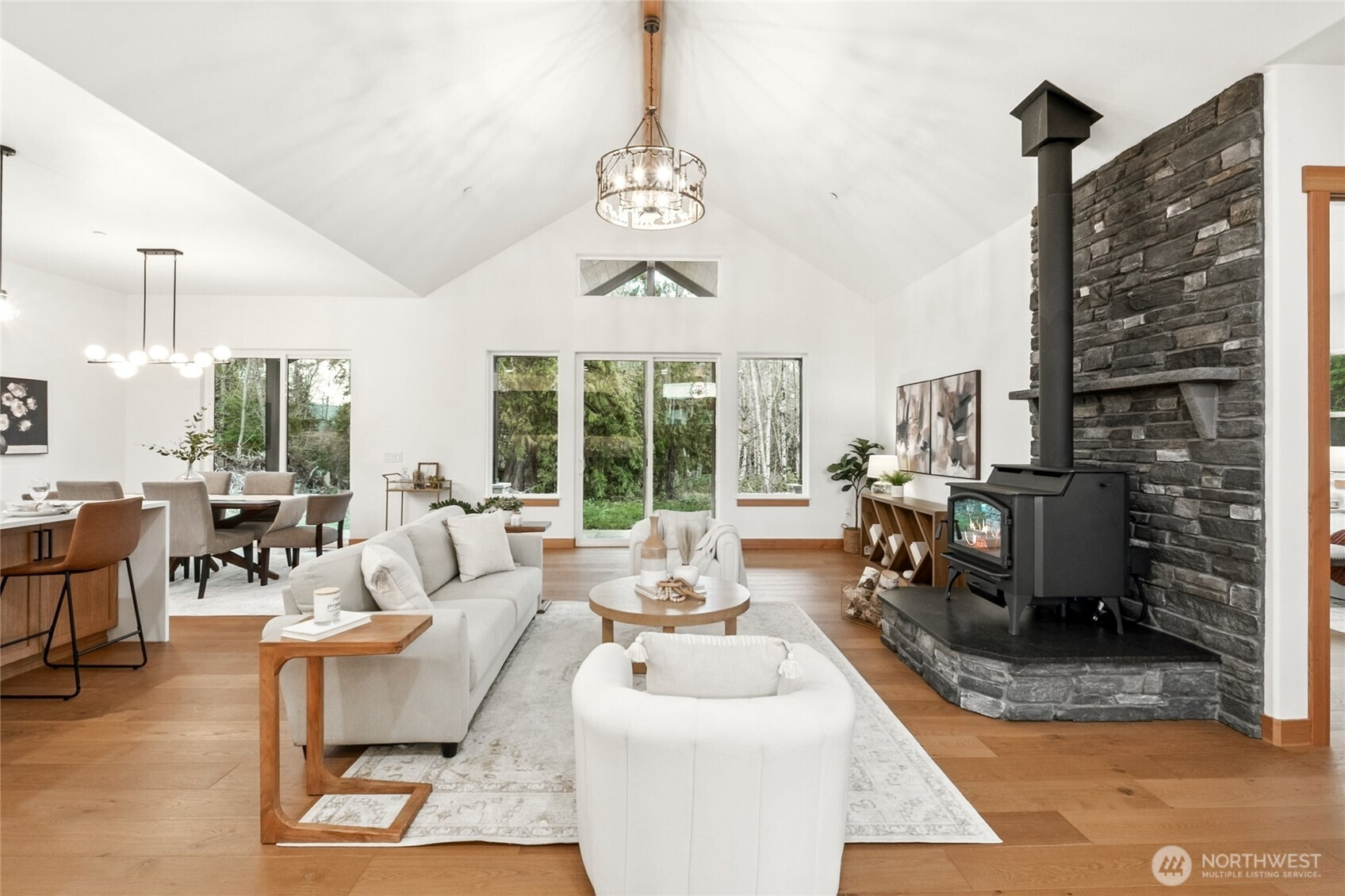 Exquisite new custom-built estate set on shy 5 level acres, offering rare one-level luxury living. Superior craftsmanship & refined finishes throughout. The chef’s kitchen is a true showstopper, offering a waterfall island w/seating, premium SS appliances, & custom solid oak cabinetry w/ in, under & up-cabinet lighting. The great room, featuring wood stove w/custom stonework, flows seamlessly into the kitchen, dining area, & entry—the perfect layout. The luxurious main-floor primary suite offers a slider to the patio, a massive WIC, and a spa-inspired bath w/ heated floors, soaking tub, walk-in shower, & dual sinks. Two add’l main-level BRs each feature en suite baths & WICs. All BR interior walls are insulated for sound. A spacious office w/ lg WIC, plus a ½ bath & laundry rm, complete the main level. Upstairs, an ideal guest retreat awaits w/ bonus loft, BR w/ WIC, & full bath. From quartz windowsills & lighted fog-free vanity mirrors to durable HardiPlank siding & 400amp service for future expansion, no detail was overlooked. Dual-fuel furnace w/ heat pump & A/C ensures year-round comfort. The private well delivers outstanding water. 930 SF garage offers space for hobbies. Stamped concrete patio is covered & plumbed for gas—imagine the BBQs. Privately sited at the end of a long gravel drive, yet minutes to dining & located in the coveted Tahoma SD. A rare opportunity to own a truly exceptional home. DO NOT USE GPS. From Landsburg Rd, turn onto SE 264th (NOT unmarked 276th)