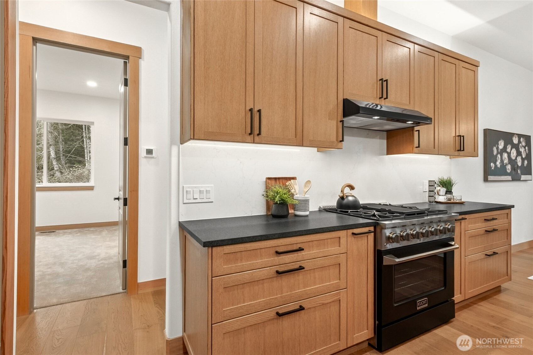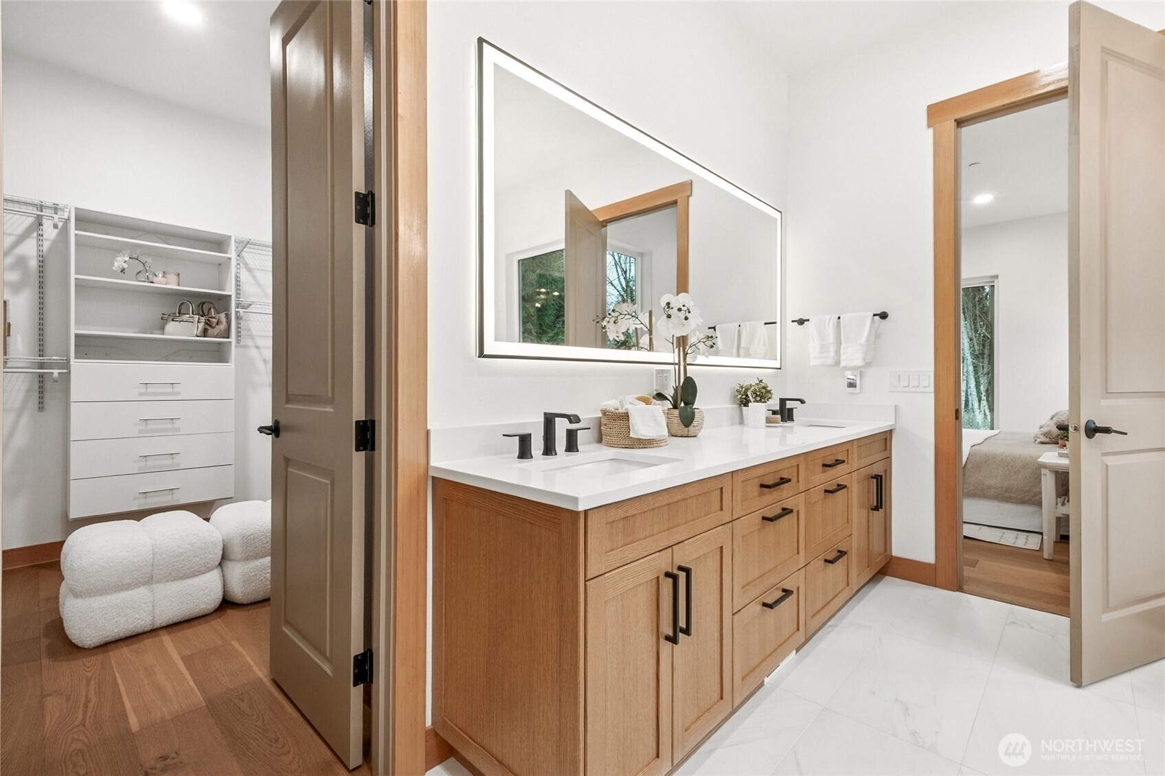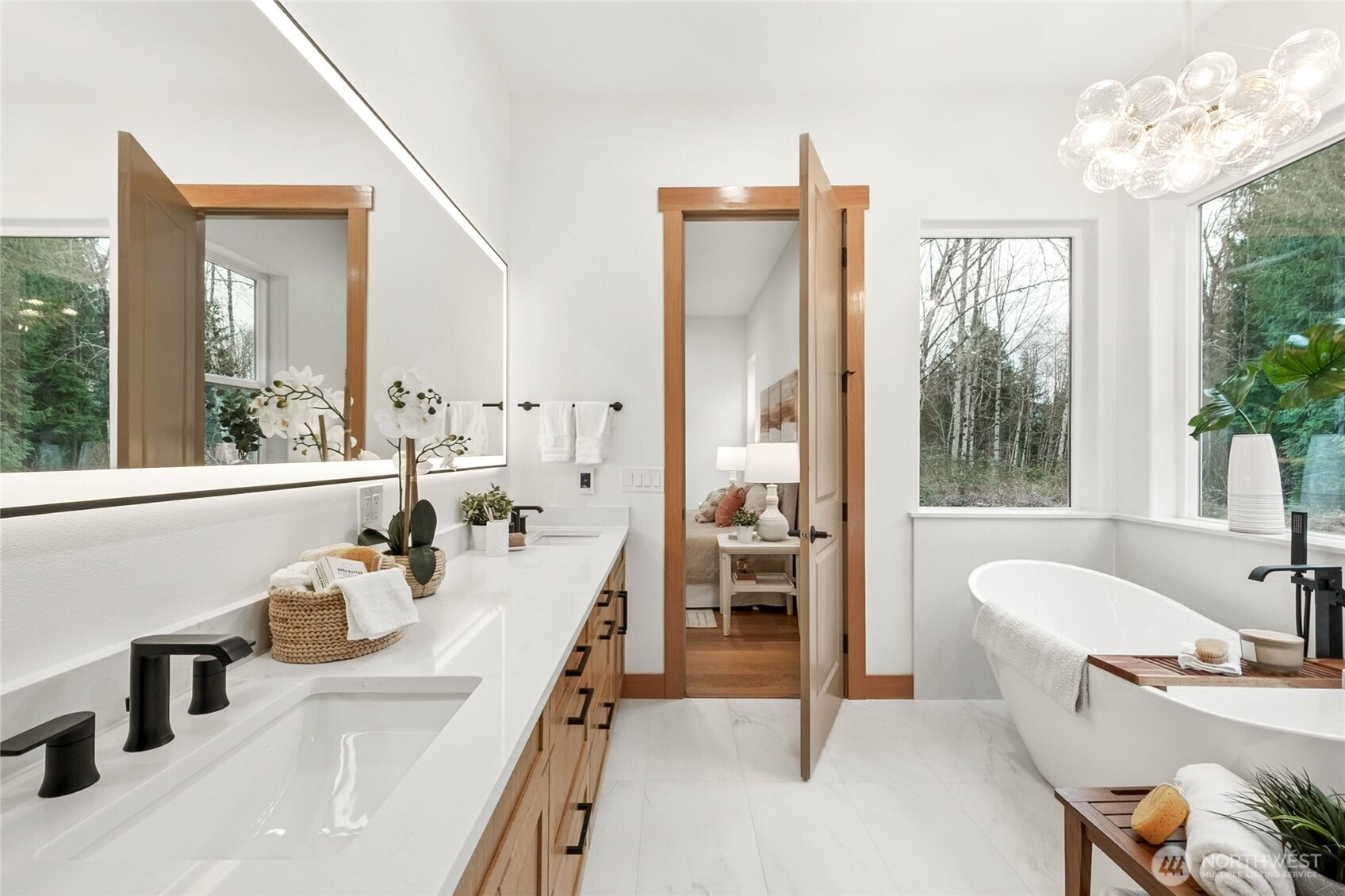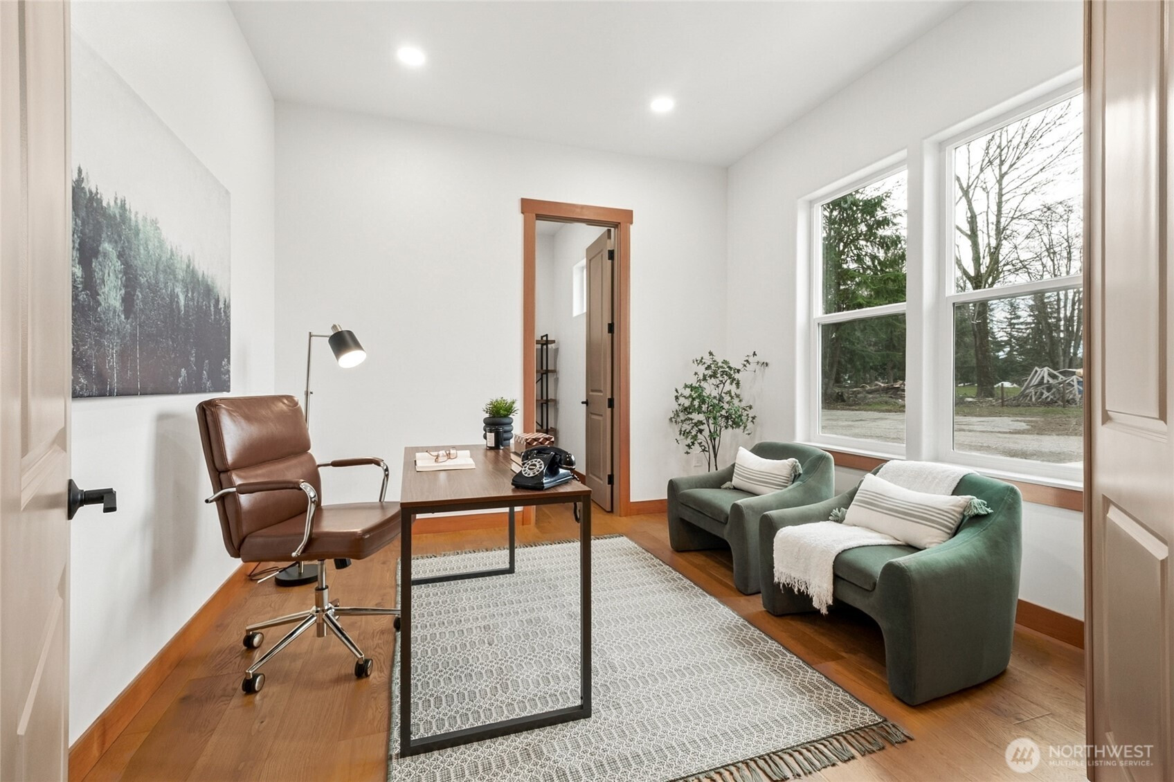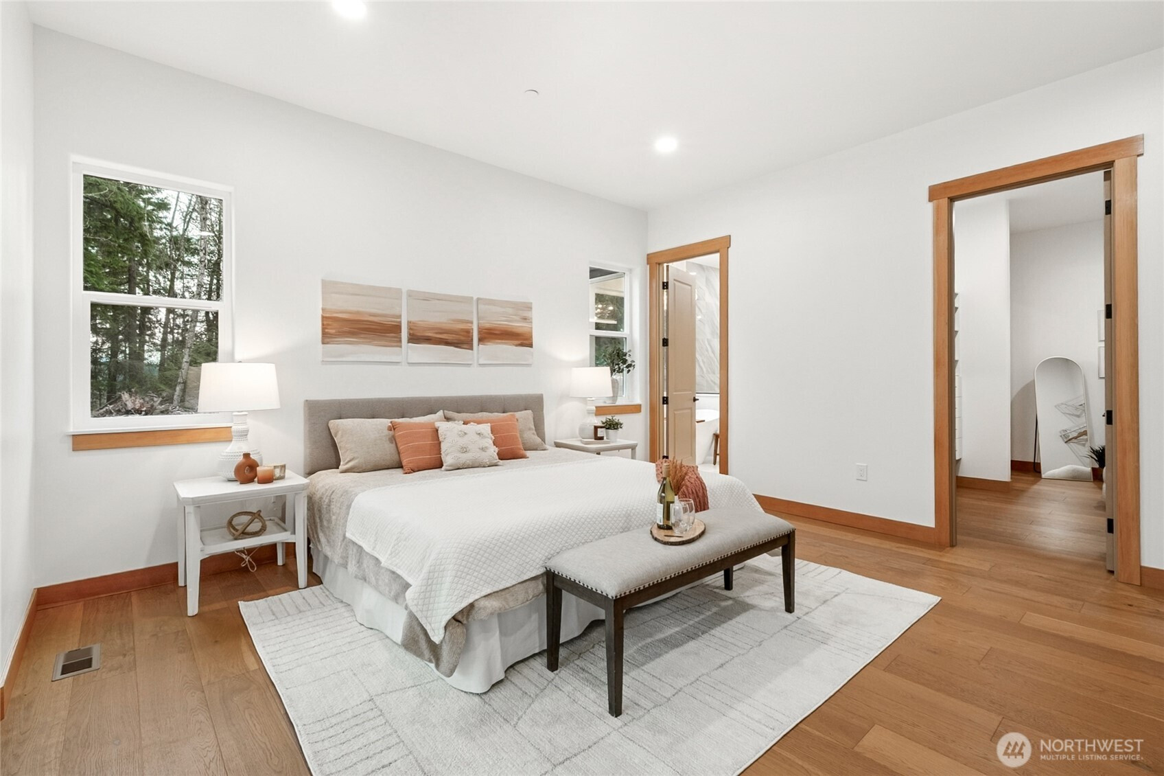 Exquisite new custom-built estate set on shy 5 level acres, offering rare one-level luxury living. Superior craftsmanship & refined finishes throughout. The chef’s kitchen is a true showstopper, offering a waterfall island w/seating, premium SS appliances, & custom solid oak cabinetry w/ in, under & up-cabinet lighting. The great room, featuring wood stove w/custom stonework, flows seamlessly into the kitchen, dining area, & entry—the perfect layout. The luxurious main-floor primary suite offers a slider to the patio, a massive WIC, and a spa-inspired bath w/ heated floors, soaking tub, walk-in shower, & dual sinks. Two add’l main-level BRs each feature en suite baths & WICs. All BR interior walls are insulated for sound. A spacious office w/ lg WIC, plus a ½ bath & laundry rm, complete the main level. Upstairs, an ideal guest retreat awaits w/ bonus loft, BR w/ WIC, & full bath. From quartz windowsills & lighted fog-free vanity mirrors to durable HardiPlank siding & 400amp service for future expansion, no detail was overlooked. Dual-fuel furnace w/ heat pump & A/C ensures year-round comfort. The private well delivers outstanding water. 930 SF garage offers space for hobbies. Stamped concrete patio is covered & plumbed for gas—imagine the BBQs. Privately sited at the end of a long gravel drive, yet minutes to dining & located in the coveted Tahoma SD. A rare opportunity to own a truly exceptional home. DO NOT USE GPS. From Landsburg Rd, turn onto SE 264th (NOT unmarked 276th)