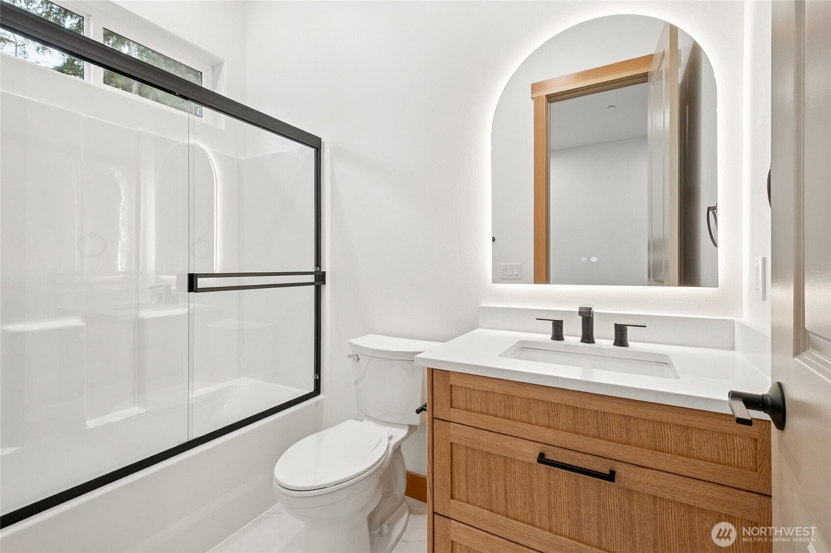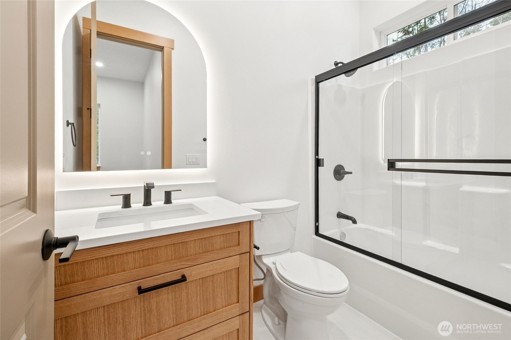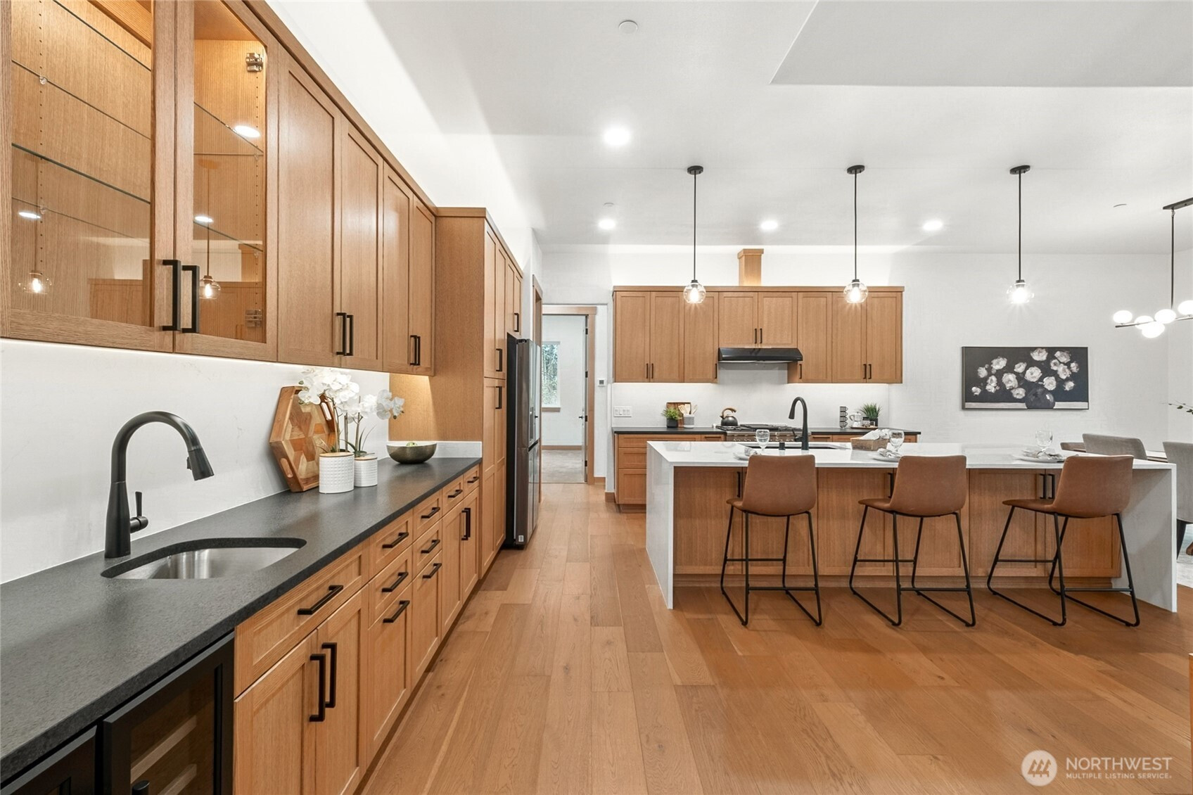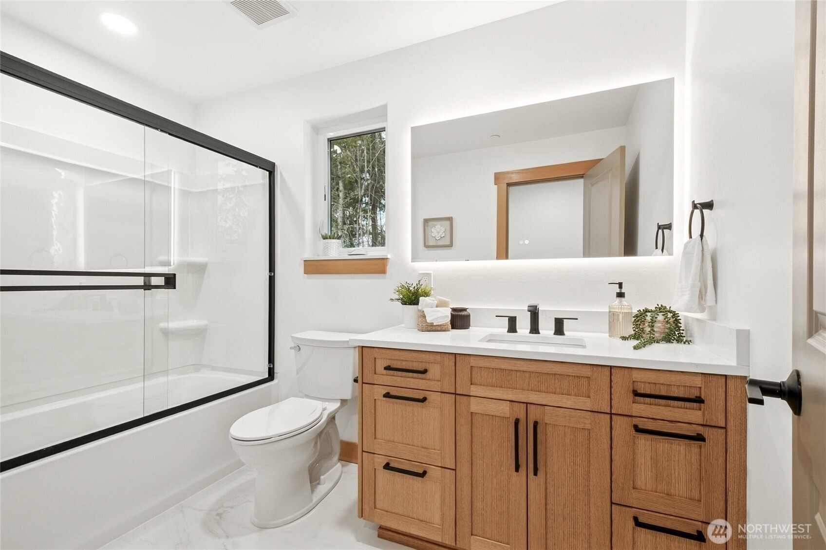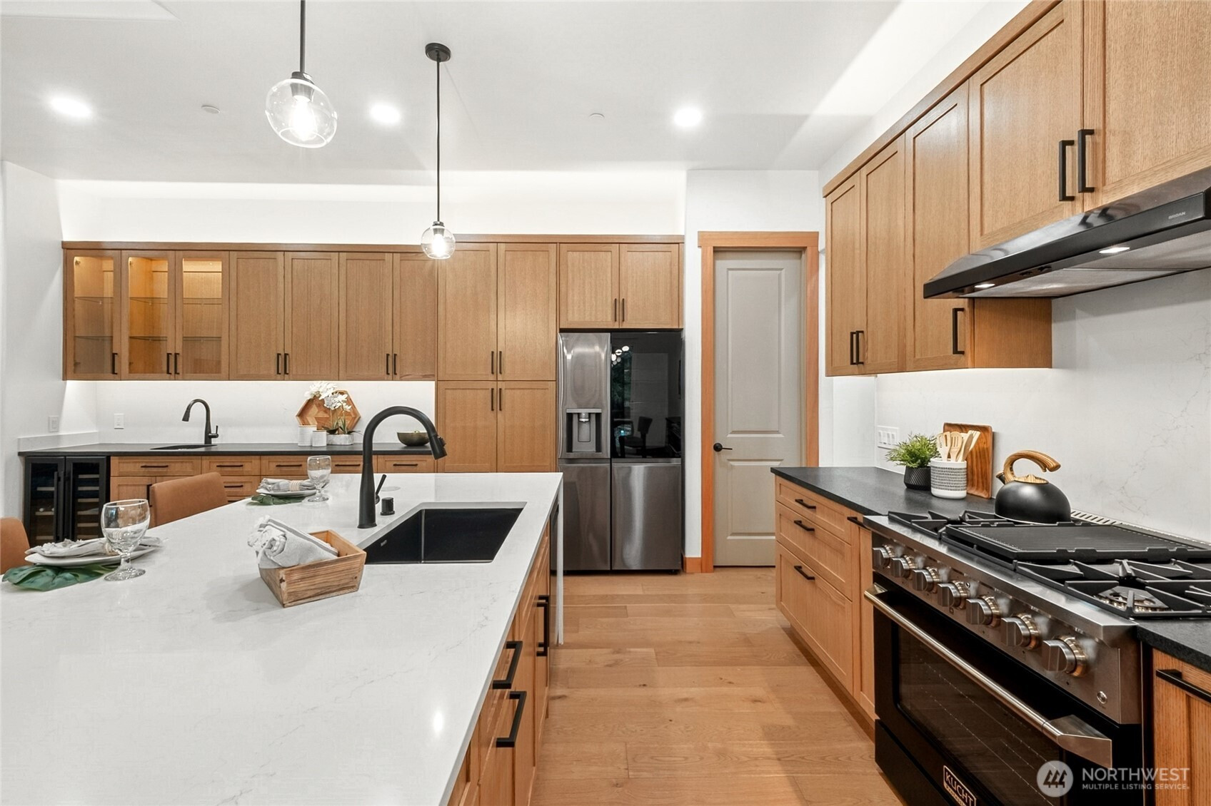 Exquisite new custom-built estate set on shy 5 level acres, offering rare one-level luxury living. Superior craftsmanship & refined finishes throughout. The chef’s kitchen is a true showstopper, offering a waterfall island w/seating, premium SS appliances, & custom solid oak cabinetry w/ in, under & up-cabinet lighting. The great room, featuring wood stove w/custom stonework, flows seamlessly into the kitchen, dining area, & entry—the perfect layout. The luxurious main-floor primary suite offers a slider to the patio, a massive WIC, and a spa-inspired bath w/ heated floors, soaking tub, walk-in shower, & dual sinks. Two add’l main-level BRs each feature en suite baths & WICs. All BR interior walls are insulated for sound. A spacious office w/ lg WIC, plus a ½ bath & laundry rm, complete the main level. Upstairs, an ideal guest retreat awaits w/ bonus loft, BR w/ WIC, & full bath. From quartz windowsills & lighted fog-free vanity mirrors to durable HardiPlank siding & 400amp service for future expansion, no detail was overlooked. Dual-fuel furnace w/ heat pump & A/C ensures year-round comfort. The private well delivers outstanding water. 930 SF garage offers space for hobbies. Stamped concrete patio is covered & plumbed for gas—imagine the BBQs. Privately sited at the end of a long gravel drive, yet minutes to dining & located in the coveted Tahoma SD. A rare opportunity to own a truly exceptional home. DO NOT USE GPS. From Landsburg Rd, turn onto SE 264th (NOT unmarked 276th)