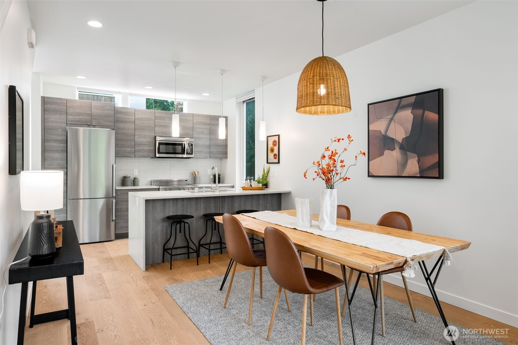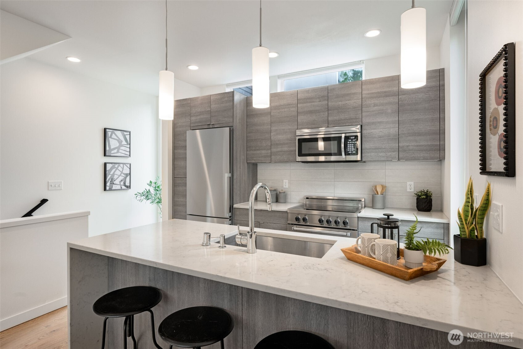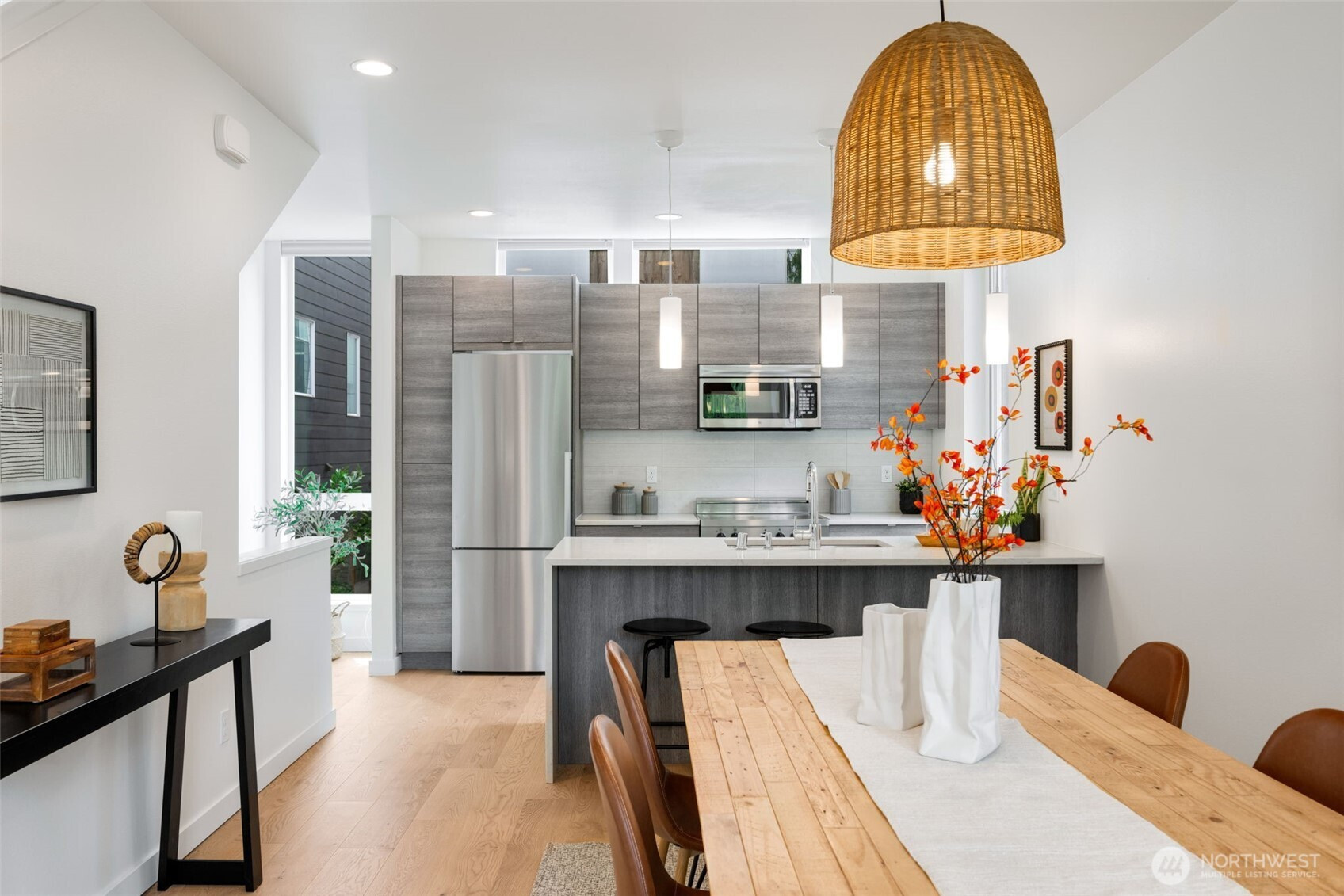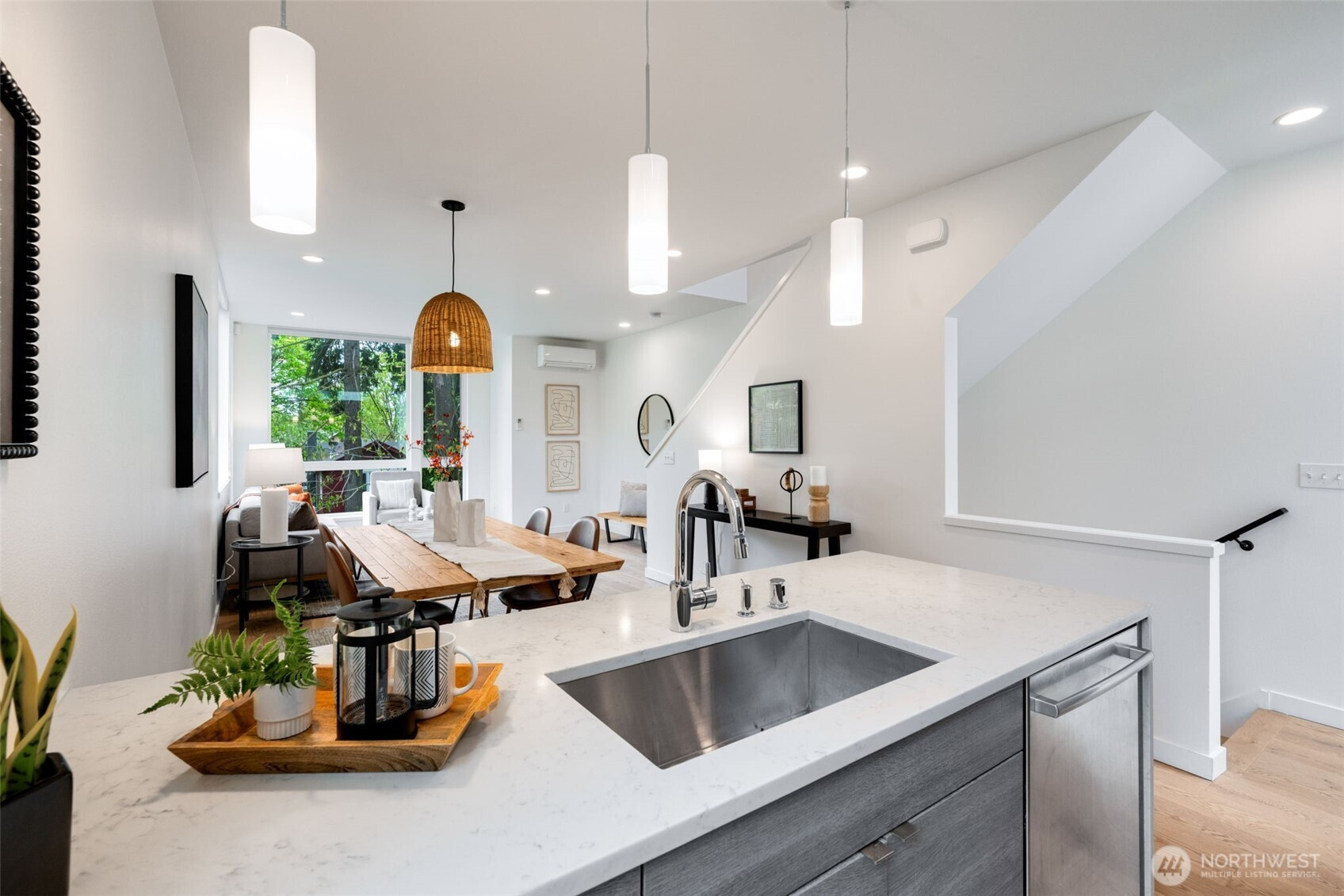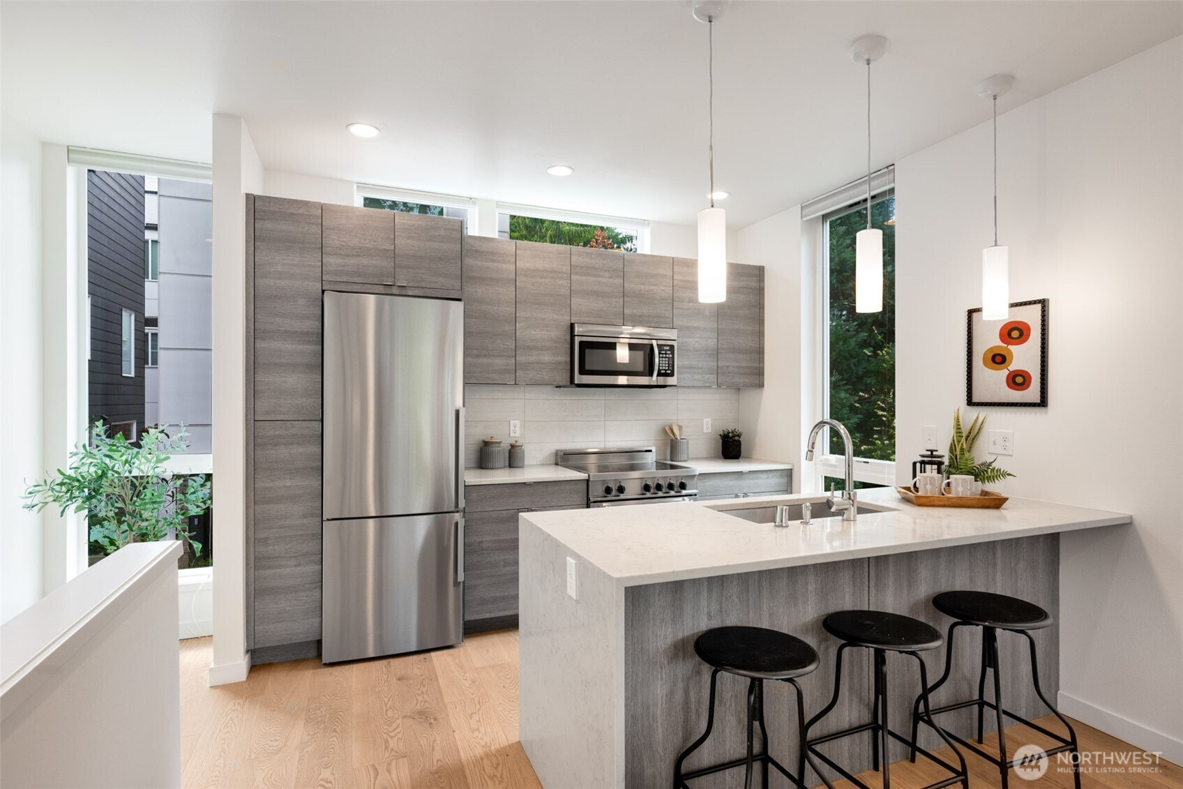 Imagine waking up to the sounds of nature while living in a modern townhome built in 2018. This nearly new end-unit townhome is tucked away along the surreal Longfellow Creek Greenspace, giving you a private retreat in Delridge that is still minutes from everything. The main level boasts an open-concept layout designed for entertaining, featuring a gourmet kitchen, room for a dining table, and a light-filled living room overlooking the greenspace. Retreat to the top floor, where you'll find a serene primary suite. The versatile lower level has two bedrooms, perfect for a home office, and provides direct access to your parking. Summer in Seattle is best spent on your private rooftop deck with sweeping views, kept cool by AC. Have a dog? A small fenced yard makes a perfect dog run. No HOA dues. Light Rail coming in 2032, you’ll be a quarter of a mile away!