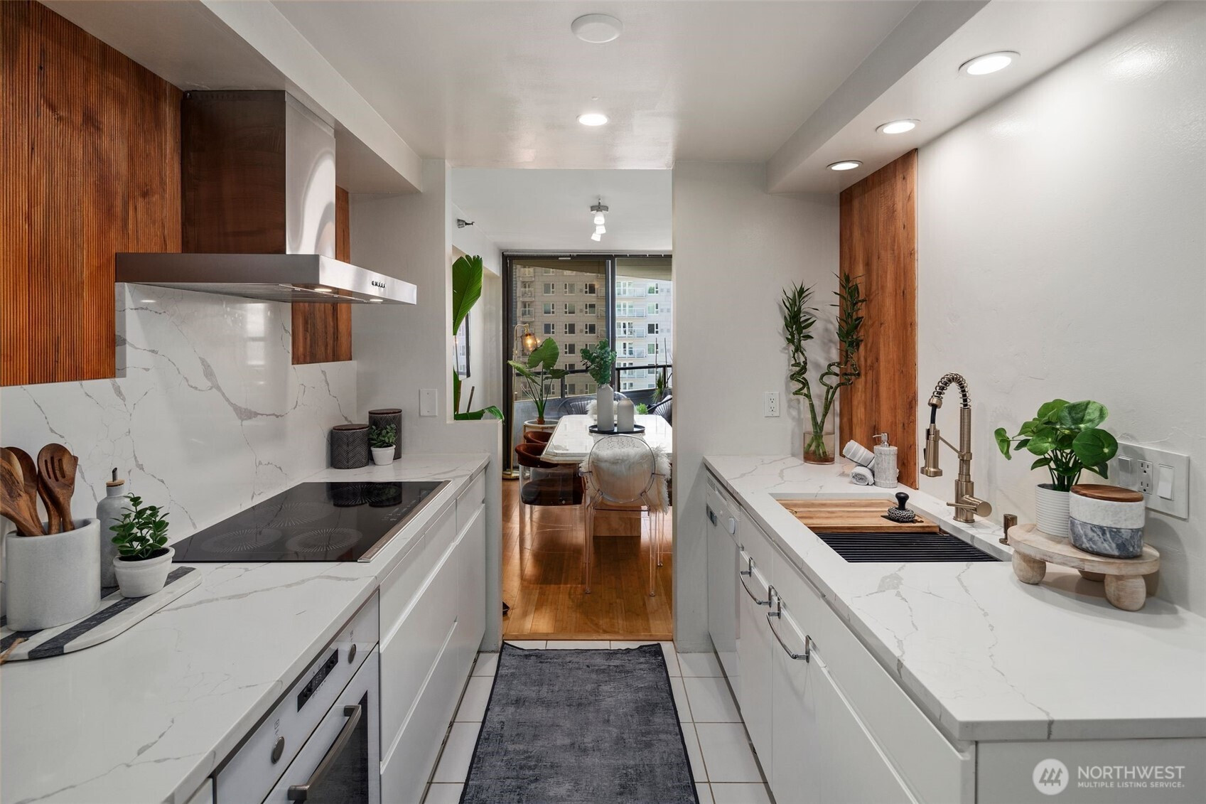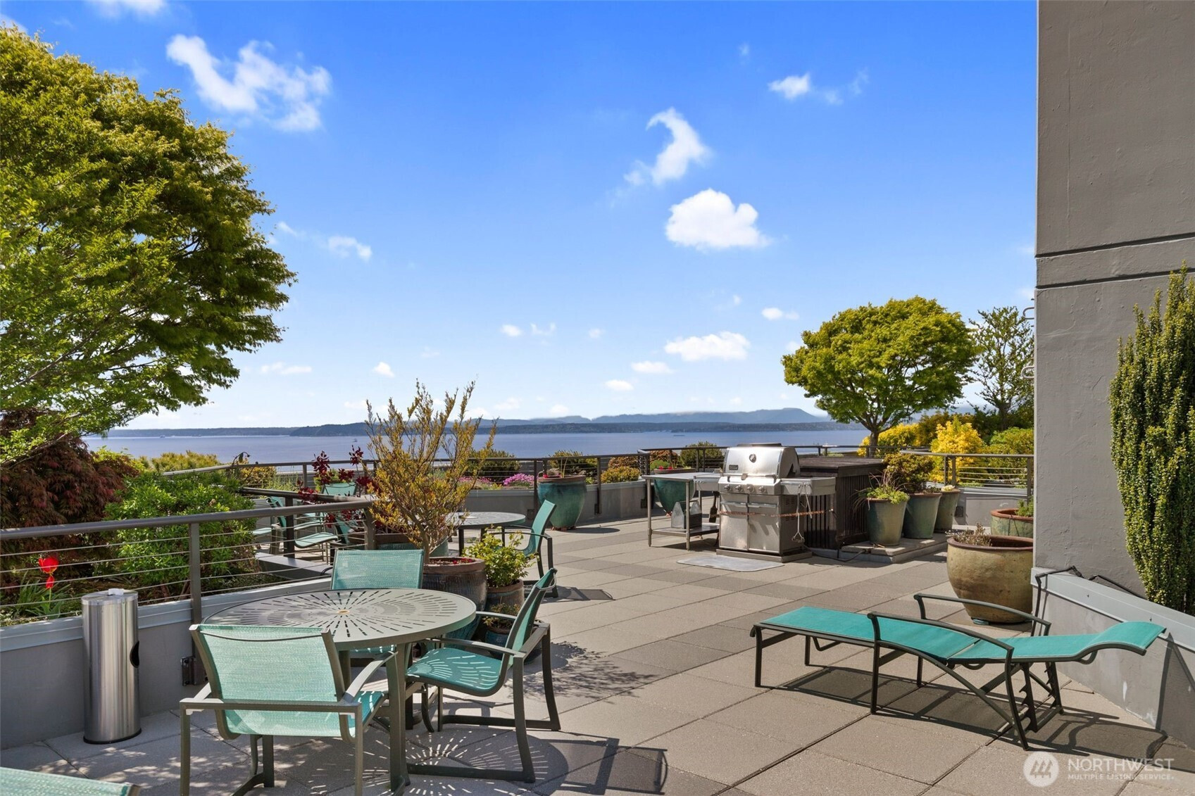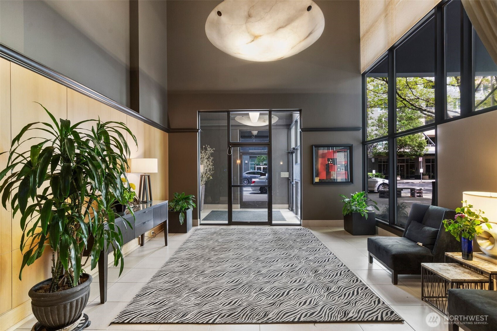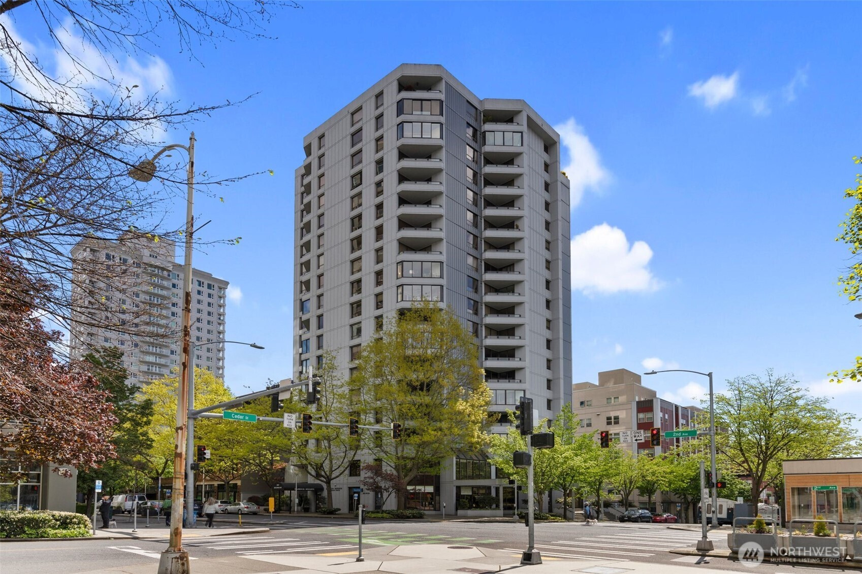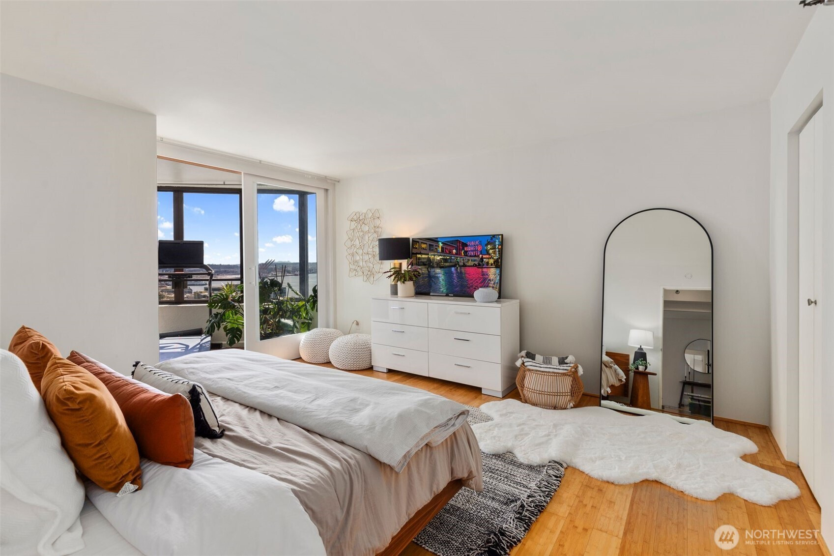 Panoramic views of the Puget Sound, Pier 51 and Mt. Rainier from this 16th floor 2 bed, 2 bath home that showcases the best of city living at Harbor Heights! Sun-filled, updated kitchen w/new appliances, counters, recessed lights, laundry room with extra storage, bamboo floors throughout. Primary suite features a custom walk-in closet organization system connecting to enclosed SW facing sunroom showcasing the stunning views. A steel and concrete building that includes fitness room, outdoor pool, spa/sauna, on-site manager, as well as party room, spectacular landscaped view rooftop garden with seating and BBQs to entertain. . One assigned parking spot. Well managed HOA.