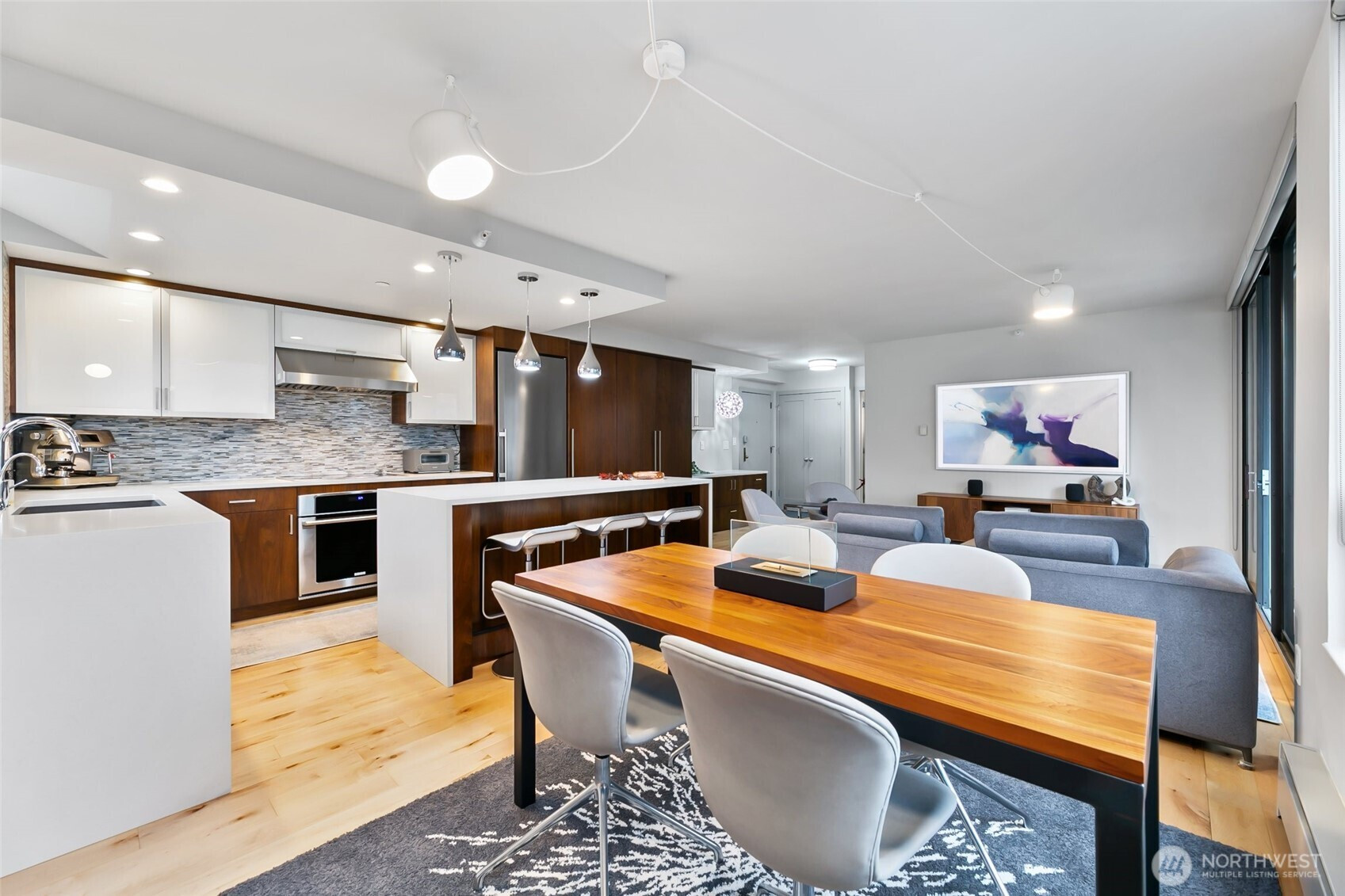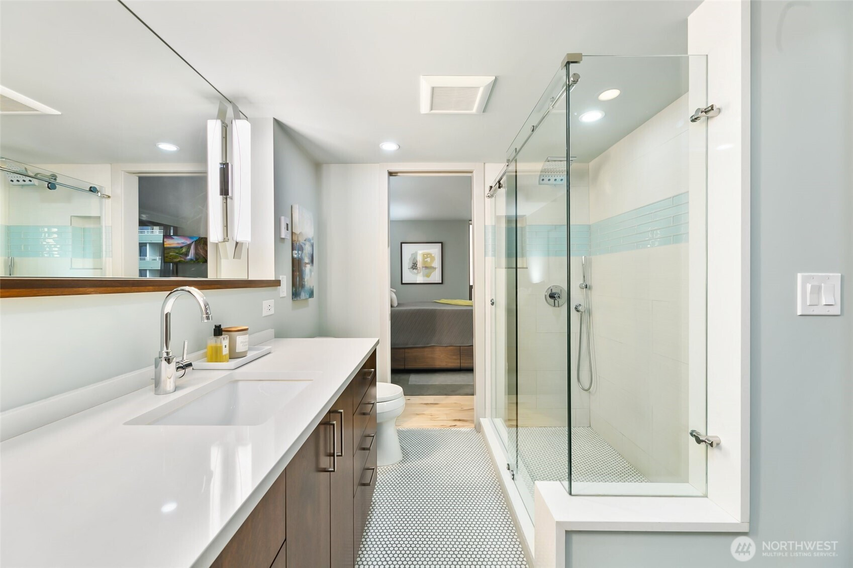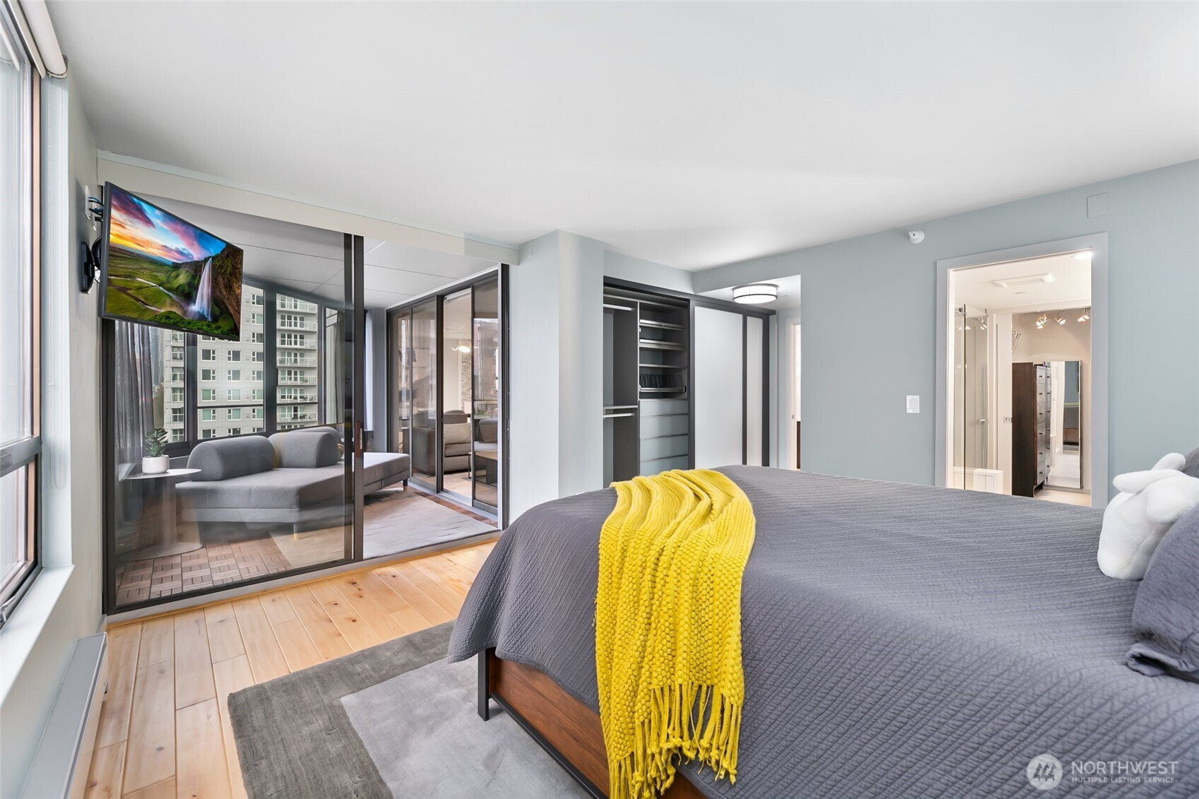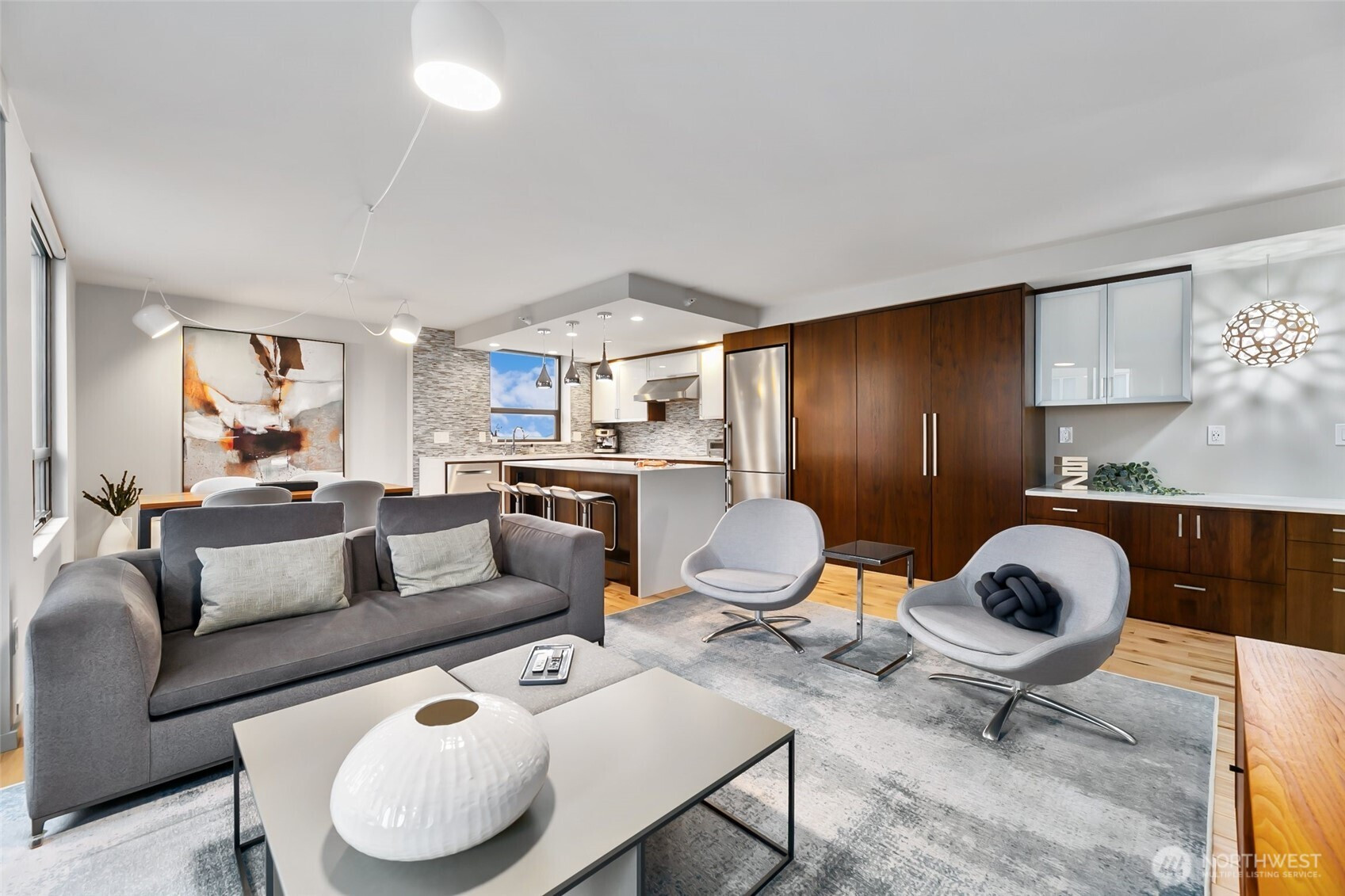 Step into this magazine-worthy urban oasis where thoughtful design and high-end finishes come together in perfect harmony. This beautifully reimagined one-bedroom condo has undergone a complete studs-out renovation, with over $150K invested to deliver a refined blend of modern elegance, comfort, and everyday functionality. The open-concept living space is filled with natural light and showcases iconic Space Needle views, creating an inspiring backdrop for daily living and entertaining. An enclosed patio extends the living area and offers a flexible retreat, while a dedicated area for a home office supports today’s lifestyle needs. Custom California Closets throughout the residence provide exceptional organization and storage. The spa-like bathroom features a heated floor accented by Ann Sacks penny tile, adding a luxurious touch to your routine. Residents enjoy a host of amenities including secure entry, garage parking, an outdoor pool, sauna, hot tub, fitness center, and a stunning rooftop deck with sweeping city and water views. Ideally located near acclaimed dining, shopping, and entertainment, this home delivers both style and convenience in one exceptional offering. A true must-see.