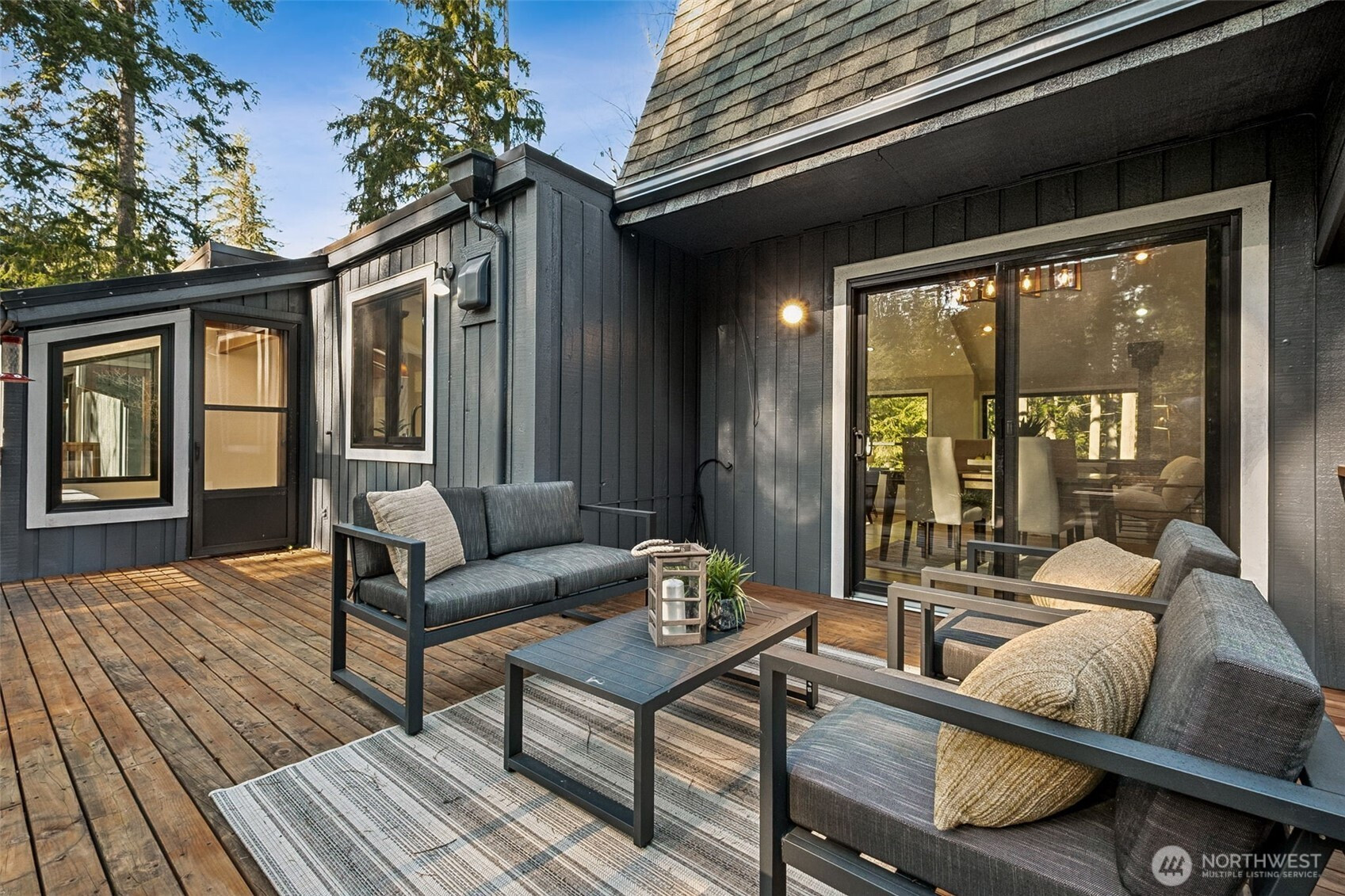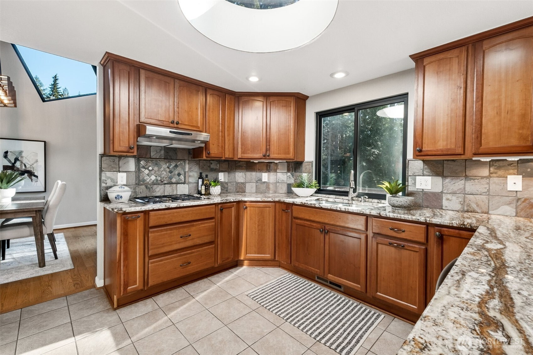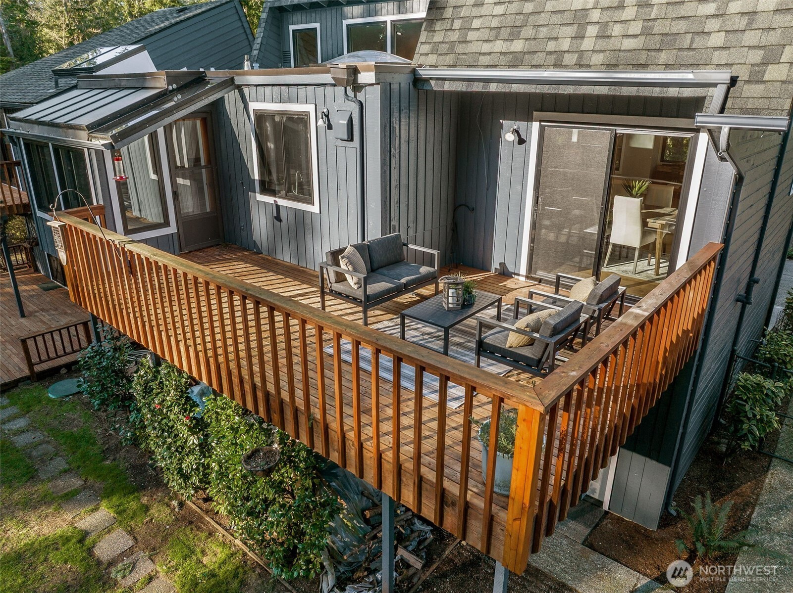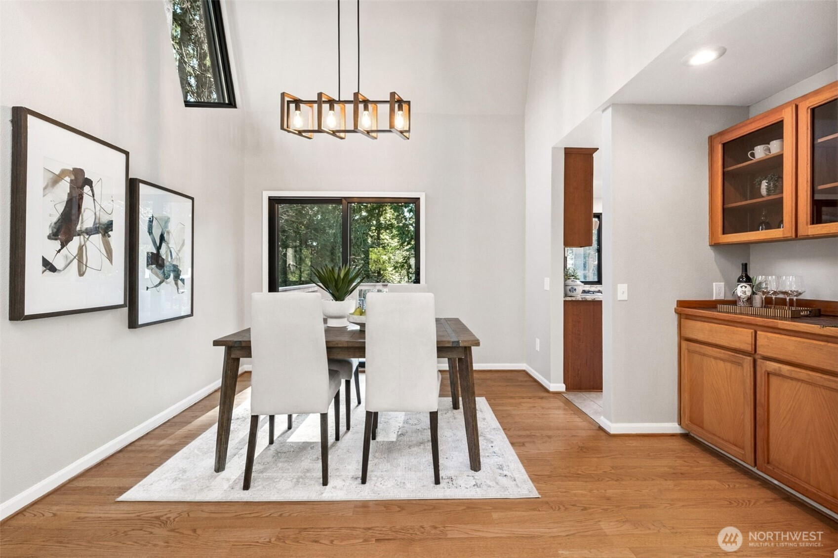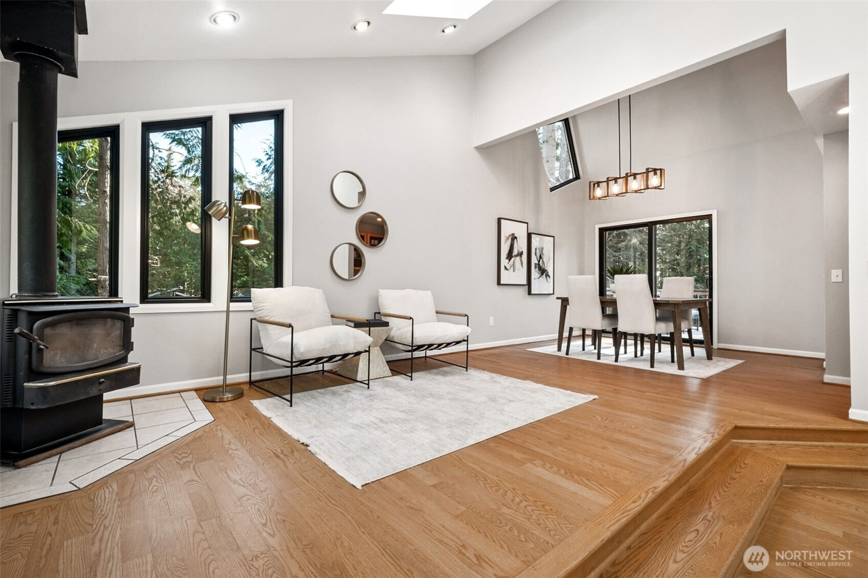 Tucked down a private cul-de-sac in the desired south Issaquah neighborhood of Mirrormont, this sun-drenched contemporary retreat offers the rare combination of elevation, privacy & a beautifully flat yard that truly sets it apart. Perched up above for added light & territorial feel, yet surrounded by usable, level grounds, this is a lifestyle opportunity buyers wait for. Step inside & immediately experience the drama of a soaring double-height entry & vaulted ceilings that carry through most of the main level. Large windows + clerestory as well, flood the home w/natural light. Interior feels both open & connected to the surrounding greenery. The remodeled kitchen is a true centerpiece, featuring rich cherry cabinetry & an entire wall of pantry-style storage to meet every organizational need, along w/peninsula island offering casual breakfast seating. Additional space for breakfast table, reading nook, or relaxed lounge area, perfect for morning coffee or evening wine. Main-level primary suite is a peaceful retreat w/vaulted ceiling & expansive windows + remodeled bath w/spacious walk-in shower. 2 additional bdrms—or home office option. The LL expands the home’s functionality w/generous family room perfect for media, play, or gathering + huge walk out deck! 2 additional bdrms or flex rooms + 3/4 bath enhances potential for guest or MIL living. Flat lot has room to run, garden, entertain, & play, w/athletic court & storage shed. Mirrormont has optional community amenities!