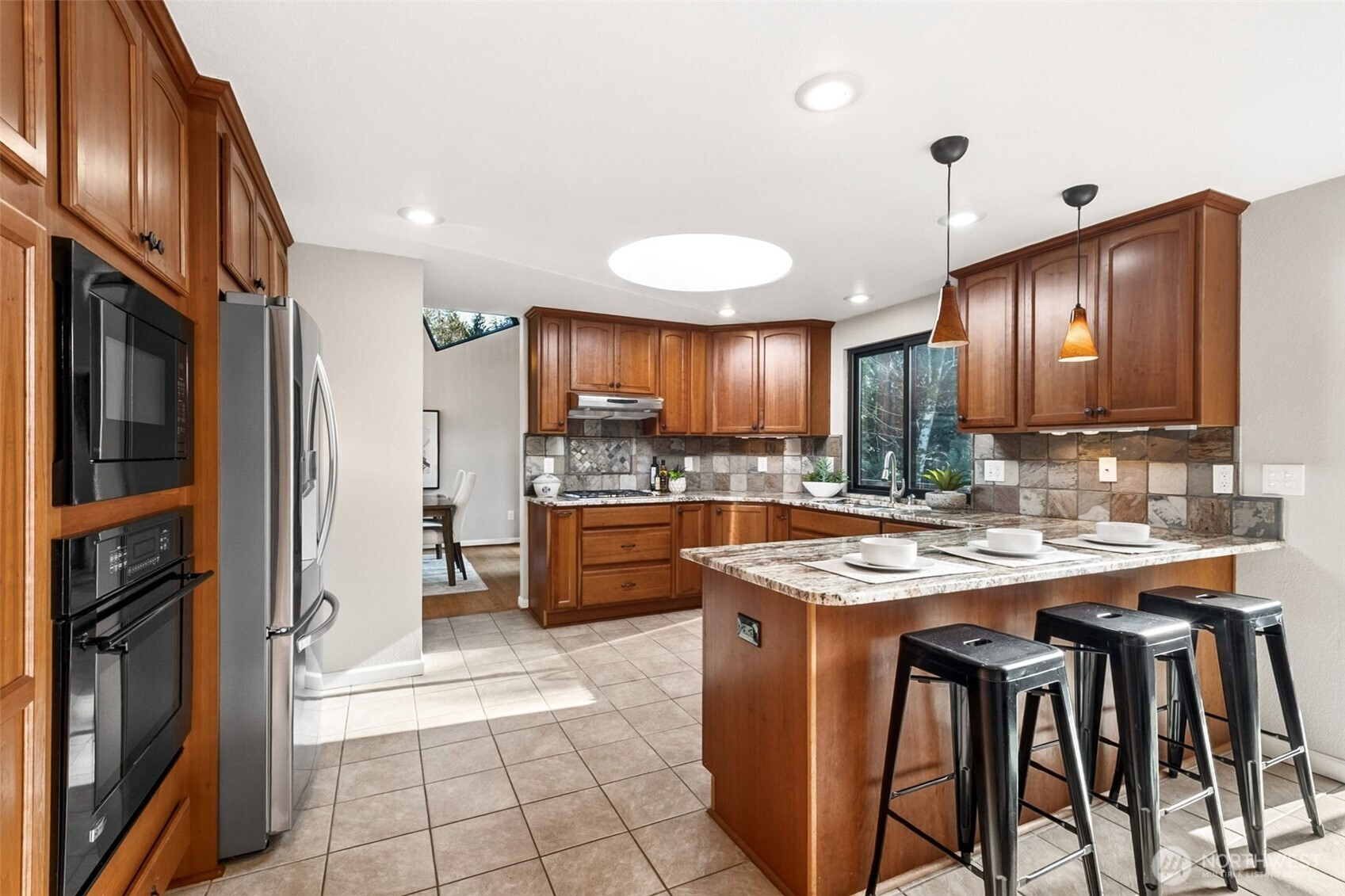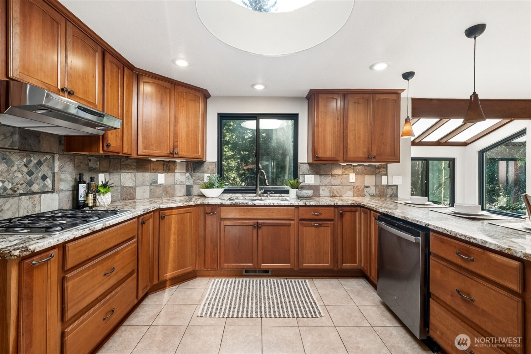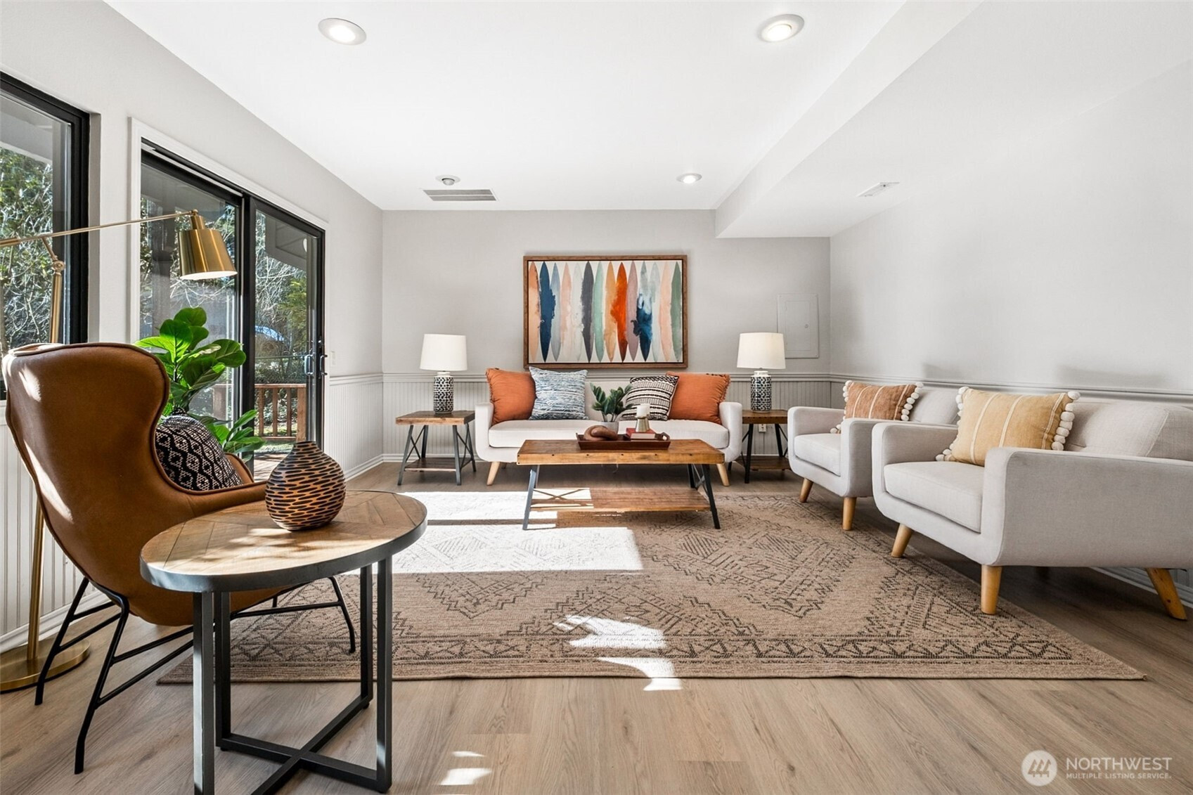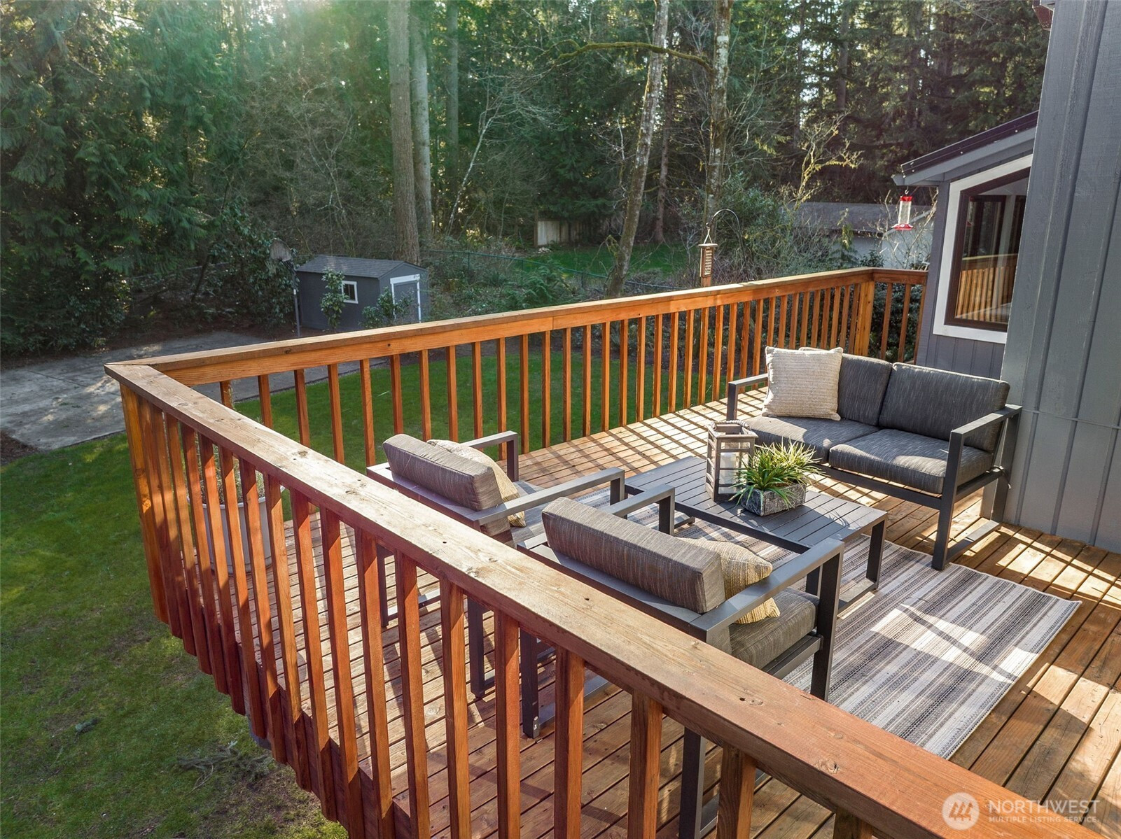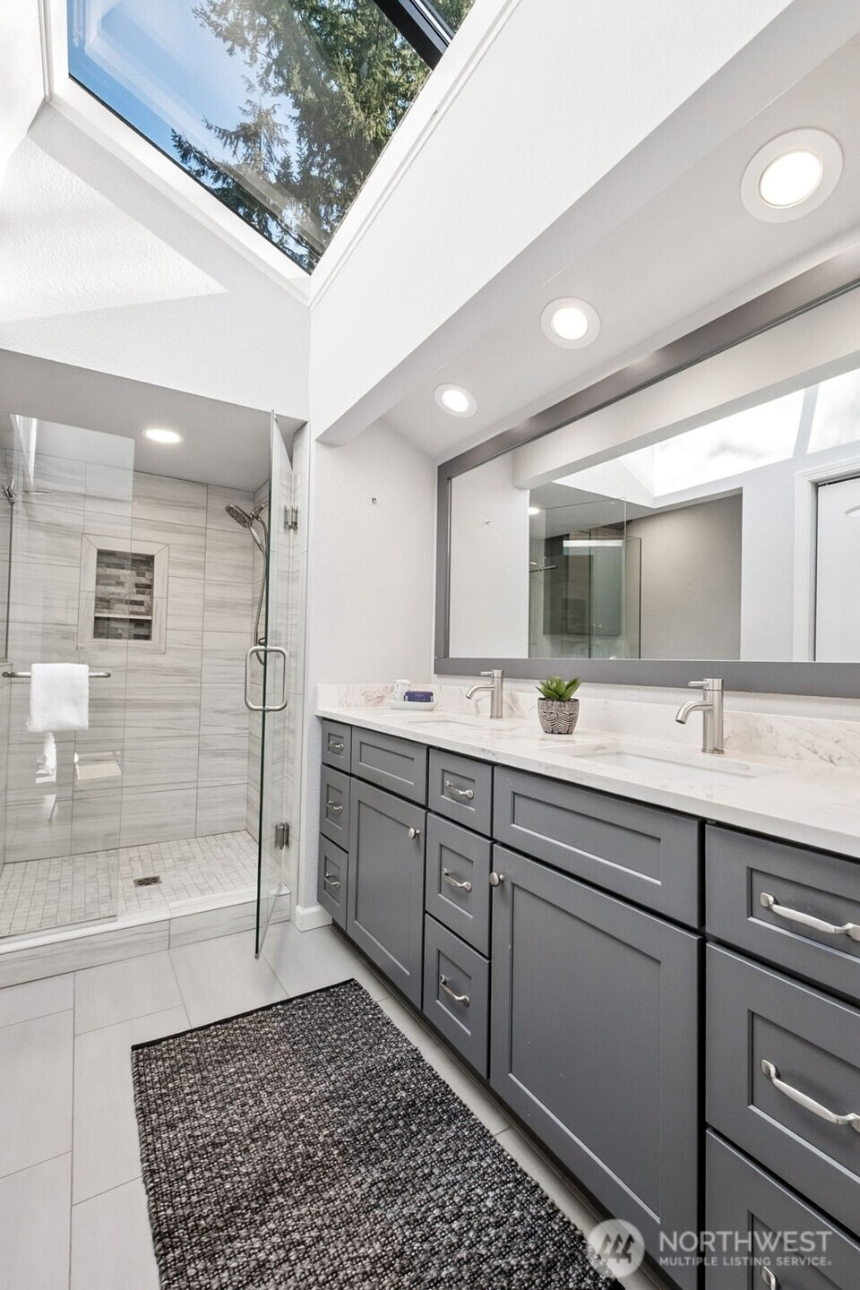 Tucked down a private cul-de-sac in the desired south Issaquah neighborhood of Mirrormont, this sun-drenched contemporary retreat offers the rare combination of elevation, privacy & a beautifully flat yard that truly sets it apart. Perched up above for added light & territorial feel, yet surrounded by usable, level grounds, this is a lifestyle opportunity buyers wait for. Step inside & immediately experience the drama of a soaring double-height entry & vaulted ceilings that carry through most of the main level. Large windows + clerestory as well, flood the home w/natural light. Interior feels both open & connected to the surrounding greenery. The remodeled kitchen is a true centerpiece, featuring rich cherry cabinetry & an entire wall of pantry-style storage to meet every organizational need, along w/peninsula island offering casual breakfast seating. Additional space for breakfast table, reading nook, or relaxed lounge area, perfect for morning coffee or evening wine. Main-level primary suite is a peaceful retreat w/vaulted ceiling & expansive windows + remodeled bath w/spacious walk-in shower. 2 additional bdrms—or home office option. The LL expands the home’s functionality w/generous family room perfect for media, play, or gathering + huge walk out deck! 2 additional bdrms or flex rooms + 3/4 bath enhances potential for guest or MIL living. Flat lot has room to run, garden, entertain, & play, w/athletic court & storage shed. Mirrormont has optional community amenities!