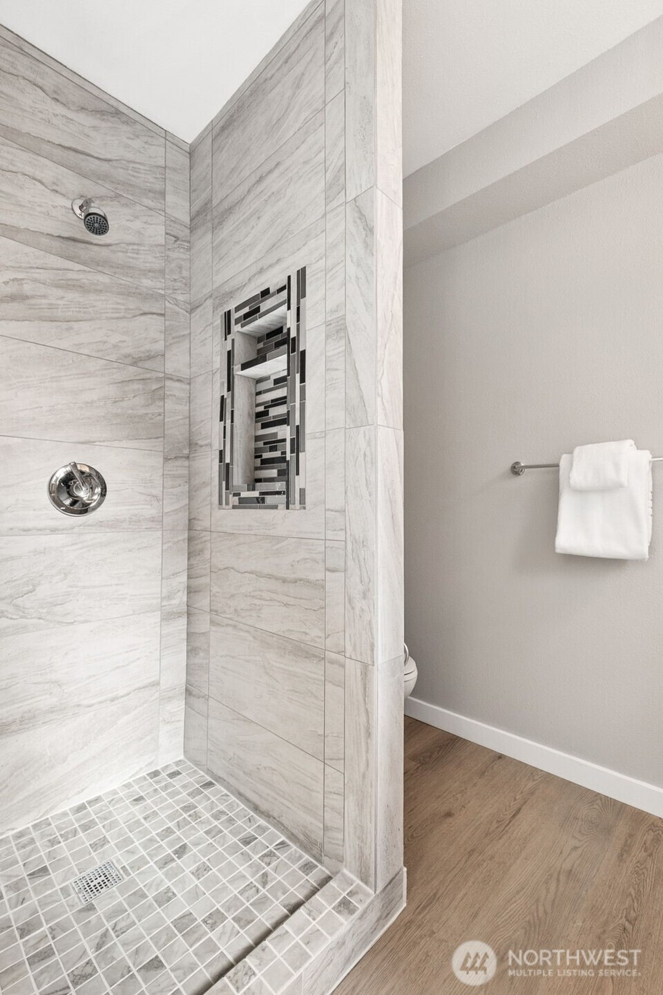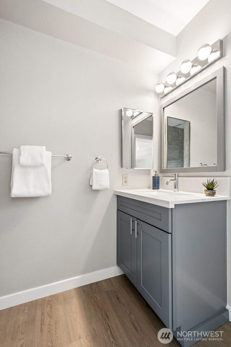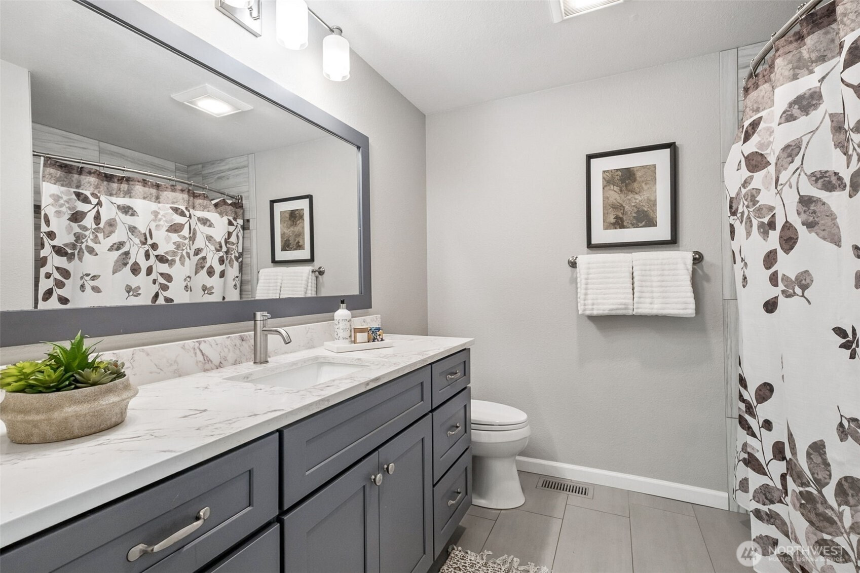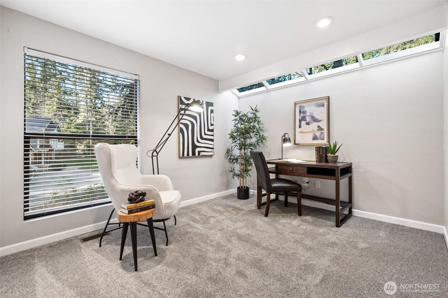 Tucked down a private cul-de-sac in the desired south Issaquah neighborhood of Mirrormont, this sun-drenched contemporary retreat offers the rare combination of elevation, privacy & a beautifully flat yard that truly sets it apart. Perched up above for added light & territorial feel, yet surrounded by usable, level grounds, this is a lifestyle opportunity buyers wait for. Step inside & immediately experience the drama of a soaring double-height entry & vaulted ceilings that carry through most of the main level. Large windows + clerestory as well, flood the home w/natural light. Interior feels both open & connected to the surrounding greenery. The remodeled kitchen is a true centerpiece, featuring rich cherry cabinetry & an entire wall of pantry-style storage to meet every organizational need, along w/peninsula island offering casual breakfast seating. Additional space for breakfast table, reading nook, or relaxed lounge area, perfect for morning coffee or evening wine. Main-level primary suite is a peaceful retreat w/vaulted ceiling & expansive windows + remodeled bath w/spacious walk-in shower. 2 additional bdrms—or home office option. The LL expands the home’s functionality w/generous family room perfect for media, play, or gathering + huge walk out deck! 2 additional bdrms or flex rooms + 3/4 bath enhances potential for guest or MIL living. Flat lot has room to run, garden, entertain, & play, w/athletic court & storage shed. Mirrormont has optional community amenities!