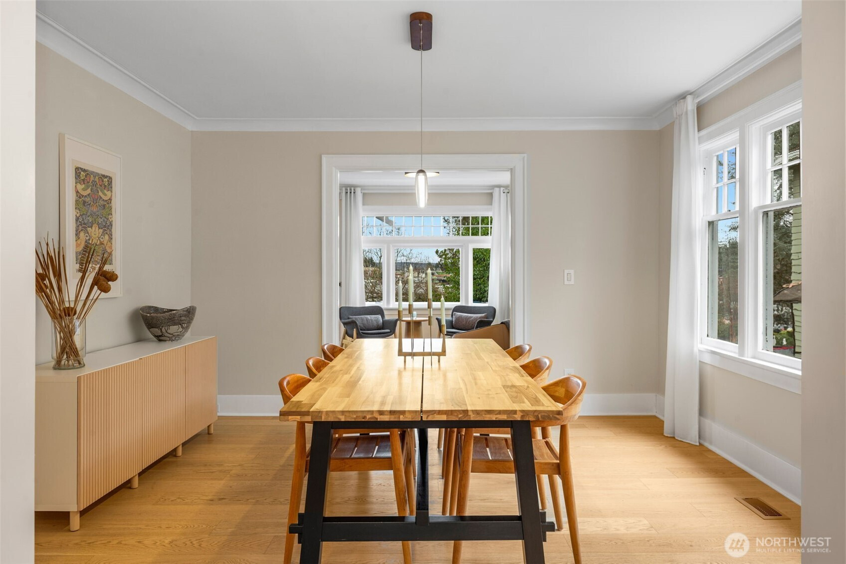 Idyllic 4BD/2BA home in coveted Portage Bay, renovated to the studs in the last four years. Sunlight fills bright, airy interiors with picturesque views of Portage Bay and glowing sunrises. The expansive kitchen features new appliances, abundant cabinetry, laundry, and built-in bench seating. French doors open to a sunny entertaining deck and private backyard. The finished lower level includes 2BD/1BA with its own entrance, kitchen, and laundry—perfect as an income-generating rental or a guest suite. Newly renovated top floor offers flexible bonus space for living, work, fitness, or storage. Cozy wood-burning fireplace and inviting front porch. Detached one-car garage. Directly across from Astrid’s Park, with easy kayak access to Portage Bay. Minutes to top-rated schools, the University of Washington, and neighborhood favorite Joe’z Bayside Market & Cafe. The future Roanoke Lid will add landscaped green space and pedestrian and bike paths over SR-520, creating a nearby park-like environment.