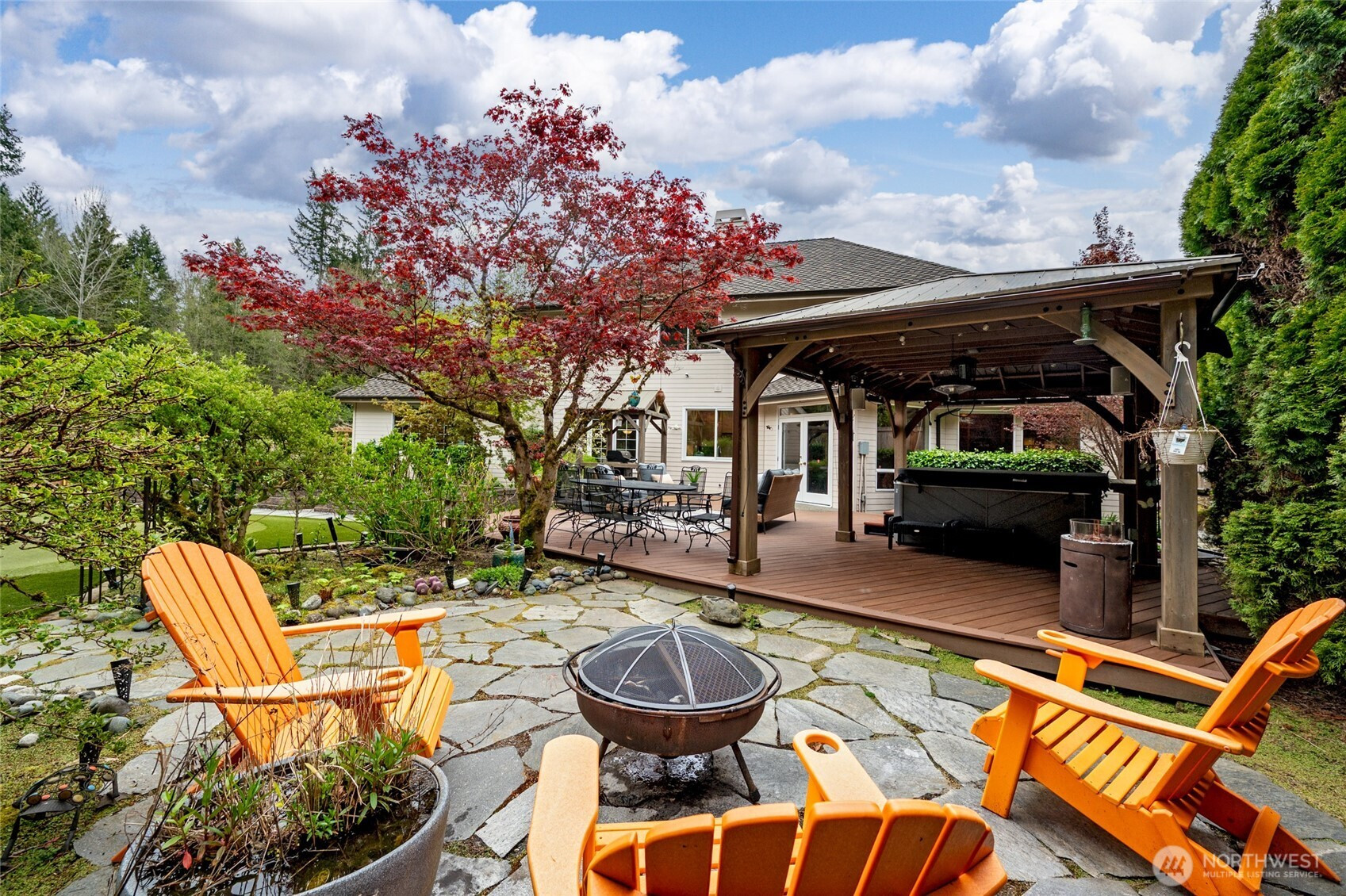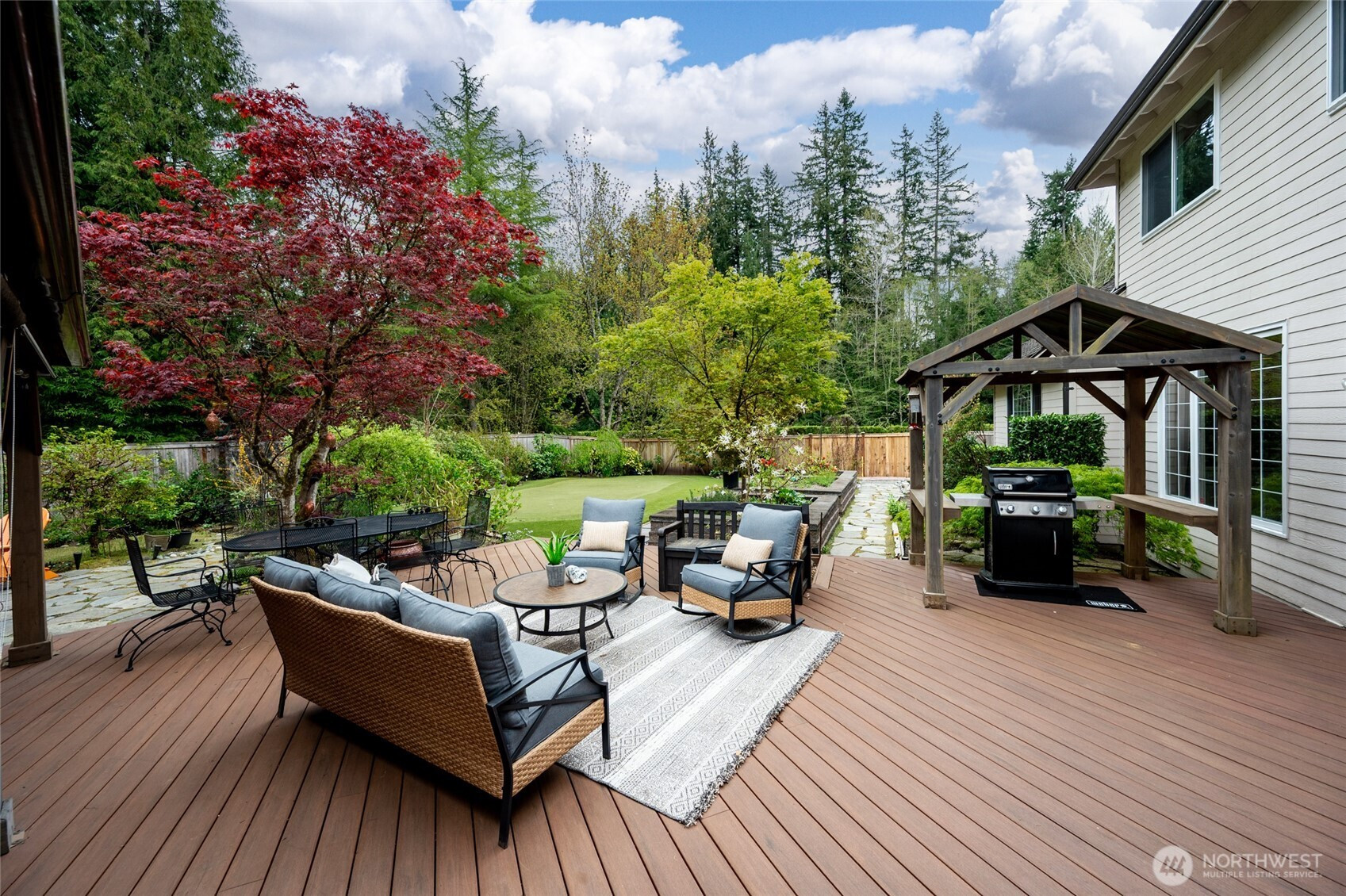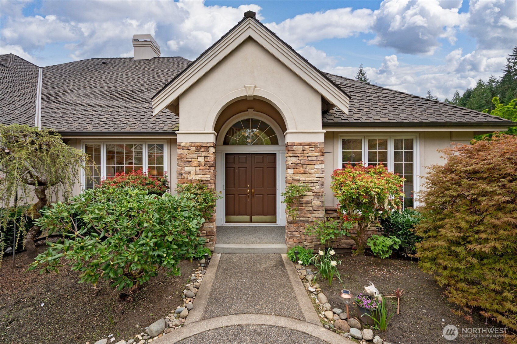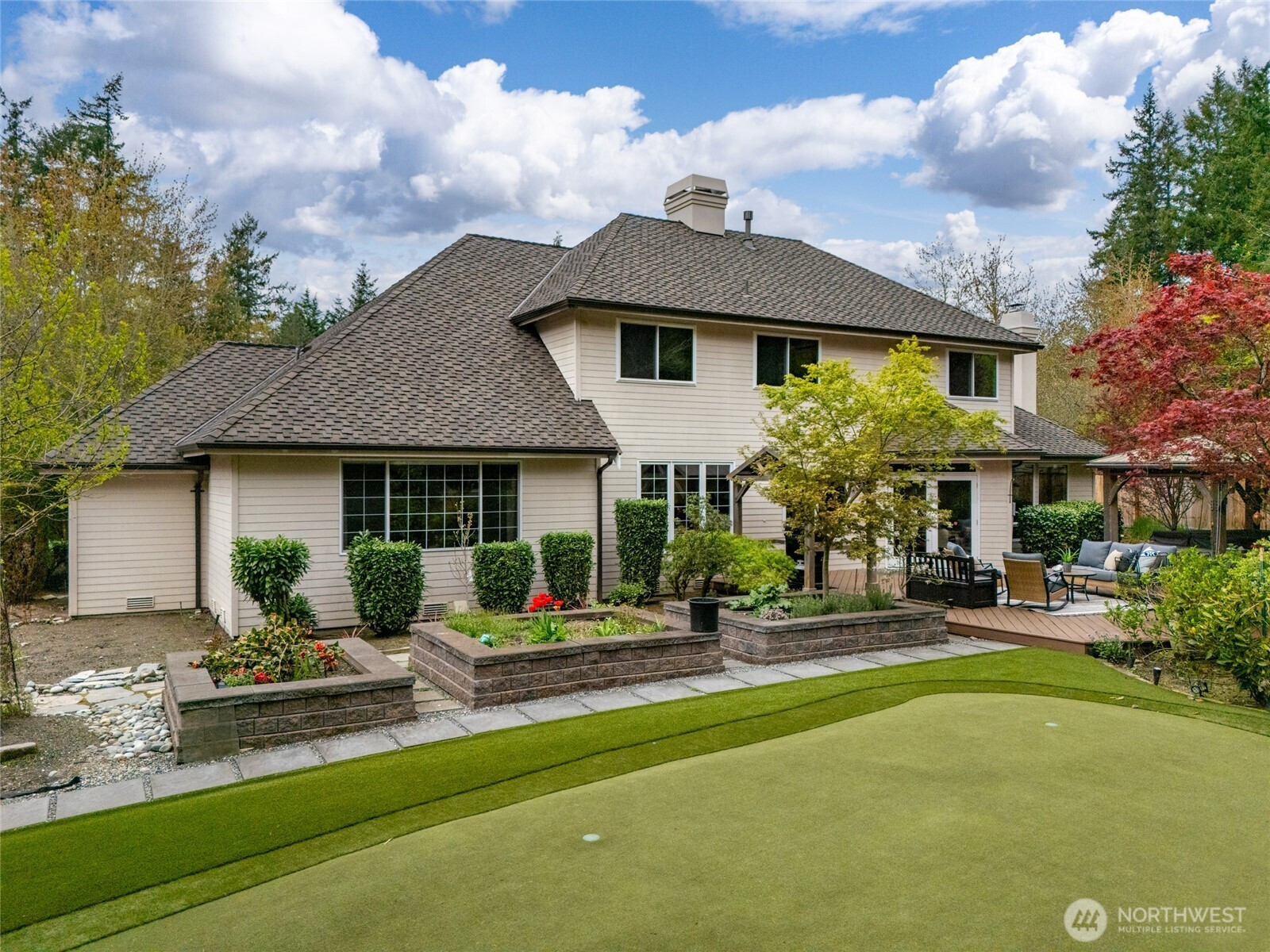 Exceptional offering in Sammamish’s coveted Beaver Lake Estates enclave. Set within the serene community beauty, this exquisitely Buchan-built residence is a rare blend of sophistication, comfort and resort-inspired living. Thoughtfully designed for both elegance and ease, the home showcases a highly sought-after main-floor Primary Suite, an ideal private sanctuary featuring refined finishes and effortless accessibility. Dramatic 2-story foyer, espresso-stained hardwoods, large kitchen opens perfectly to family room, there's a bonus office on the main and the upstairs hosts 3 bedrooms/full bathroom and another living flex space. Tons of storage spaces, 2 gas fireplaces, sprinkler system, wired for generator, skylights and French Doors to boot. Beyond the interiors, the property unfolds into a truly extraordinary outdoor experience. The expansive and level grounds have been transformed into a private oasis - lush, secluded, and designed for year-round enjoyment. Unwind beneath the stars in the spa-inspired hot tub, host unforgettable gatherings on the patio, or perfect your putting game on the custom-designed green. Newer furnace/heat pump, newer roof and attached 3-car garage on cul-de-sac corner lot too. This is where everyday living feels like a retreat!