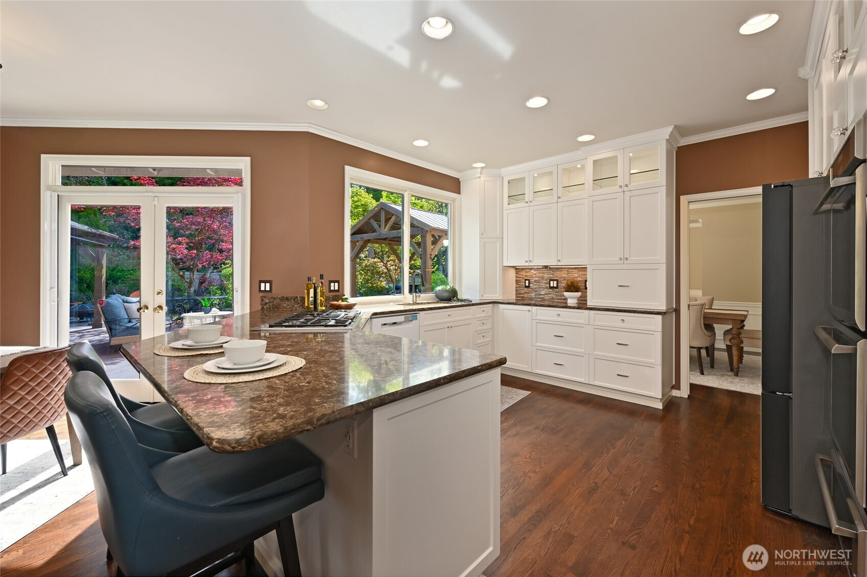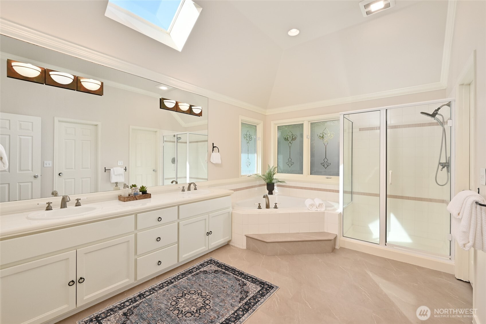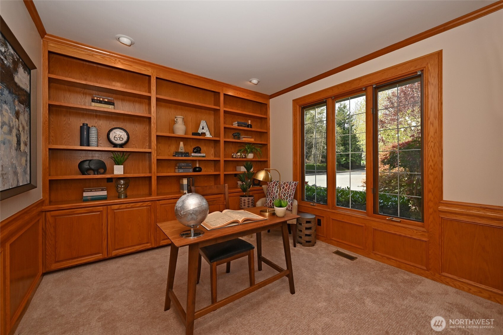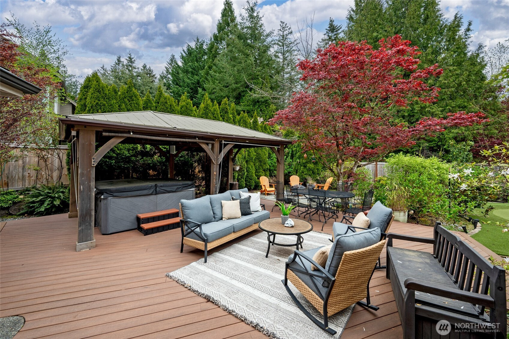 Exceptional offering in Sammamish’s coveted Beaver Lake Estates enclave. Set within the serene community beauty, this exquisitely Buchan-built residence is a rare blend of sophistication, comfort and resort-inspired living. Thoughtfully designed for both elegance and ease, the home showcases a highly sought-after main-floor Primary Suite, an ideal private sanctuary featuring refined finishes and effortless accessibility. Dramatic 2-story foyer, espresso-stained hardwoods, large kitchen opens perfectly to family room, there's a bonus office on the main and the upstairs hosts 3 bedrooms/full bathroom and another living flex space. Tons of storage spaces, 2 gas fireplaces, sprinkler system, wired for generator, skylights and French Doors to boot. Beyond the interiors, the property unfolds into a truly extraordinary outdoor experience. The expansive and level grounds have been transformed into a private oasis - lush, secluded, and designed for year-round enjoyment. Unwind beneath the stars in the spa-inspired hot tub, host unforgettable gatherings on the patio, or perfect your putting game on the custom-designed green. Newer furnace/heat pump, newer roof and attached 3-car garage on cul-de-sac corner lot too. This is where everyday living feels like a retreat!