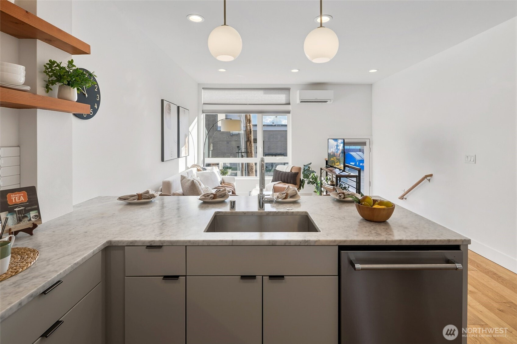 (503) 893-8874Elevated urban townhome showcasing high-end finishes and thoughtful design throughout. The open-concept main level features oversized windows, wide-plank flooring, and a chef’s kitchen appointed with marble slab countertops, stainless appliances, floating wood shelving, and a generous island built for gathering. Upstairs, bright bedrooms offer expansive windows and efficient mini-split heating and air-conditioning for year-round comfort. The private rooftop deck captures sweeping Downtown Seattle and Mt. Rainier views—perfect for entertaining or unwinding above the city. Stylish, low-maintenance living just steps to Ballard’s cafés, restaurants, boutiques, parks, and transit with easy access to Downtown and South Lake Union.