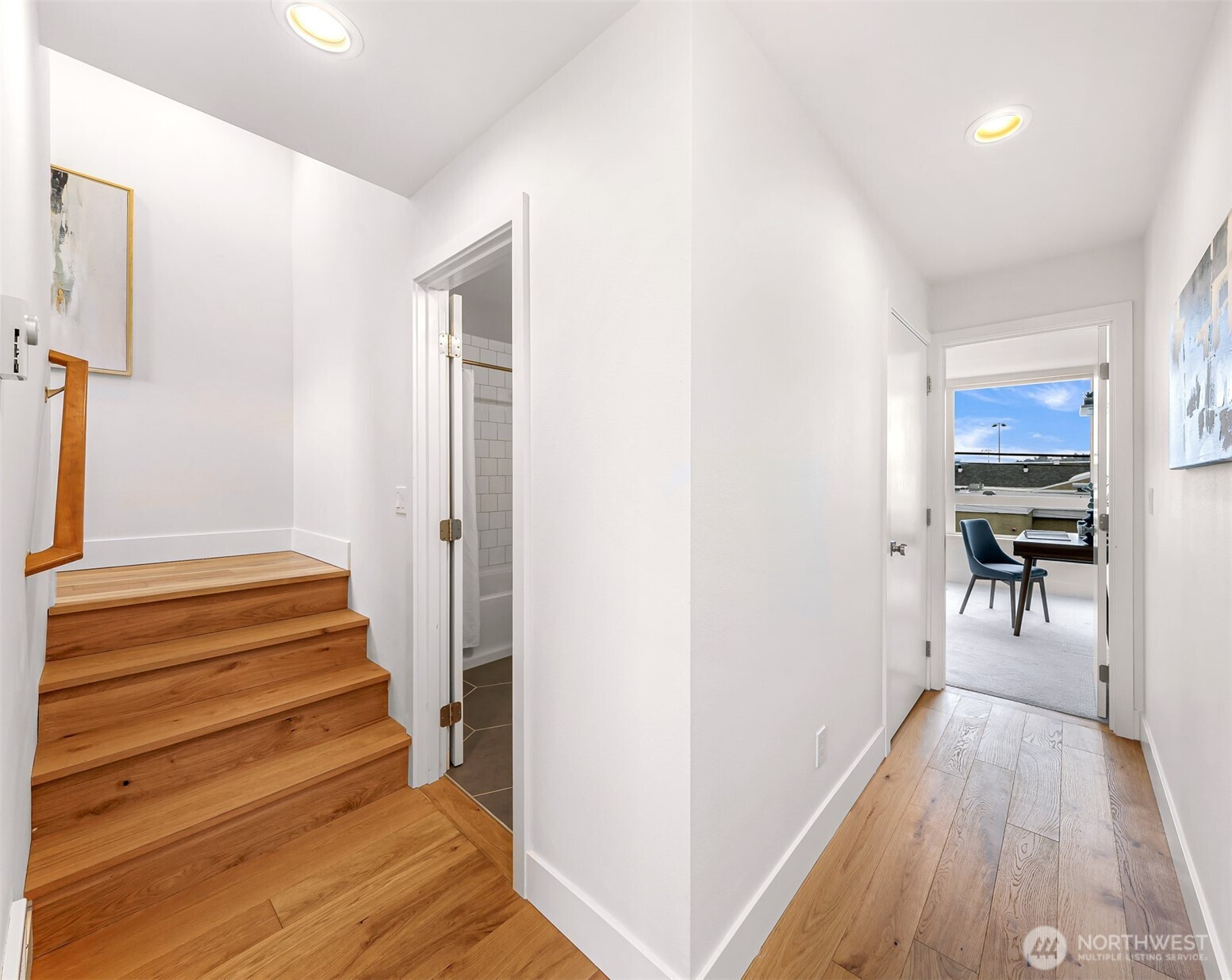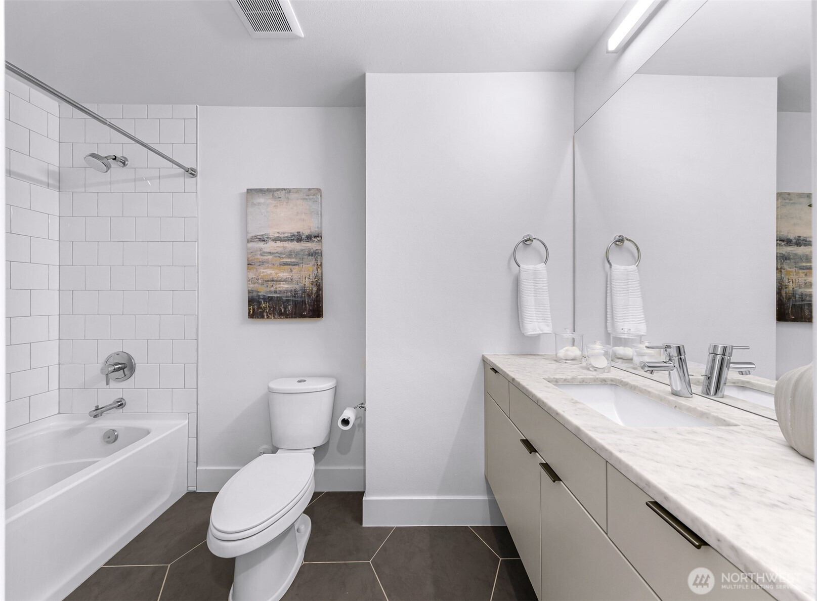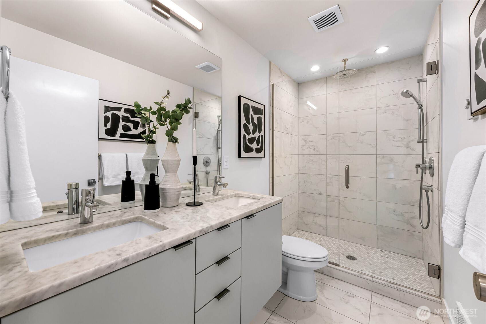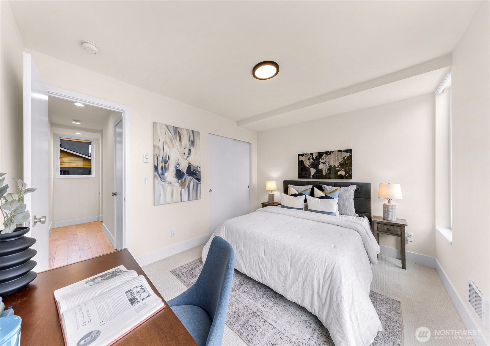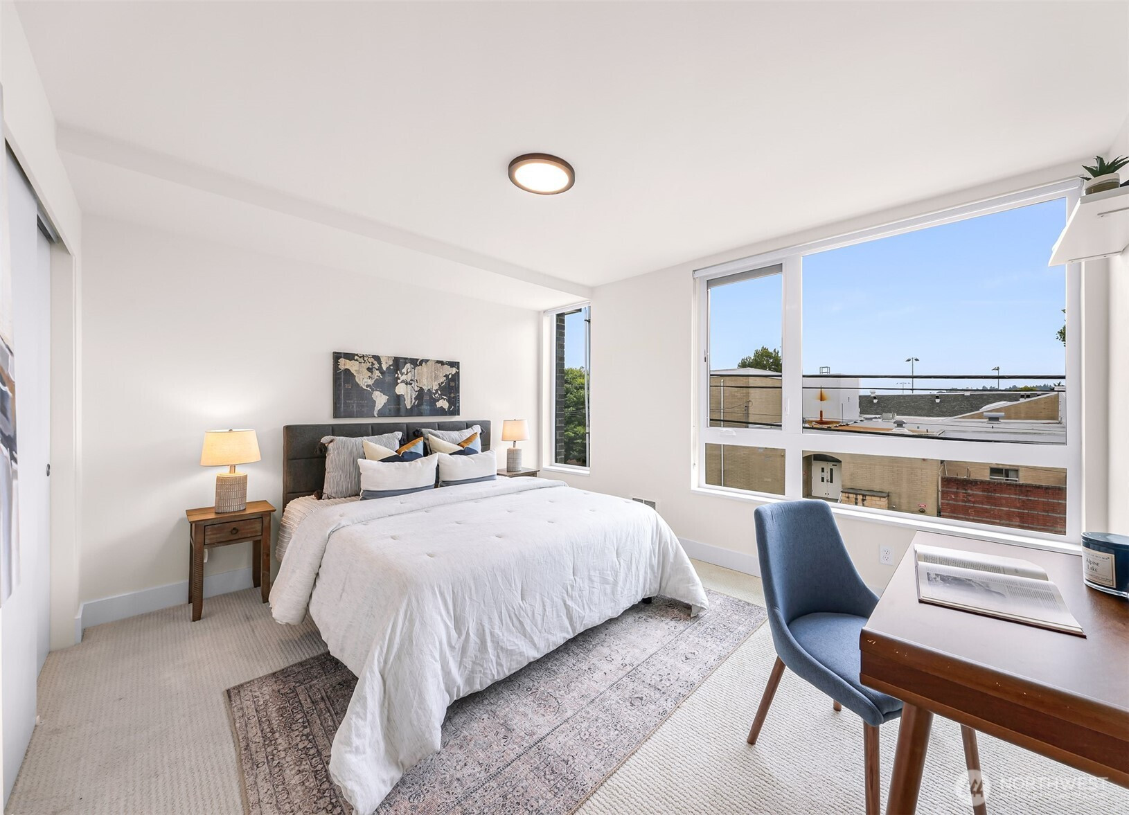 Modern stylings, masterfully built, & a sophisticated touch are what you’ll find here! Step inside to an elevated & optimized floor plan w/engineered hardwoods & perfect lighting. The kitchen offers marble counters, SS appliances, tile backsplash, & plenty of space to inspire the chef in anyone. Upstairs you’ll find a well sized bedroom, full bath, & laundry all well-spaced out. Up one floor is the beautiful primary bedroom w/en-suite bath, ample closet space, & a balcony. Head up to the private rooftop deck made for entertaining with gorgeous territorial & peek-a-boo mountain views. Many transit options & a high walk/bike score + 1 designated parking = the perfect mix! Near all the best amenities Ballard has to offer – truly a must see!