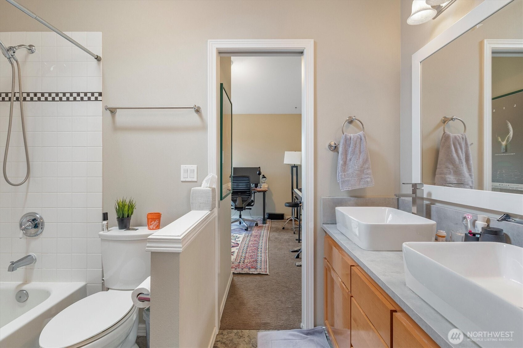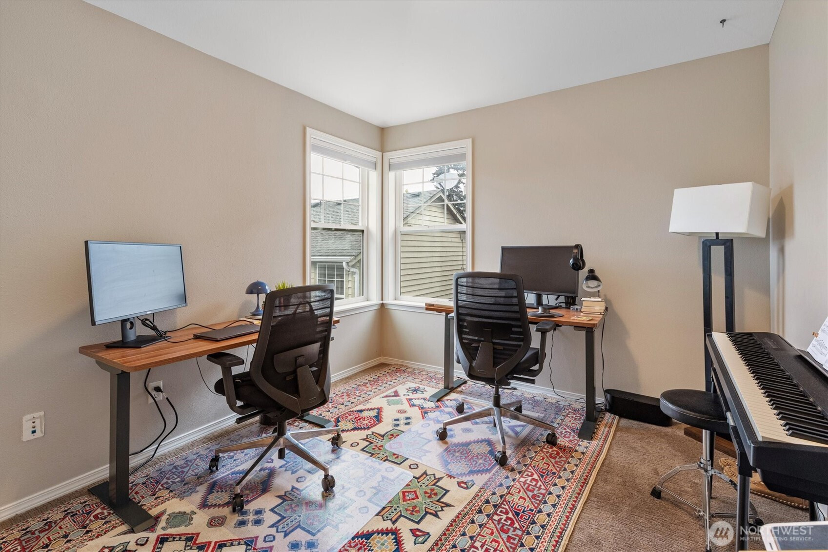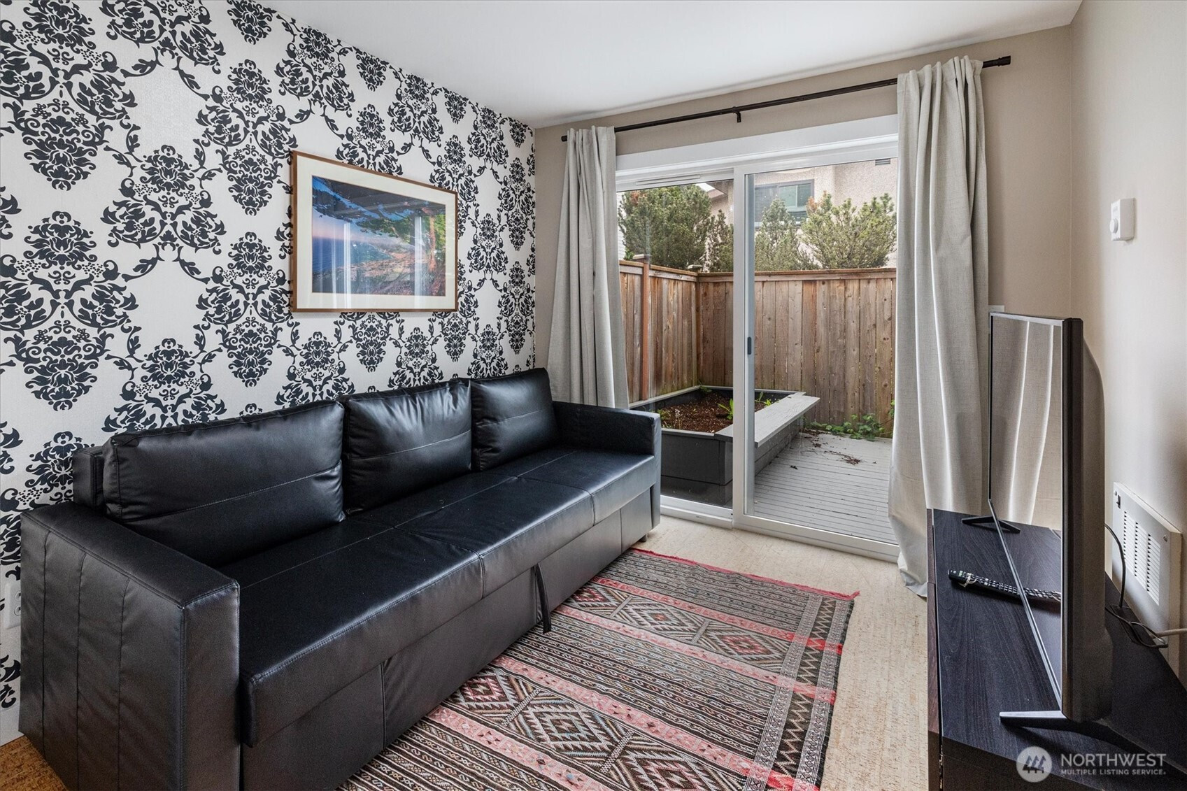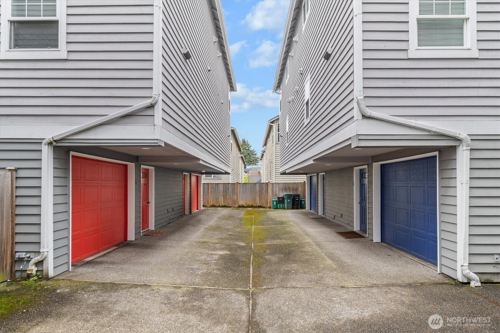 Welcome to this bright, thoughtfully designed 3-bedroom, 2-bath Ballard townhome offering 1,320 square feet of stylish living just blocks from the Ballard Locks, Golden Gardens, and the vibrant shops and restaurants that make this neighborhood one of Seattle's most sought-after. The great room layout features beautiful hardwood floors, a spacious living room with gas fireplace, and seamless access to a private deck — perfect for relaxing or entertaining. The kitchen is a standout with white quartz countertops, stainless steel appliances, a Wolf gas range, and a generous breakfast bar. Upstairs, two large bedrooms with vaulted ceilings share a Jack & Jill bath, with the convenience of an in-unit laundry room. The entry level offers a versatile third bedroom or home office with a slider opening to a fully fenced backyard — an urban oasis ideal for al fresco dining and gardening. A garage provides parking or additional storage. Walk to the Ballard Farmers Market on Sundays, stroll the Locks on a summer evening, or hit the sand at Golden Gardens — this is Ballard living at its best.