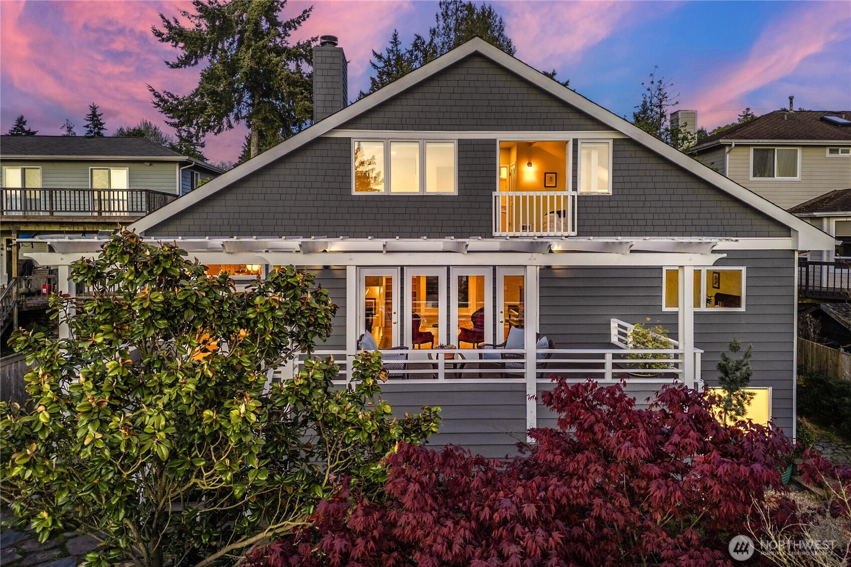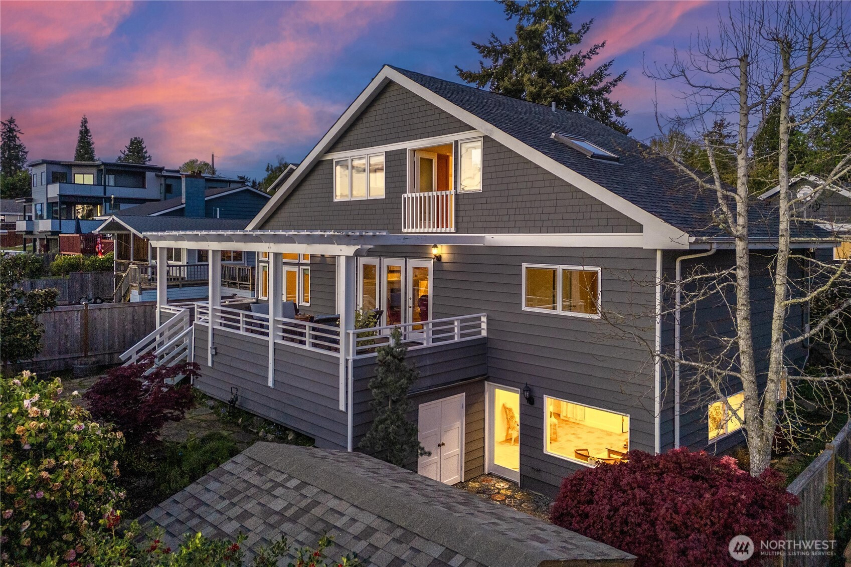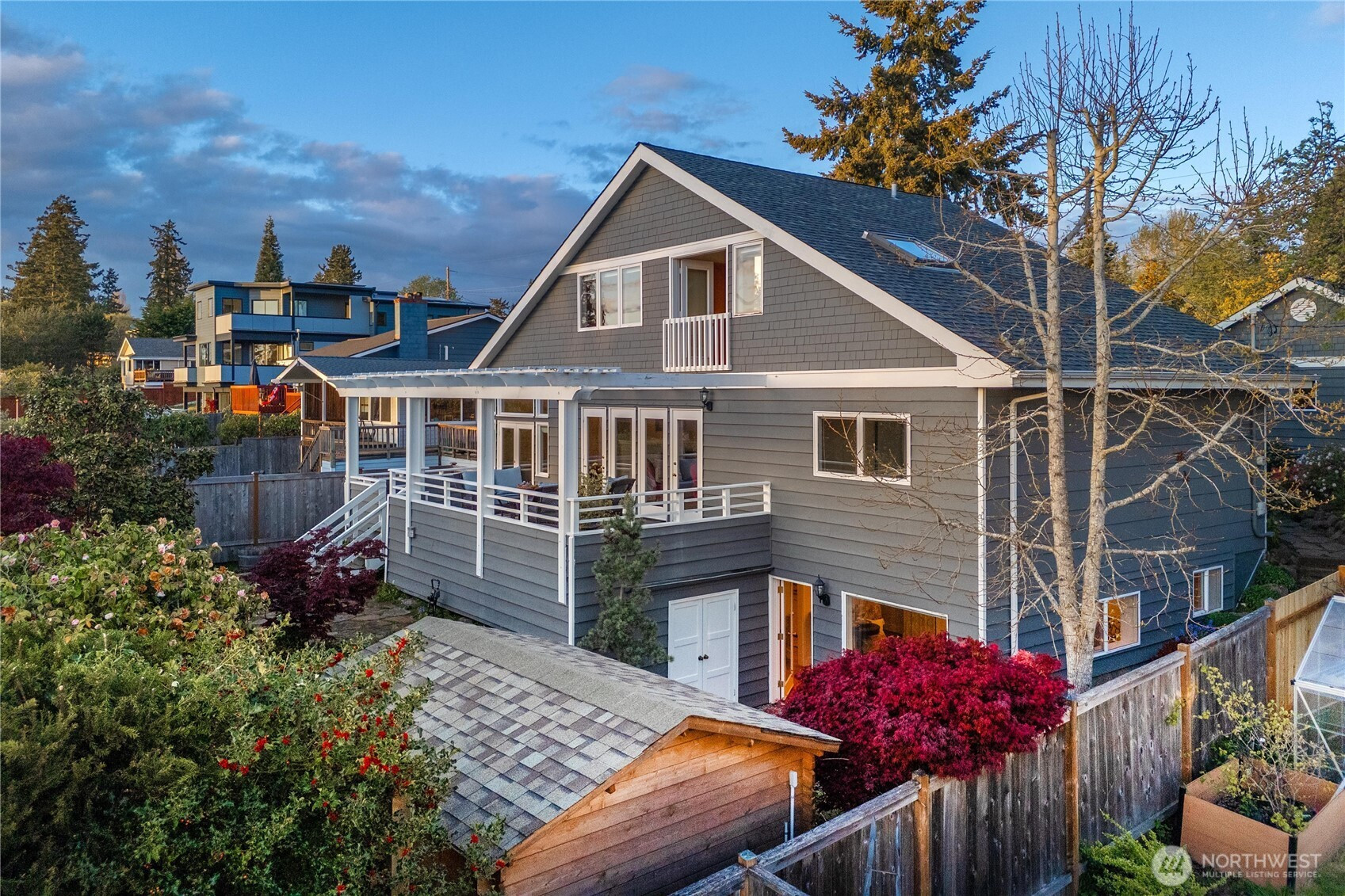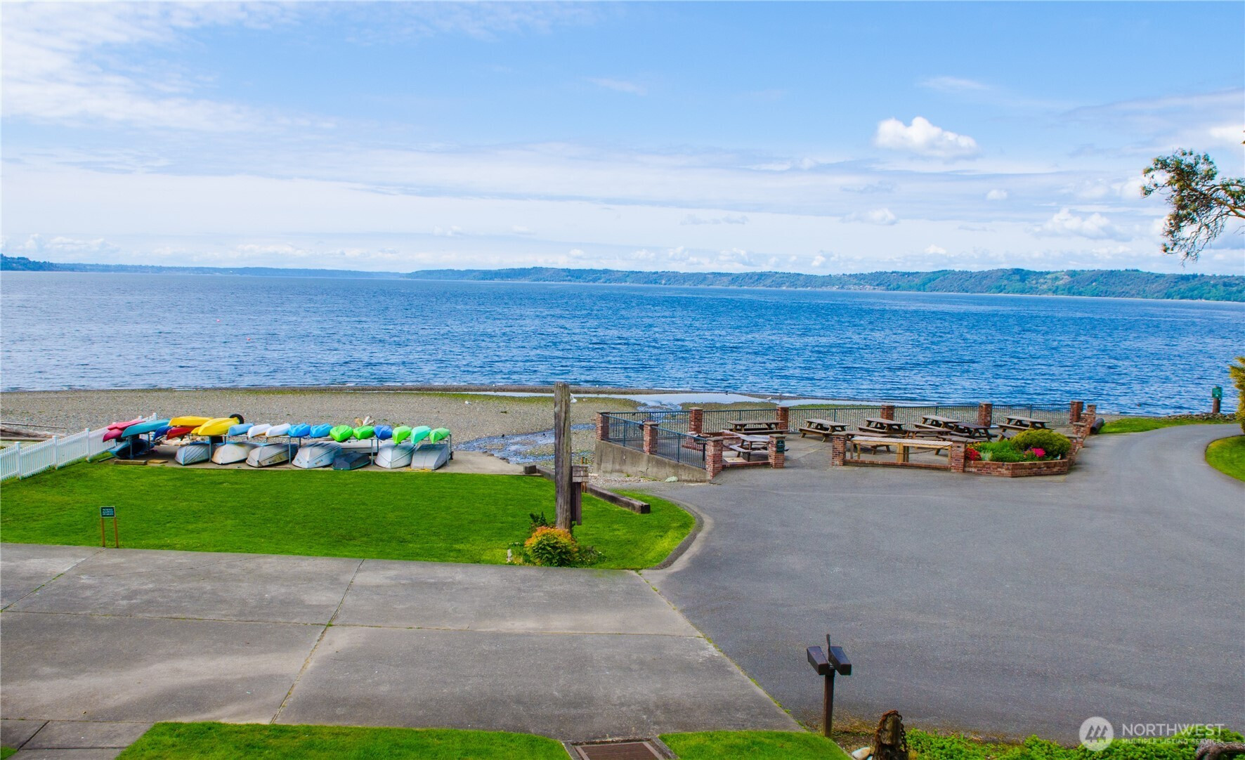 Cape Cod stunner up for grabs! Don't miss this Woodmont Beach Club property. This turn key home features a wonderful light filled layout, brand new hardwood floors, upper floor primary bedroom with attached bath, walk in closet and fireplace. Western exposure Puget Sound views abound throughout the house. The main floor kitchen with adjacent dining and living room and pellet fireplace will make you feel right at home.The daylight basement features a second kitchen, single bedroom, bathroom and second entrance- a perfect stand alone unit if desired. Other site features include an expansive outdoor hardwood deck, gorgeous mature landscaping, detached shop as well as a large detached garage. Enjoy the optional Woodmont Beach Club membership for only $275 per year. Private beach rights, trails, sport court and plaza area are included in this one of a kind community! This home and grounds are immaculately maintained, come see!