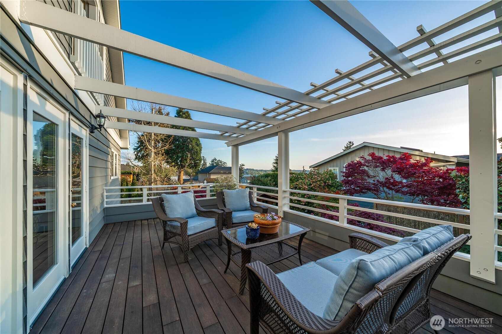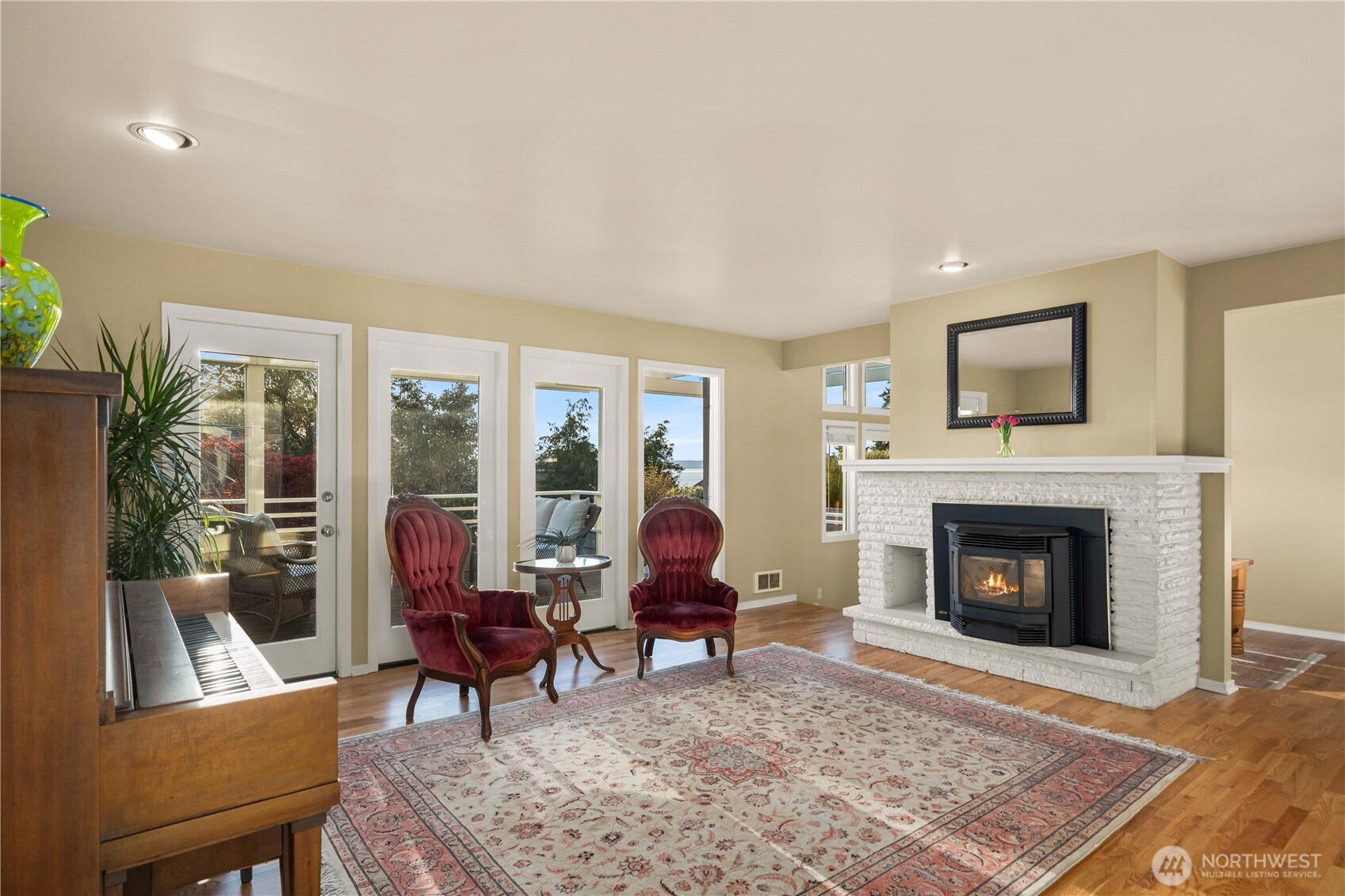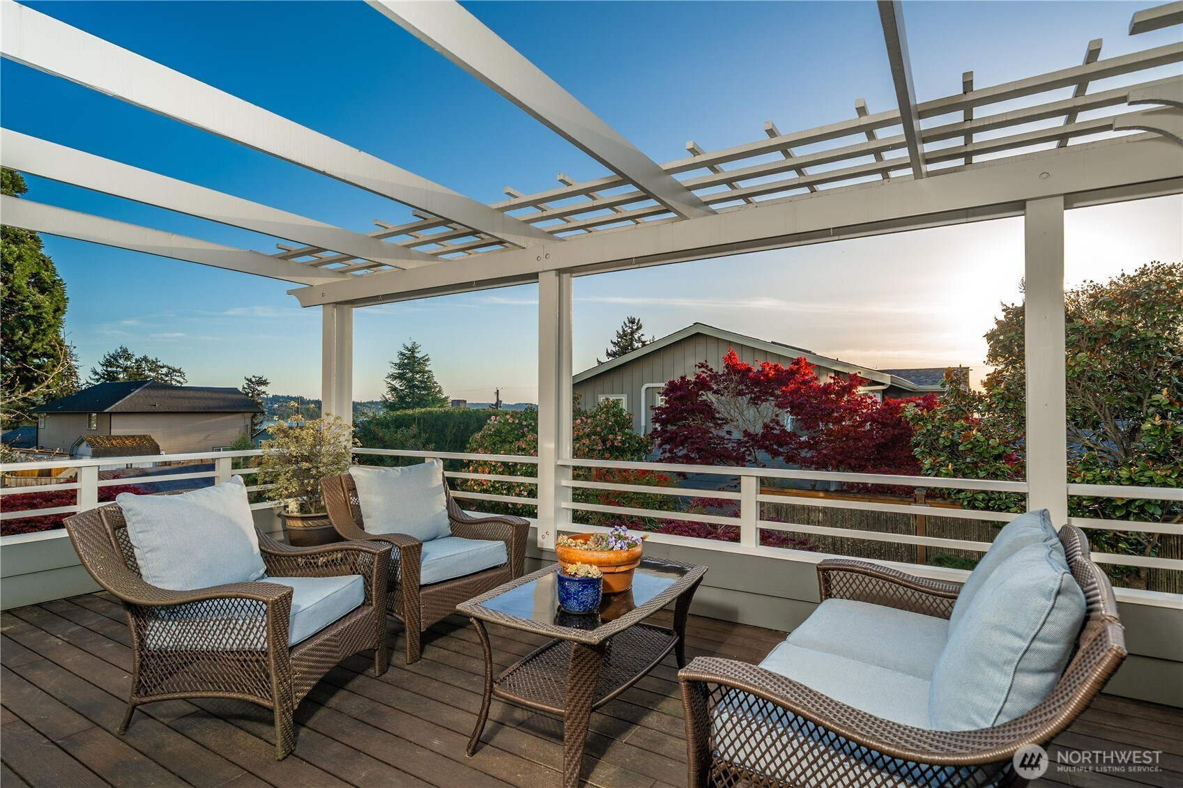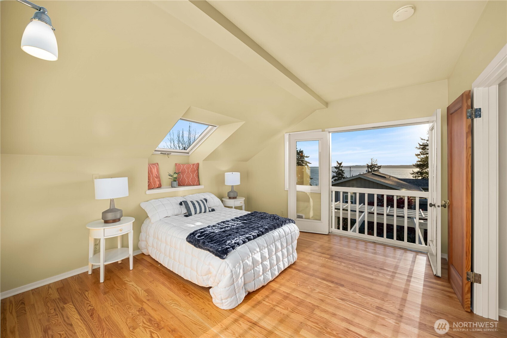 Cape Cod stunner up for grabs! Don't miss this Woodmont Beach Club property. This turn key home features a wonderful light filled layout, brand new hardwood floors, upper floor primary bedroom with attached bath, walk in closet and fireplace. Western exposure Puget Sound views abound throughout the house. The main floor kitchen with adjacent dining and living room and pellet fireplace will make you feel right at home.The daylight basement features a second kitchen, single bedroom, bathroom and second entrance- a perfect stand alone unit if desired. Other site features include an expansive outdoor hardwood deck, gorgeous mature landscaping, detached shop as well as a large detached garage. Enjoy the optional Woodmont Beach Club membership for only $275 per year. Private beach rights, trails, sport court and plaza area are included in this one of a kind community! This home and grounds are immaculately maintained, come see!
