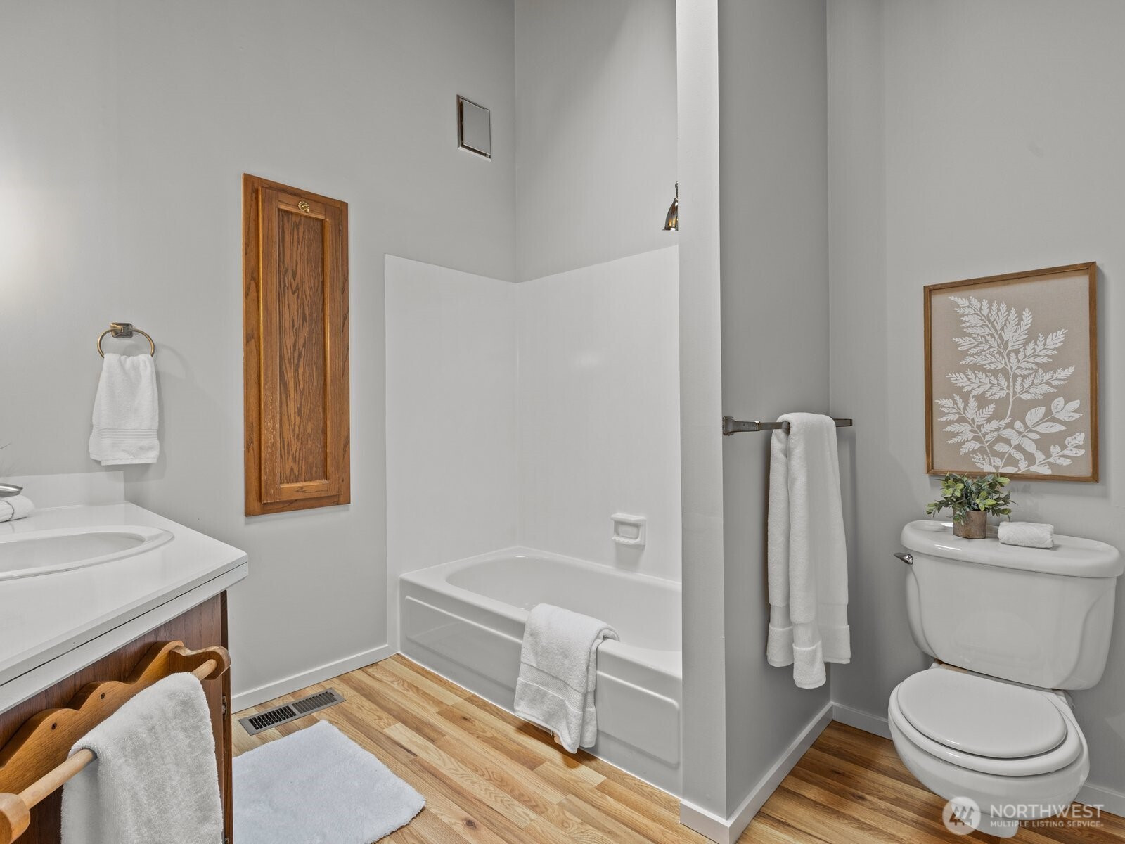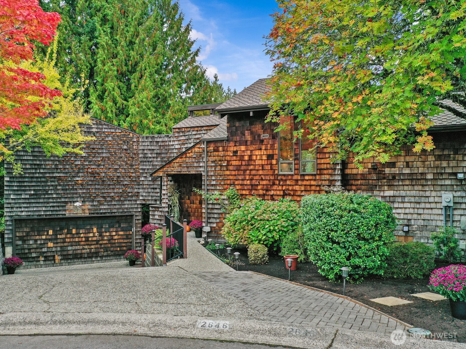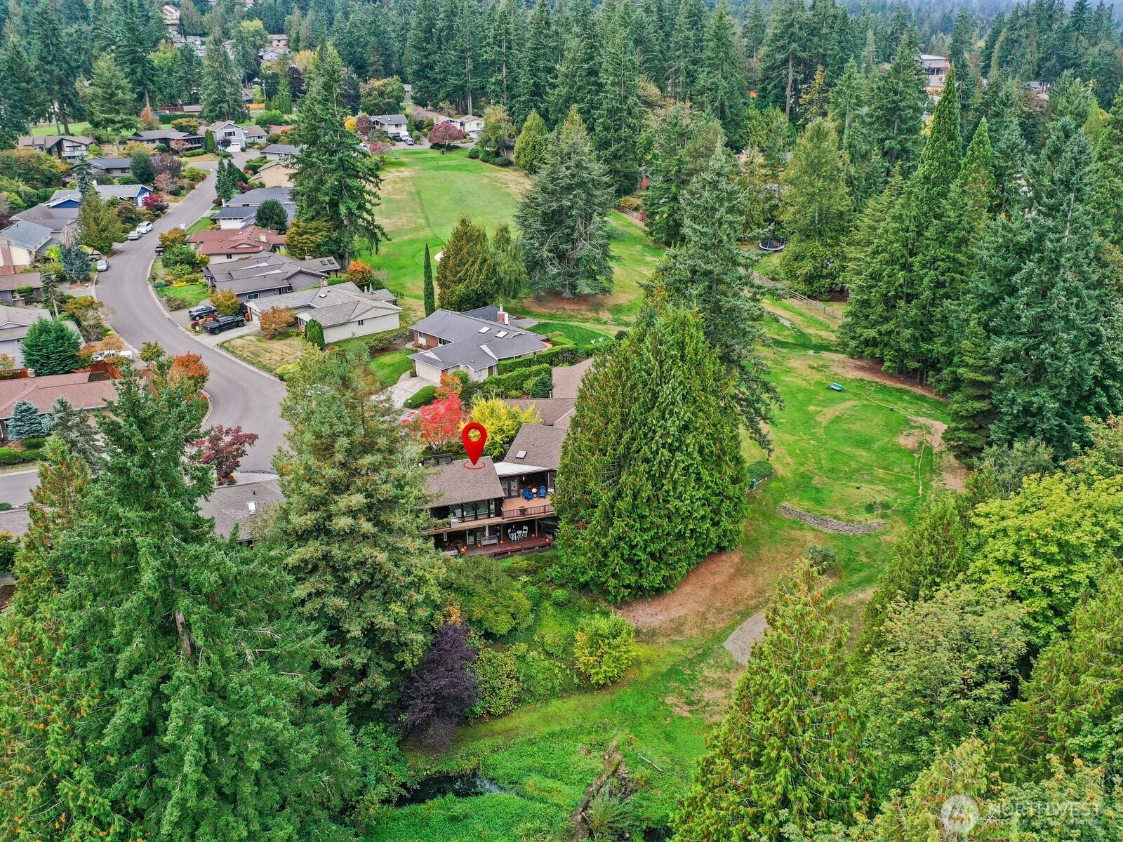 Idyllically located in the prestigious Brae Burn community, this cul-de-sac home showcases views of the 5th hole green. Large windows throughout provide ample light, while the plush carpet gives warmth to the space. Ideal for multigenerational living, both levels feature a spacious kitchen and separate laundry. Upstairs, the kitchen is flanked by 2 living areas and down the hall leads you to the bathroom and bedroom with great walk-in closet. Downstairs, a pass-through bathroom separates the large living room and bedroom. Multiple decks allow you to connect with nature or take in a round of golf. A detached garage with tons of storage space, and easy access to Bellevue, Redmond and 405 round out this great opportunity. Come make it yours!
