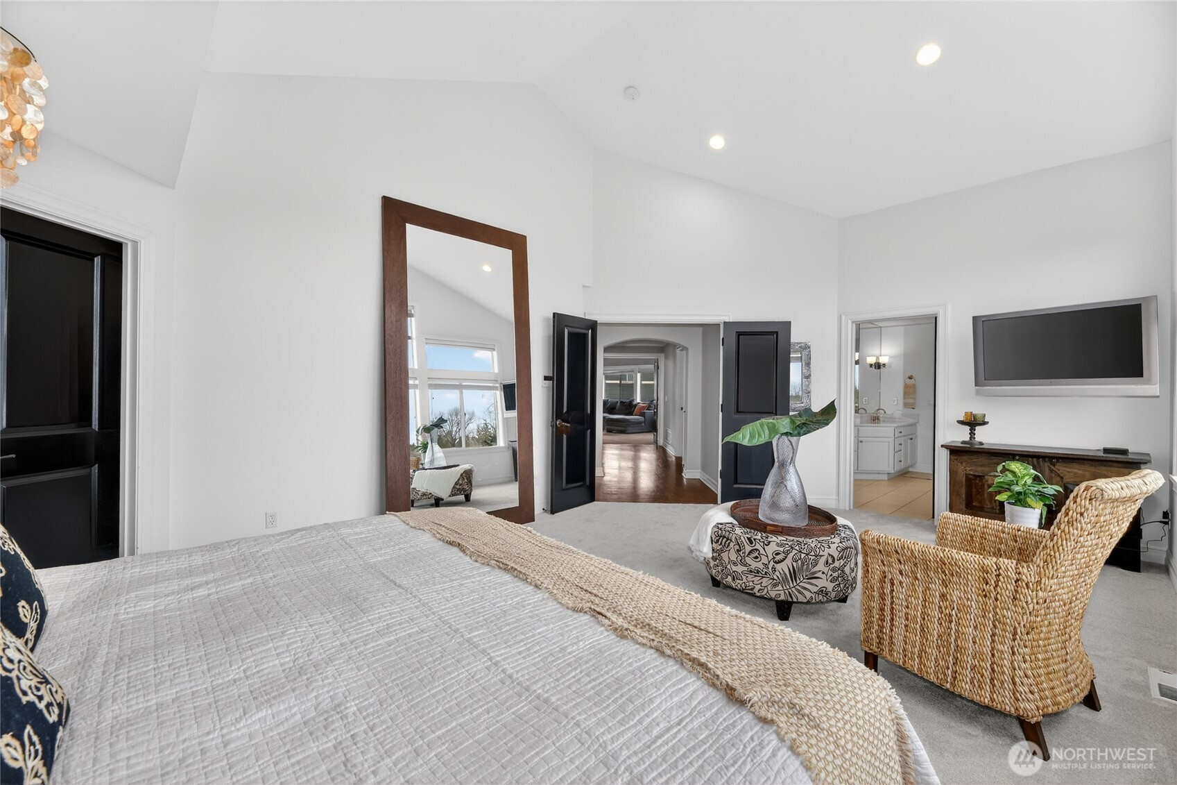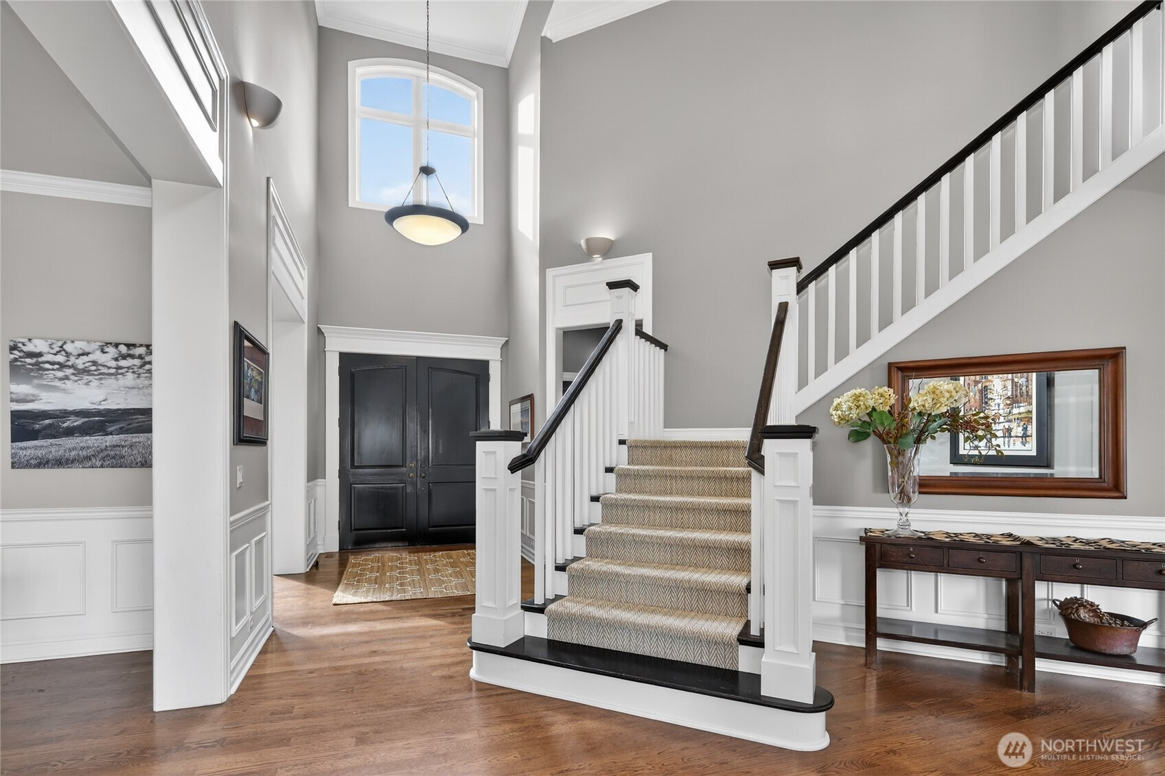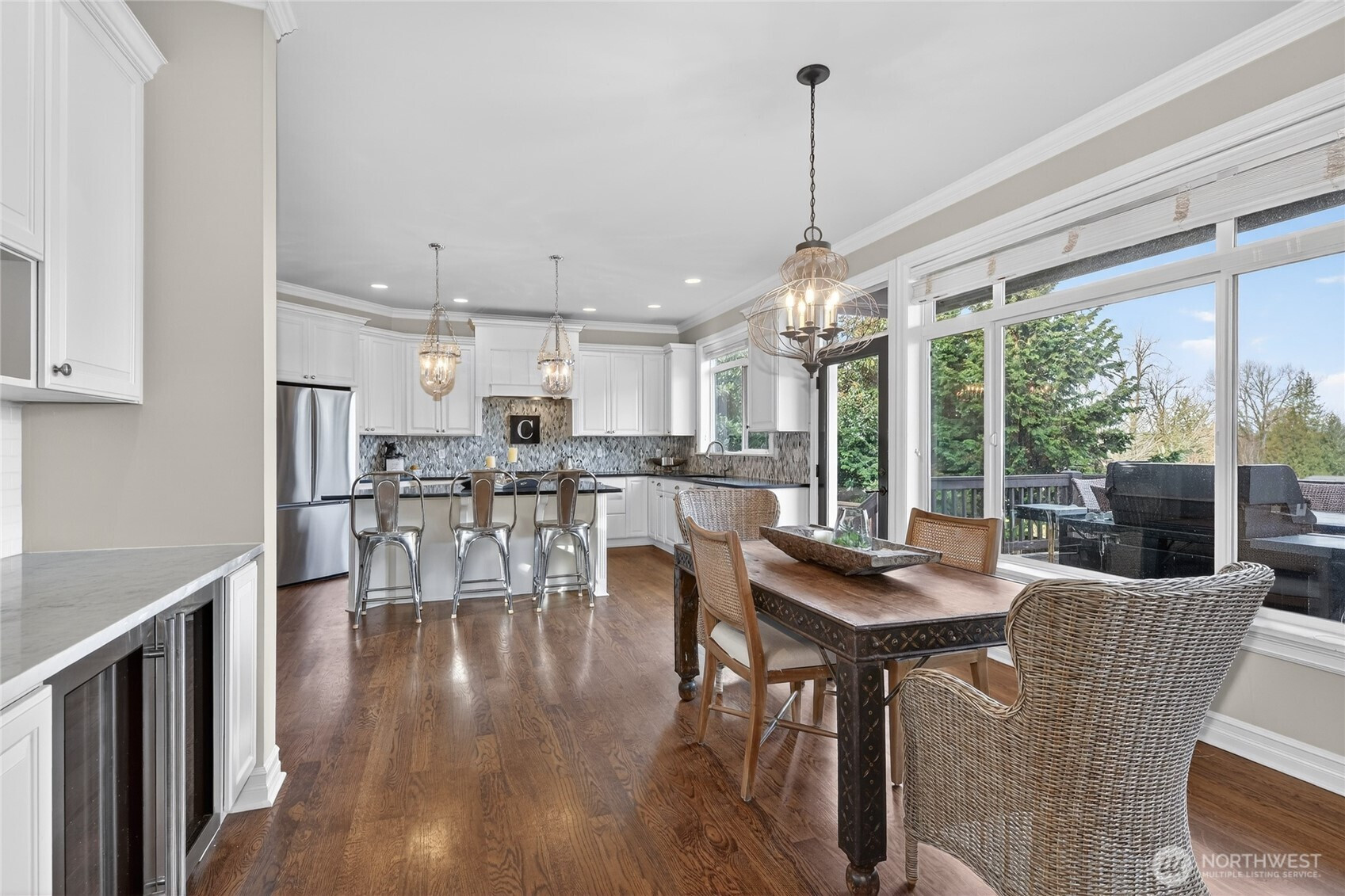 Live where leisure is a way of life in coveted Castle Pines, gracefully nestled between The Plateau Club and Soaring Eagle Park. Captivating craftsman-styled home w/ a soaring two-story foyer makes an unforgettable first impression. Retreat to a home that feels both elevated and effortlessly welcoming w/ its espresso hardwoods and timeless millwork. Designed for entertaining & everyday living, the gourmet kitchen opens seamlessly to a spacious family room - perfect for gathering and connection. The thoughtfully designed main level features a guest suite, private office/den, formal dining room and built-in wine bar. Upstairs, the dreamy primary suite offers two walk-in closets and additional finished flex space, while generous secondary bedrooms share a beautifully remodeled bath. A large bonus room w/ closet provides the option for a fifth bedroom, media room, or play space. Step outside to a deck designed for lingering evenings around the firepit, taking in expansive Cascade views. Below, enjoy a large, level yard w/ lush green lawn & patio space. Everyday moments feel indulgent w/ high-end craftmanship & details, miles of nature trails, & the award-winning LWSD. A/C. Pre-inspected. NEW GARAGE DOORS INSTALL 3/20. Possible add'l room/ADU opportunity underneath home - access under deck.