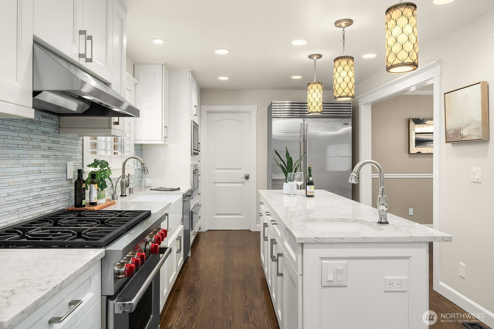 Perfectly situated in the community of Medina, this elegant residence offers timeless appeal and exceptional livability on a beautifully landscaped 0.37-acre corner lot. Spanning 3,630 square feet, the home features 4 bedrooms and 4 bathrooms with light-filled living spaces designed for both comfortable daily living and effortless entertaining. Warm hardwood floors, expansive gathering areas, and a welcoming fireplace create an inviting atmosphere throughout the main level. The daylight walk-out lower level provides exceptional versatility with a large recreation space and plumbing in place for a future wet bar or second kitchen—ideal for guests or multi-generational living. Outdoors, a spacious deck and patio overlook the private backyard framed by mature landscaping. Located minutes from Bellevue and Seattle, and within the highly regarded Bellevue School District, this home offers an outstanding opportunity to enjoy one of the Eastside’s most coveted neighborhoods.