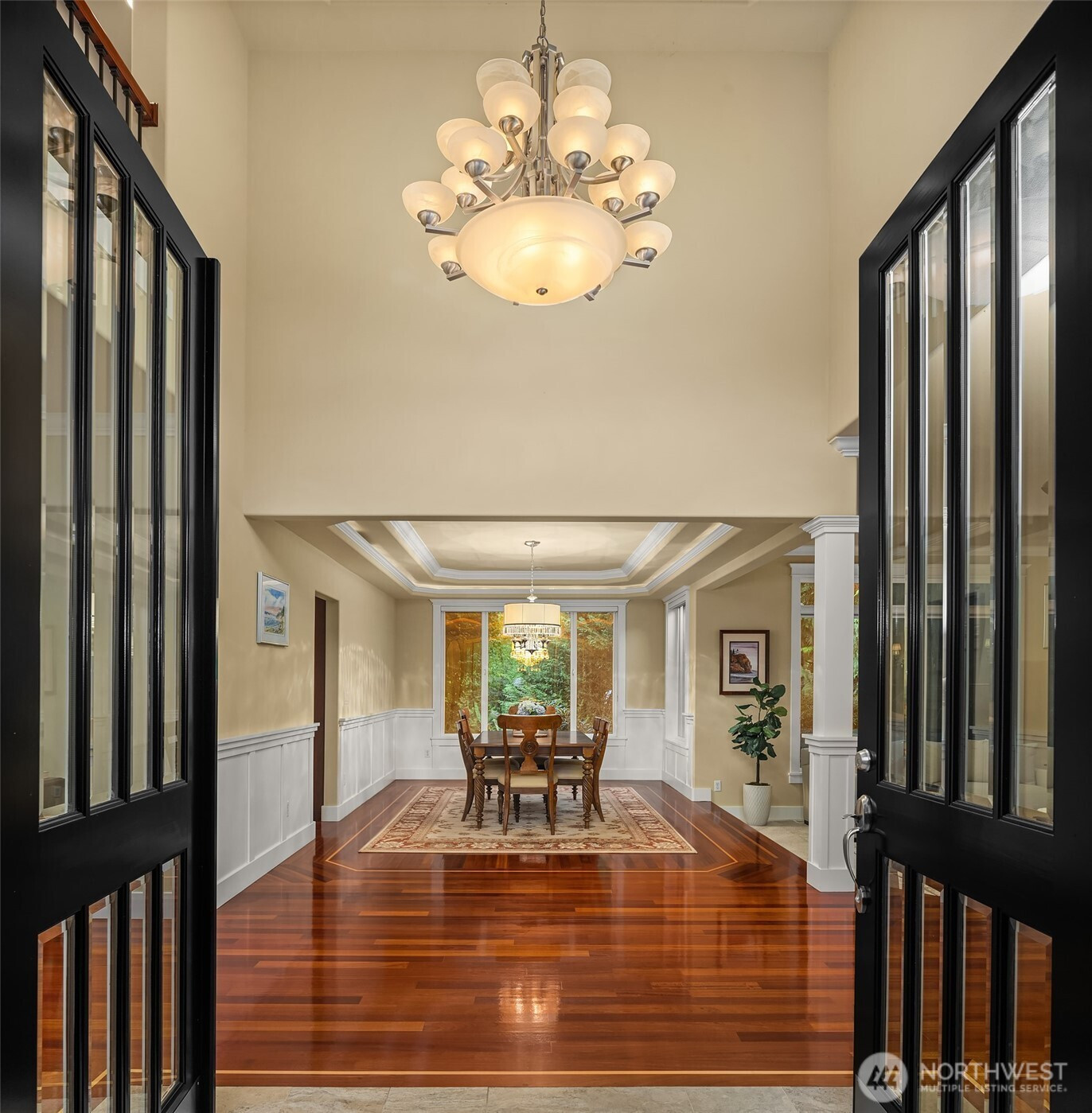Set on over 2 private acres in a gated community, this Black Diamond retreat blends elegance, comfort, and nature. A soaring two-story foyer with cherry hardwood floors and walls of windows welcomes warm light and wooded views. The gourmet kitchen features granite counters, a Viking fridge and walk-in pantry that flows into open living and dining areas, perfect for gatherings that extend to the patio beneath the stars. The primary suite offers a spa-inspired bath with jetted tub, while four versatile bedrooms provide space for work, play, or guests. With A/C, Hunter Douglas shades, central vac, new carpets, a private well, and lush outdoor living, this home is a peaceful escape designed for everyday moments and unforgettable memories.