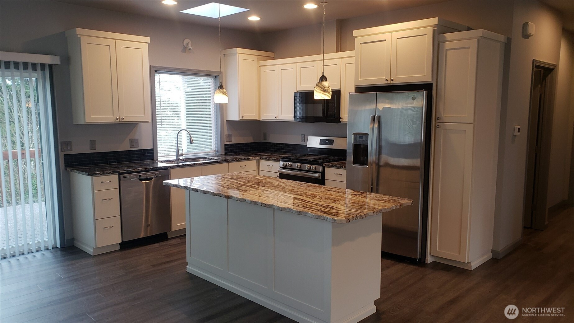 Welcome to this beautiful, modern, 3-bedroom, 2.5-bathroom home in the Cherokee Bay Neighborhood of Maple Valley. Featuring a bright, open-concept floor plan, this home has a gourmet kitchen with stainless steel appliances, granite countertops, and a large center island. Hardwood floors throughout the home, living room area, kitchen and dining room. Tile flooring in the bathrooms and carpet in the bedrooms. Downstairs has modern stained concrete flooring. The house is on a 7,500 sq ft lot. Large deck off the dining room.