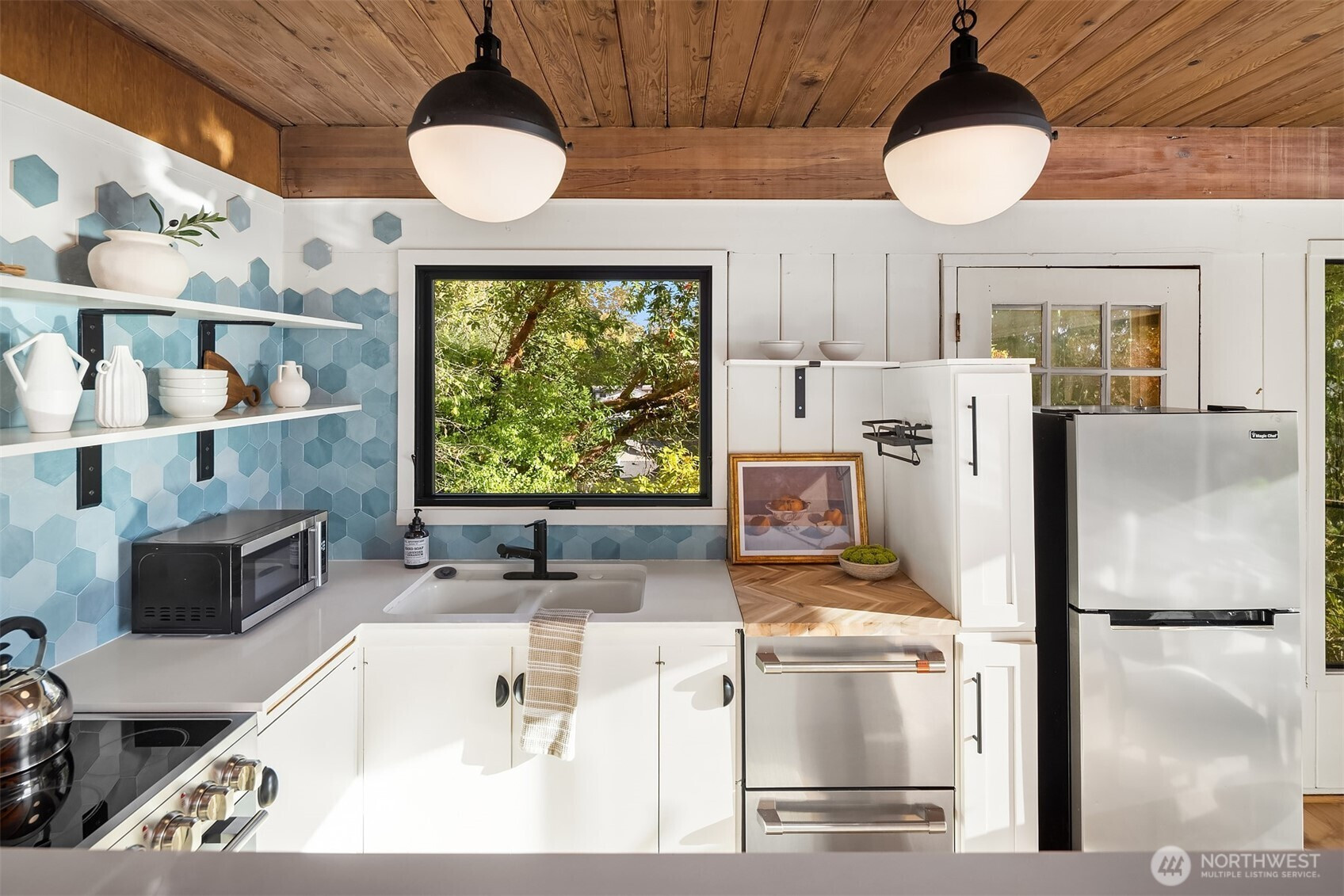Discover a truly enchanting slice of the PNW w/this darling view retreat in the heart of Three Tree Point. Tucked above the tree line & a stone's throw from public beach accesses, this cozy 3-bedroom cottage offers a rare blend of charm, serenity & proximity to neighborhood life. Wake up to bird songs & gentle waves unrolling on the shore while savoring coffee on your private, secluded deck. Enjoy cold plunges, kayaking, beachcombing, & Sound life without the premium price tag. W/thoughtful upgrades, this property offers exceptional versatility as a permanent home, a tranquil weekend getaway or, a lucrative income property. Low maintenance lush natural grounds & ample designated parking for 3+ cars. Min to Olde Burien's shops & restaurants.