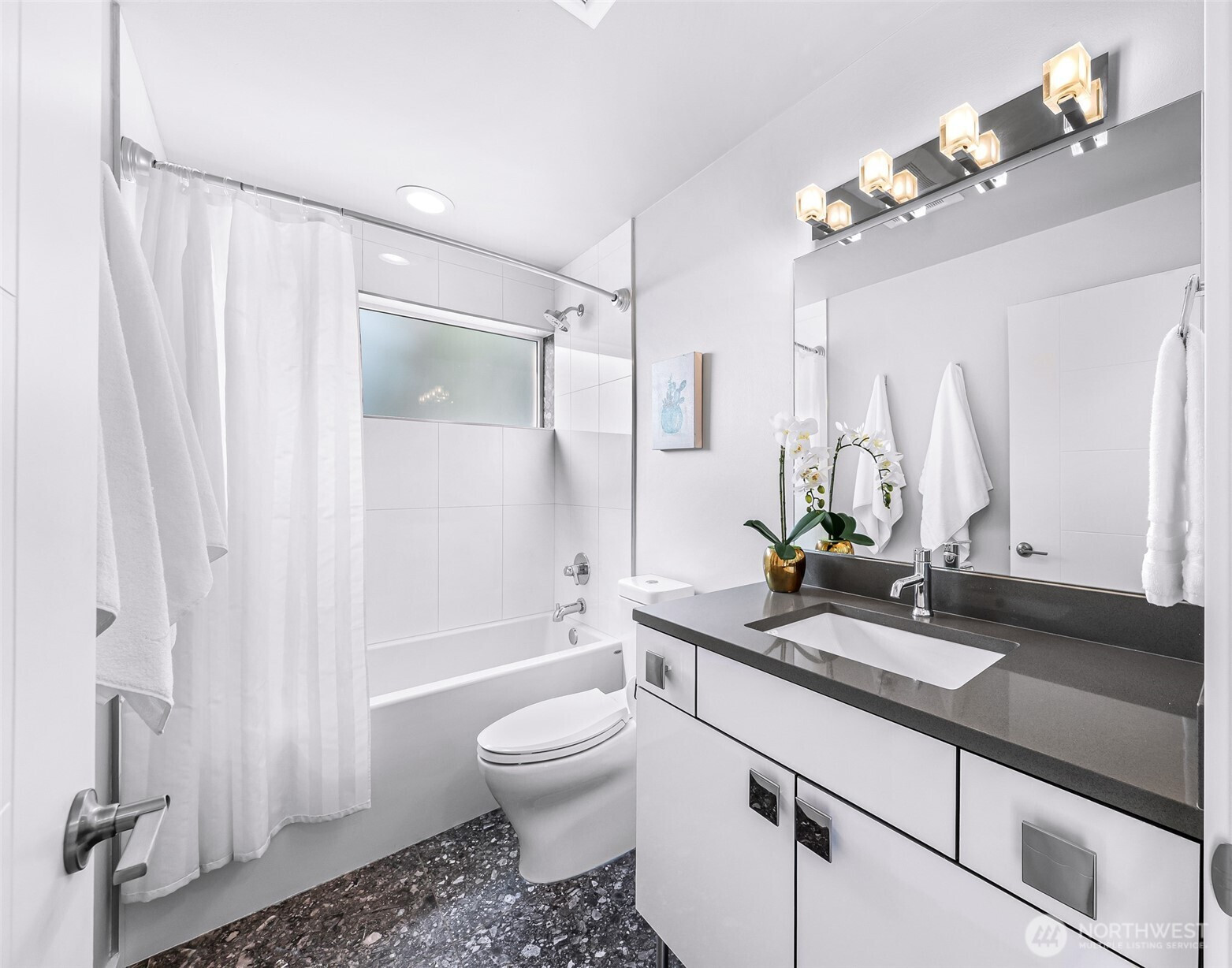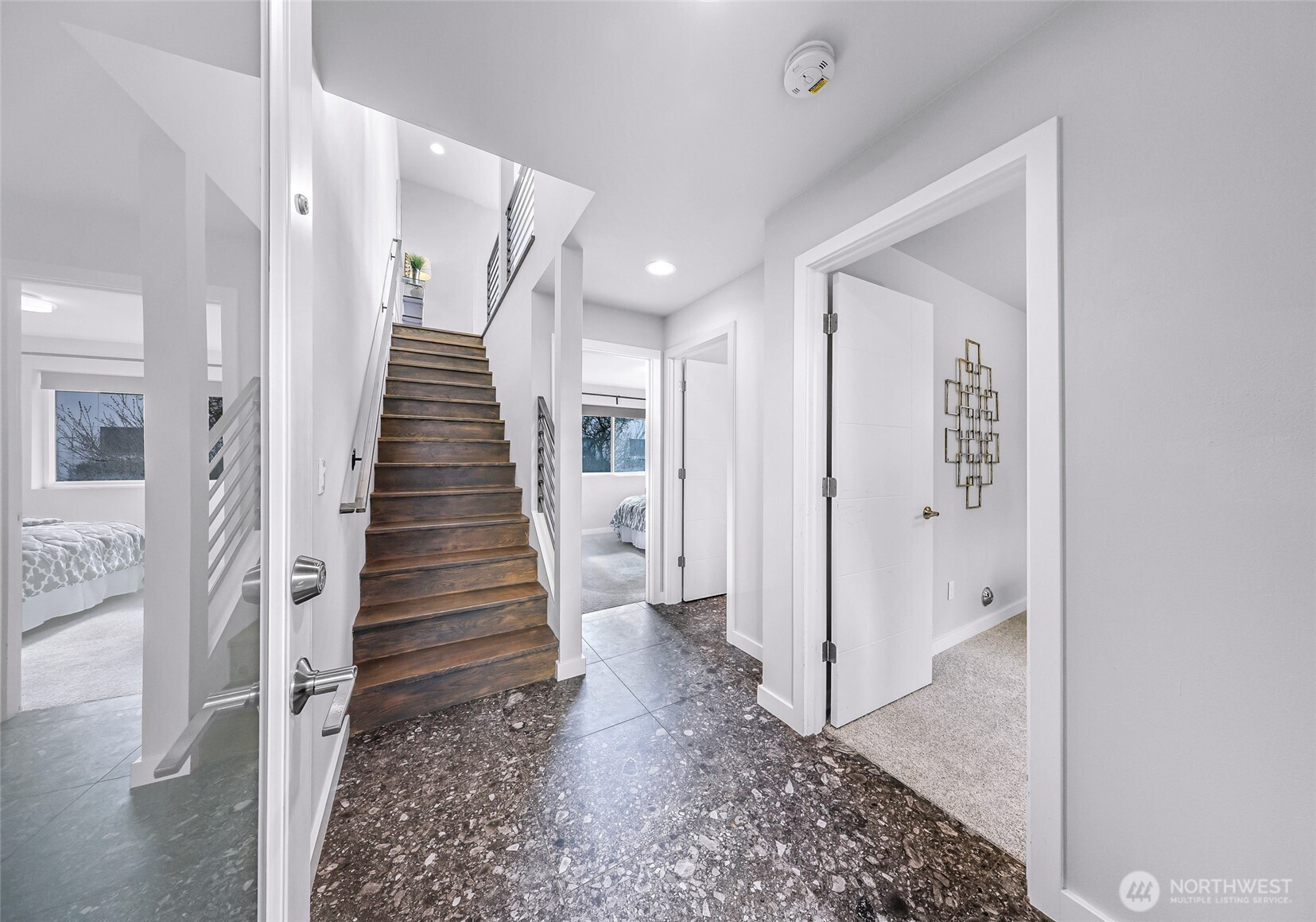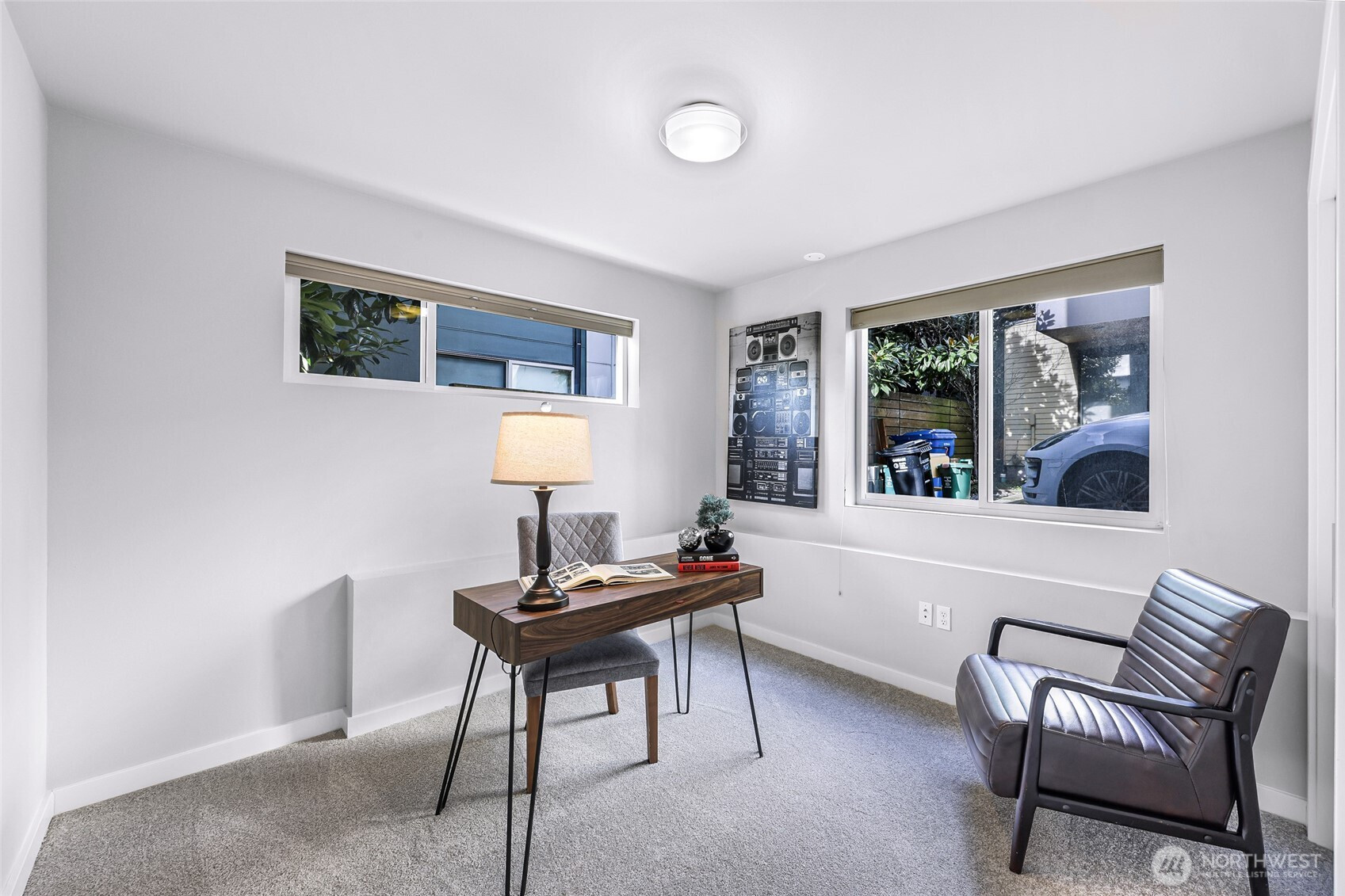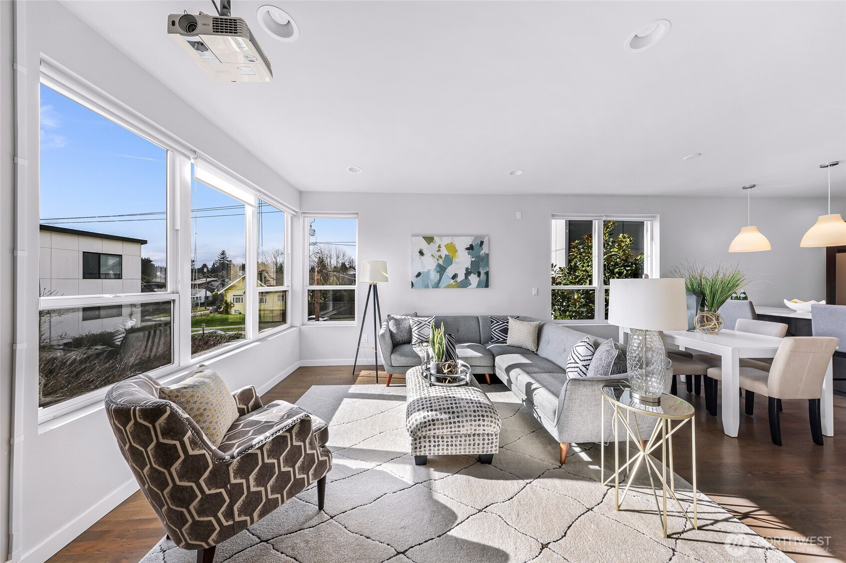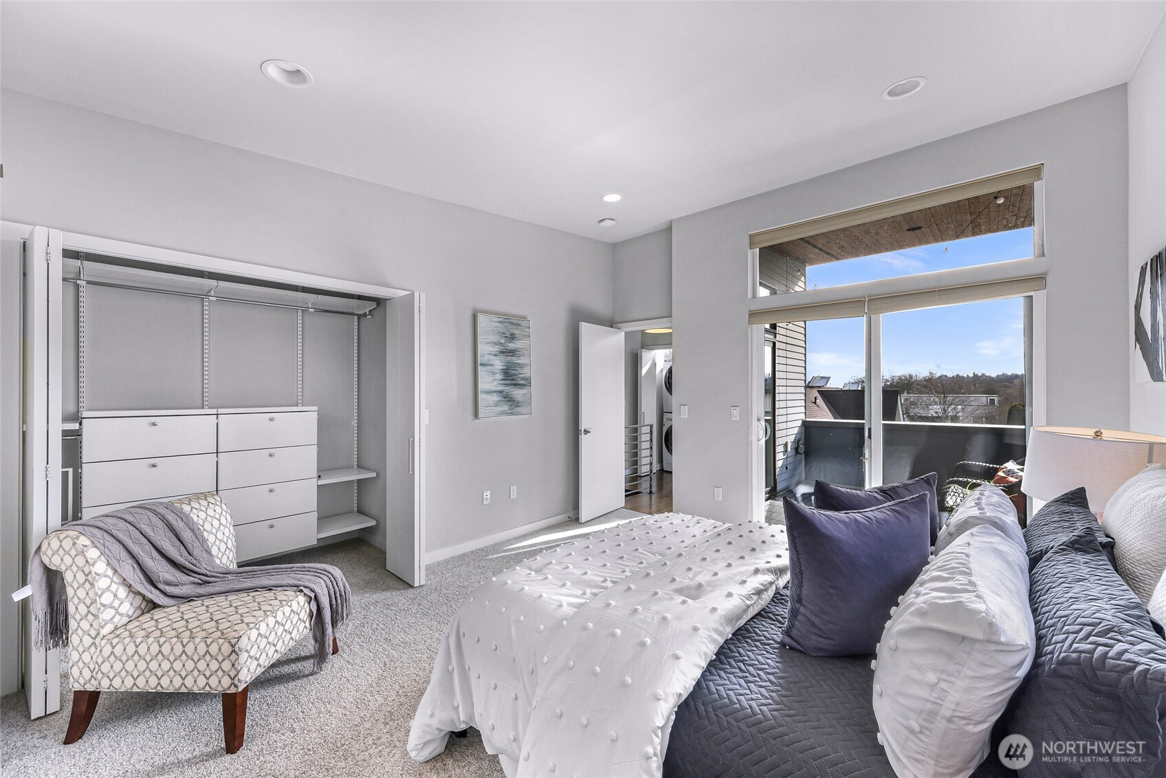 Flooded with natural light, this modern townhome is perfectly situated in one of Ballard's most desirable neighborhoods - just minutes from the Ballard Locks, Golden Gardens, top restaurants, shops and the iconic Ballard Farmers Market. Unlike typical townhomes, this residence offers a wider living footprint that truly shines on the main level. A private off-street entrance welcomes you into the lower level, which features two well-appointed bedrooms and a full bath - ideal for guests, home office space, or flexible living. The main level delivers the true wow factor, showcasing walnut-stained maple hardwoods, a gourmet kitchen with Belmont cabinetry, stainless steel appliances and quartz countertops. The kitchen flows seamlessly into a spacious dedicated dining area and a sun filled, south facing family room, creating the perfect space for entertaining and everyday living. The upper level is devoted entirely to the south-facing primary suite complete with a private balcony, stunning Mt. Rainier view, a four piece ensuite bath and upgraded closet organizers. For added convenience, the washer and dryer are located on the upper level near the primary bedroom. Additional highlights include new carpet in all the bedrooms, a dedicated off-street parking space, and ample street parking. This beautiful move-in-ready townhome offers comfort, style and an unbeatable Ballard lifestyle.