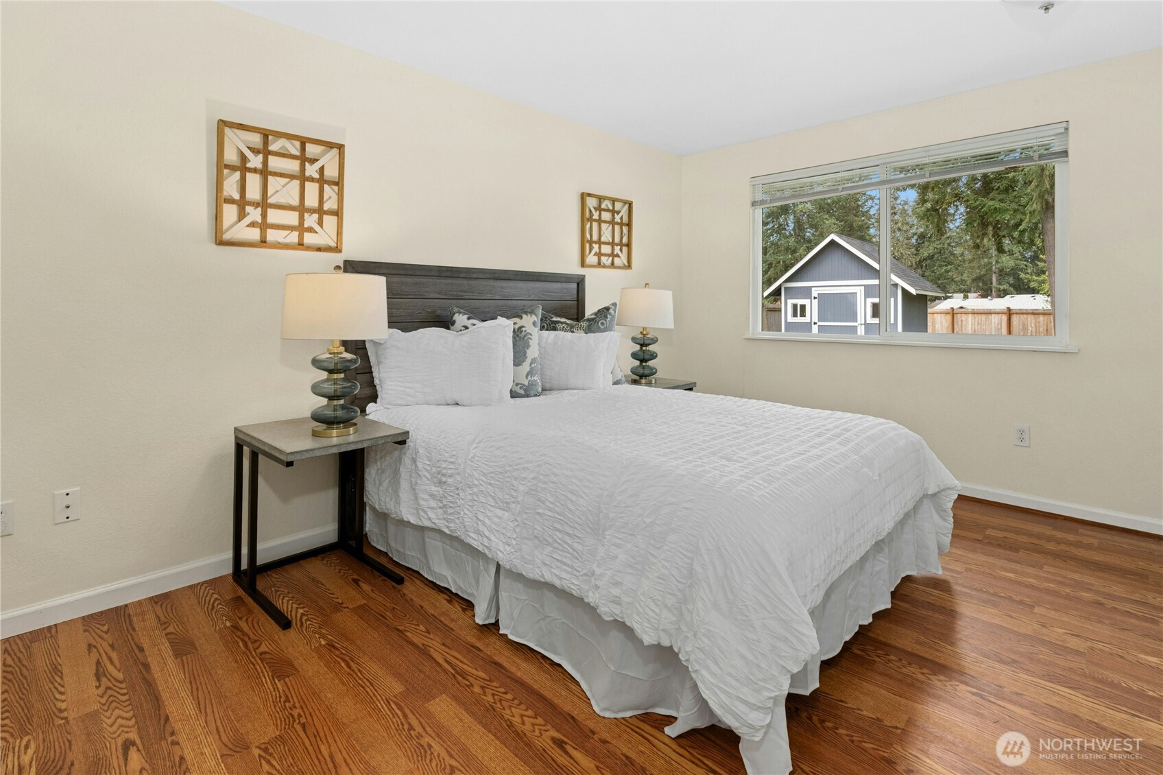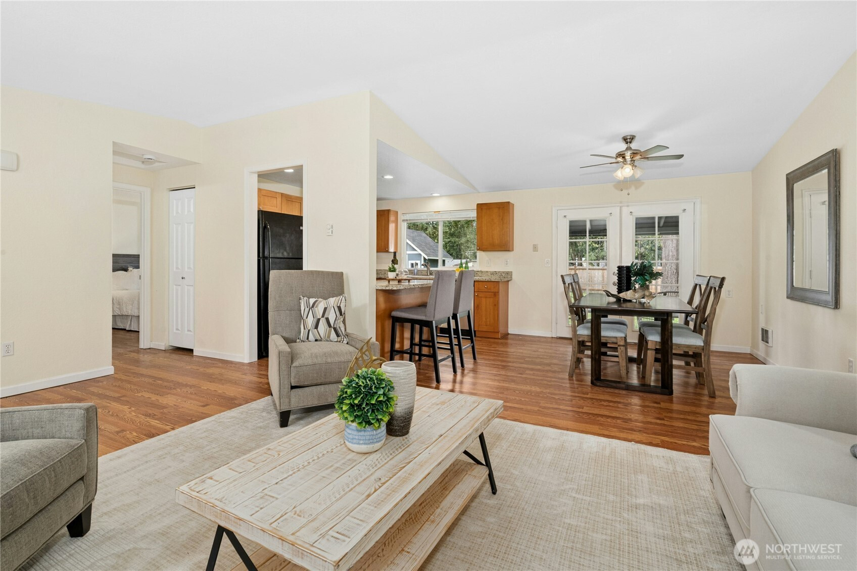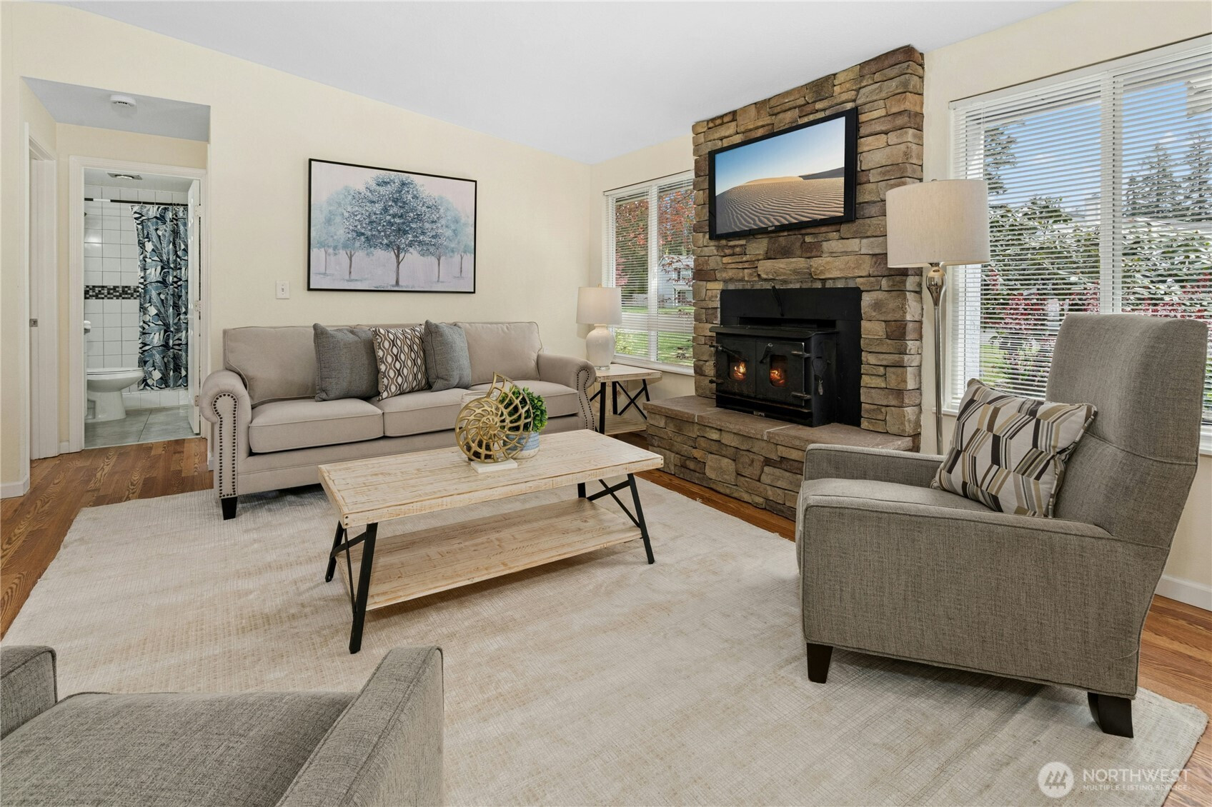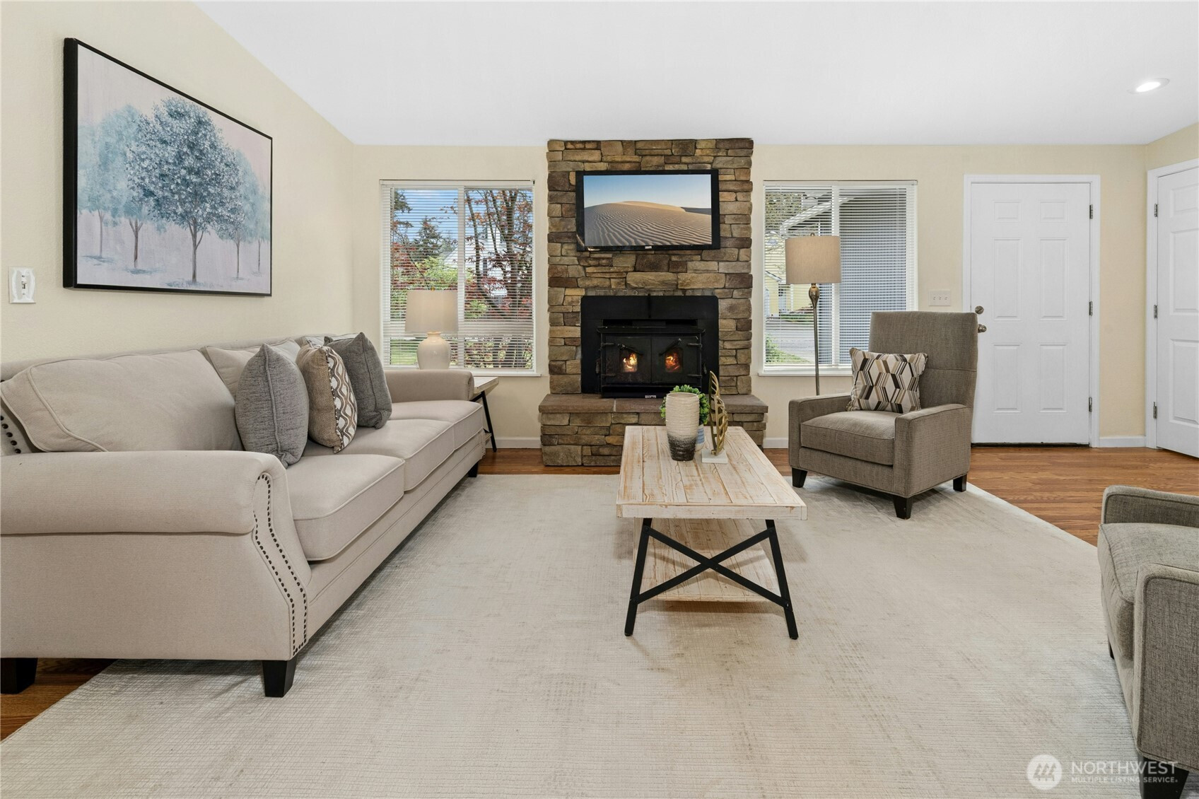 Welcome home to the Timber Hills community of Covington! Enjoy the simplicity of one level living in a home that has been completely refurbished in 2014 and recently refloored with vinyl hardwood plank flooring, fresh coats of paint, and reroofed. The spacious living room with vaulted ceilings is anchored by a slate surround fireplace insert, perfect for cozy nights in. The kitchen in the great room is the hub of the home with custom cabinetry, granite countertops, a breakfast bar island, & Frigidaire appliances. The sleeping quarters live large and are smartly laid out with the primary bedroom on a separate end from the secondary bedrooms. Both bathrooms have been meticulously updated and sparkle with sleek tile shower and bath surrounds & granite counters. The laundry and utility room are conveniently located off the two-car garage that is complete with a workbench, ample shelving, and accessible attic storage. The flat, expansive, fully fenced yard is the perfect spot for outdoor living, a gardener’s delight with raised bed containers, an 8x19’ garden shed, and a 12’x12’ separate structure that flexes as a studio, workshop, or hobby space, both with electricity and concrete flooring. There is even room for your RV. Every detail of this home has been carefully considered to provide comfort & ease for everyday living. It’s just minutes from shopping, dining, & essential amenities. This home is also within walking distance to great schools. You’ll be happy to call this home!