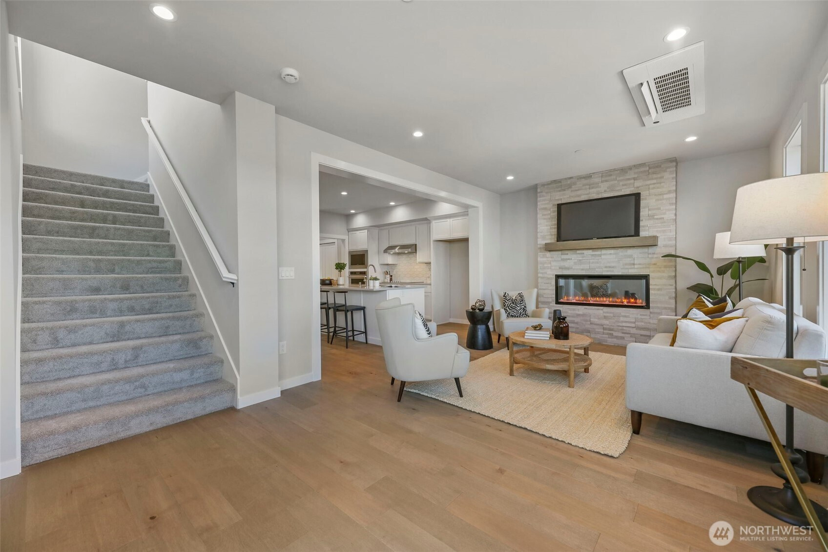 Snoqualmie Valley views & end unit available for immediate occupancy! Lot 6 is 2167 sq ft with 3 bedrooms, 2.25 baths, open living spaces, kitchen with eating space & den all with the latest designer chosen materials & colors. Two car garage & outside space with patio & garden space. Besides featuring beautiful townhomes with its own children’s play area, it's just a 10 minutes’ walk to downtown Duvall with shops, restaurants, city parks & library. Riverview School District. Easy commute to Eastside cities of Redmond, Woodinville, Bothell, Bellevue & beyond. Duvall is served by public and private company transportation busses. Buyers to register agent on first visit per MLS Rule #11.