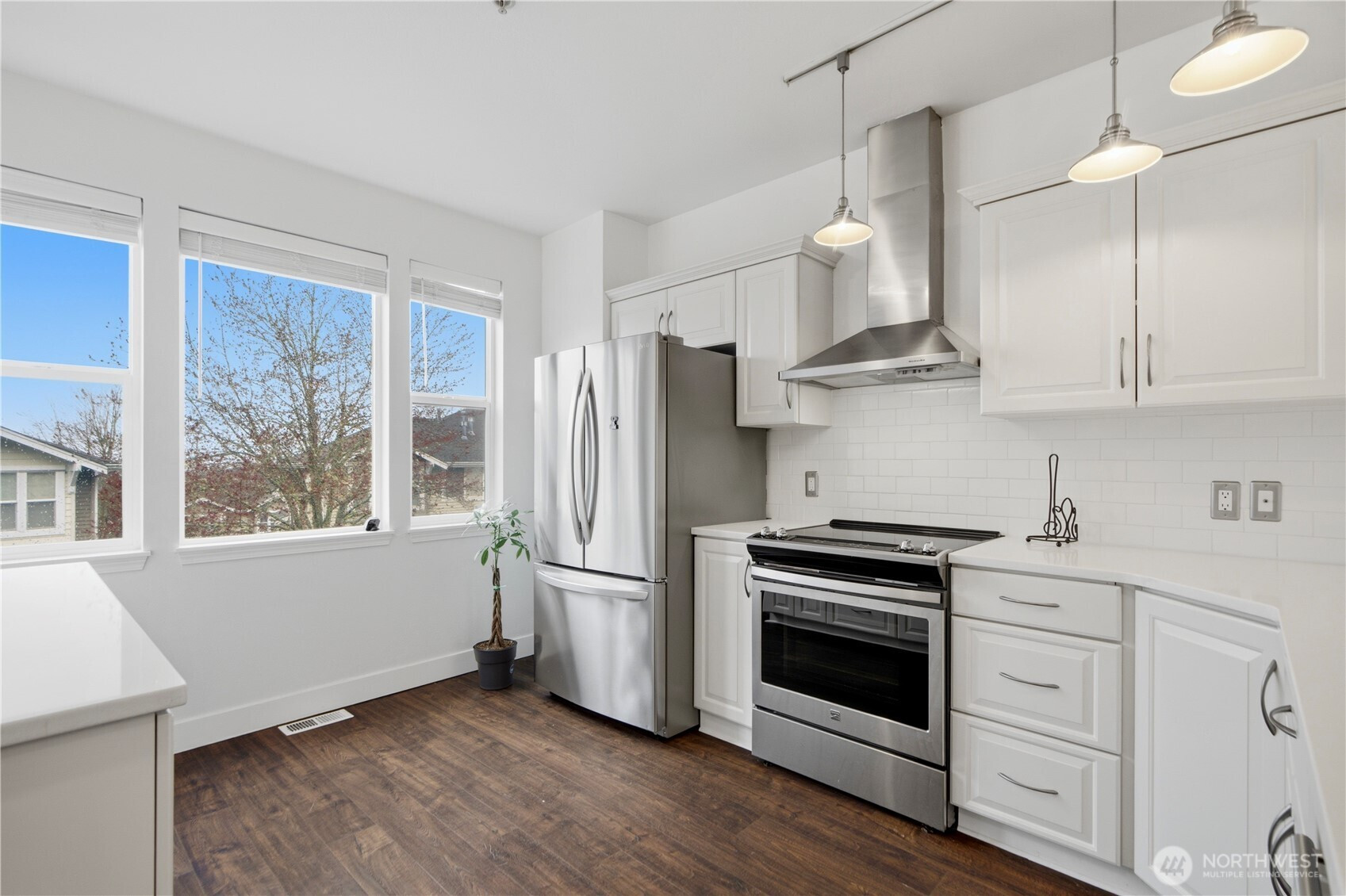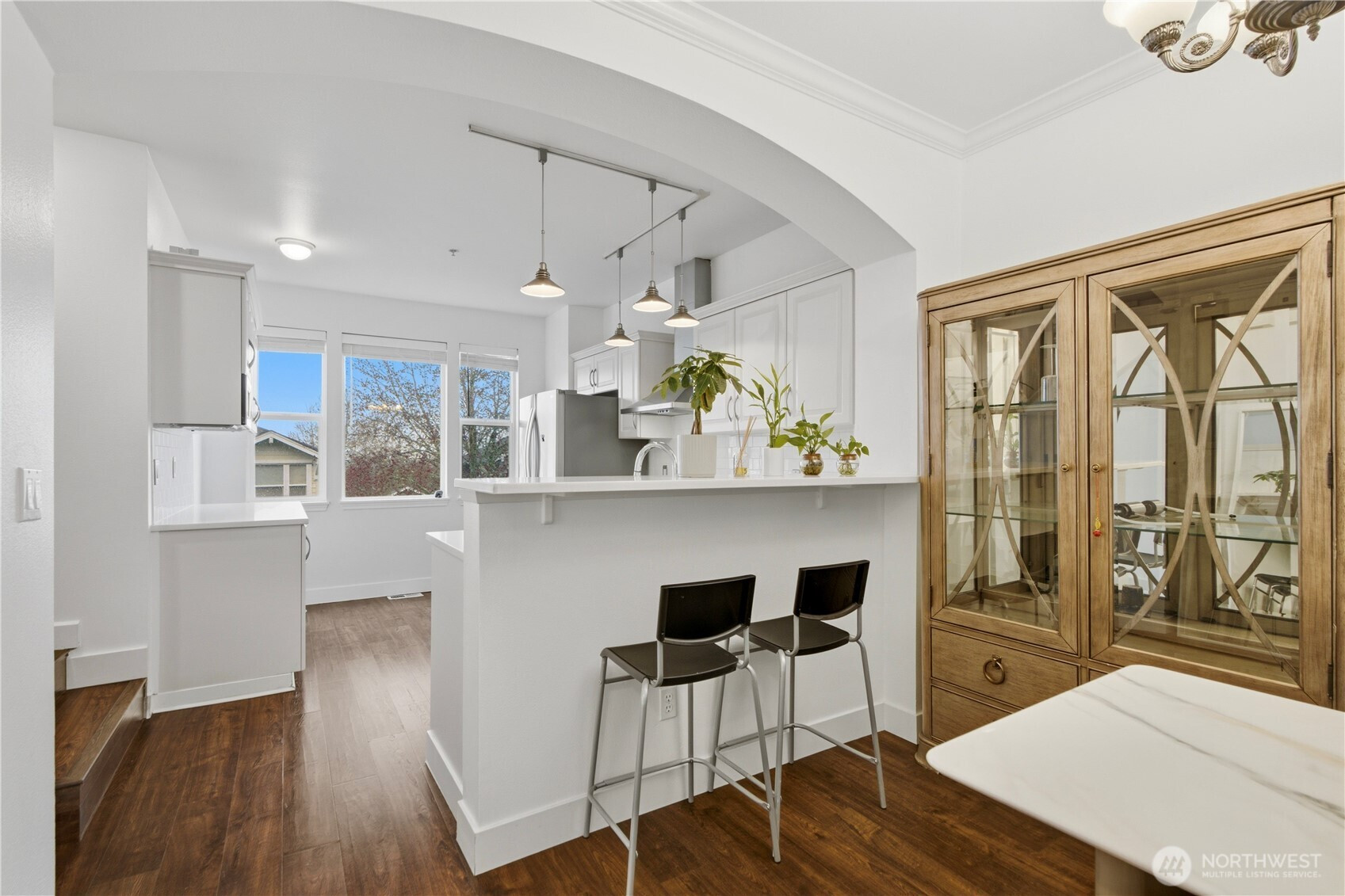 Step inside this recently updated home, where an open-concept layout creates a bright and spacious feel, complemented by picturesque views of the Olympic Mountains. The home comes with stainless steel kitchen appliances, quartz countertops, engineered wood floors throughout, smart lighting and thermostat, a tandem two-car garage, a warm gas fireplace, and a private backyard that's fully fenced, lined with trees, and features an east-facing patio. Recent improvements include central air conditioning added last summer, brand-new cabinetry, and a freshly epoxied garage floor completed just last month. Fresh interior paint, a new refrigerator and oven, and renewed upstairs flooring round out the latest upgrades. Ideally situated near Eastgate Park & Ride, the Amazon Shuttle, and I-90/405, commuting to Microsoft, downtown Bellevue, and Seattle is effortless. The HOA is well-managed, and with no rental cap, this home is a fantastic find—whether you're seeking your next residence or a smart investment. No rental cap!