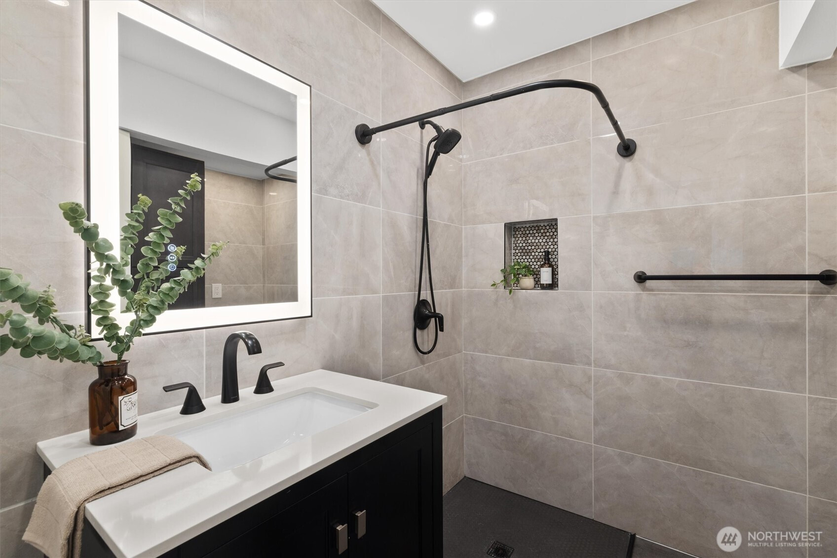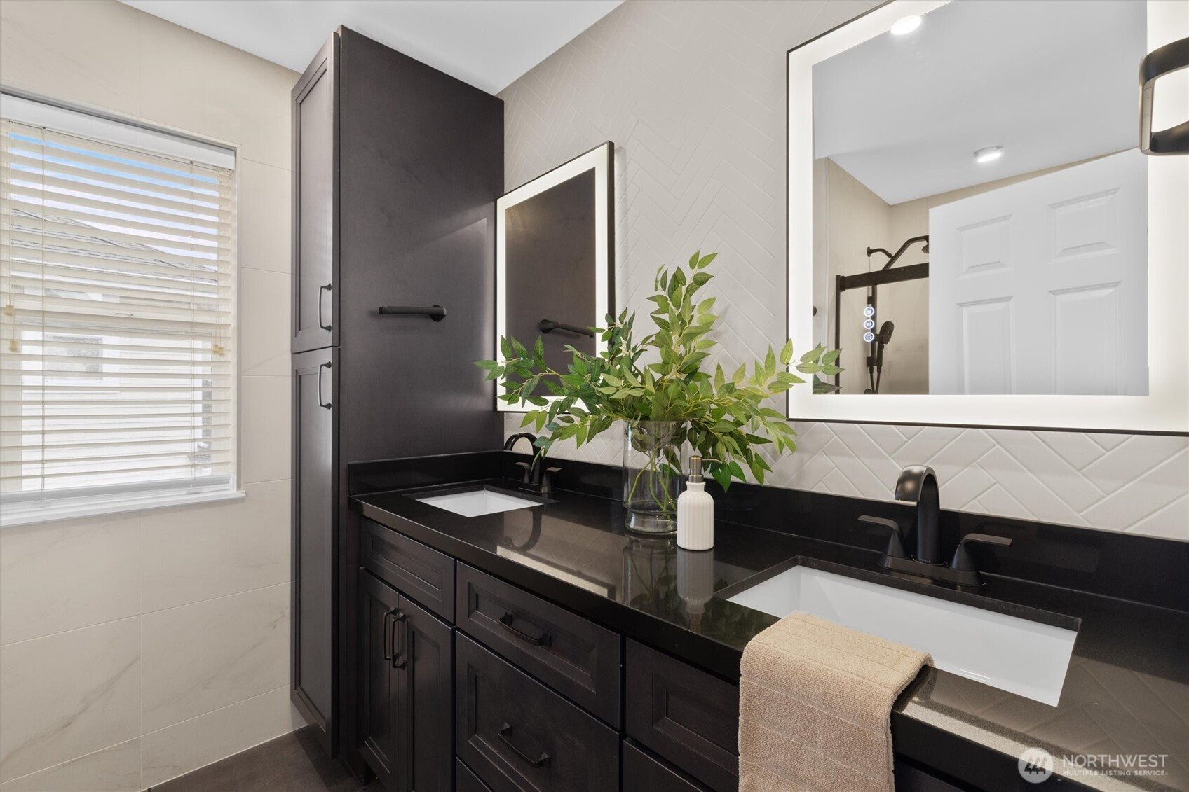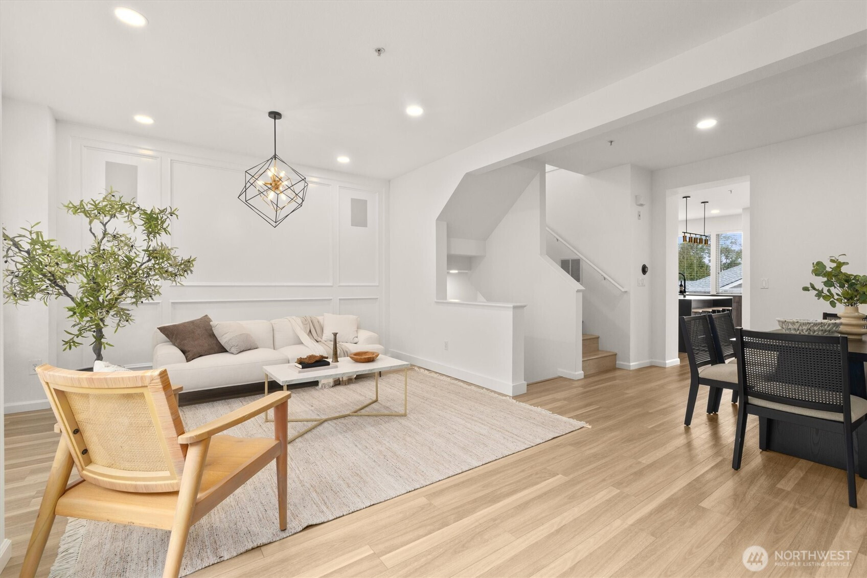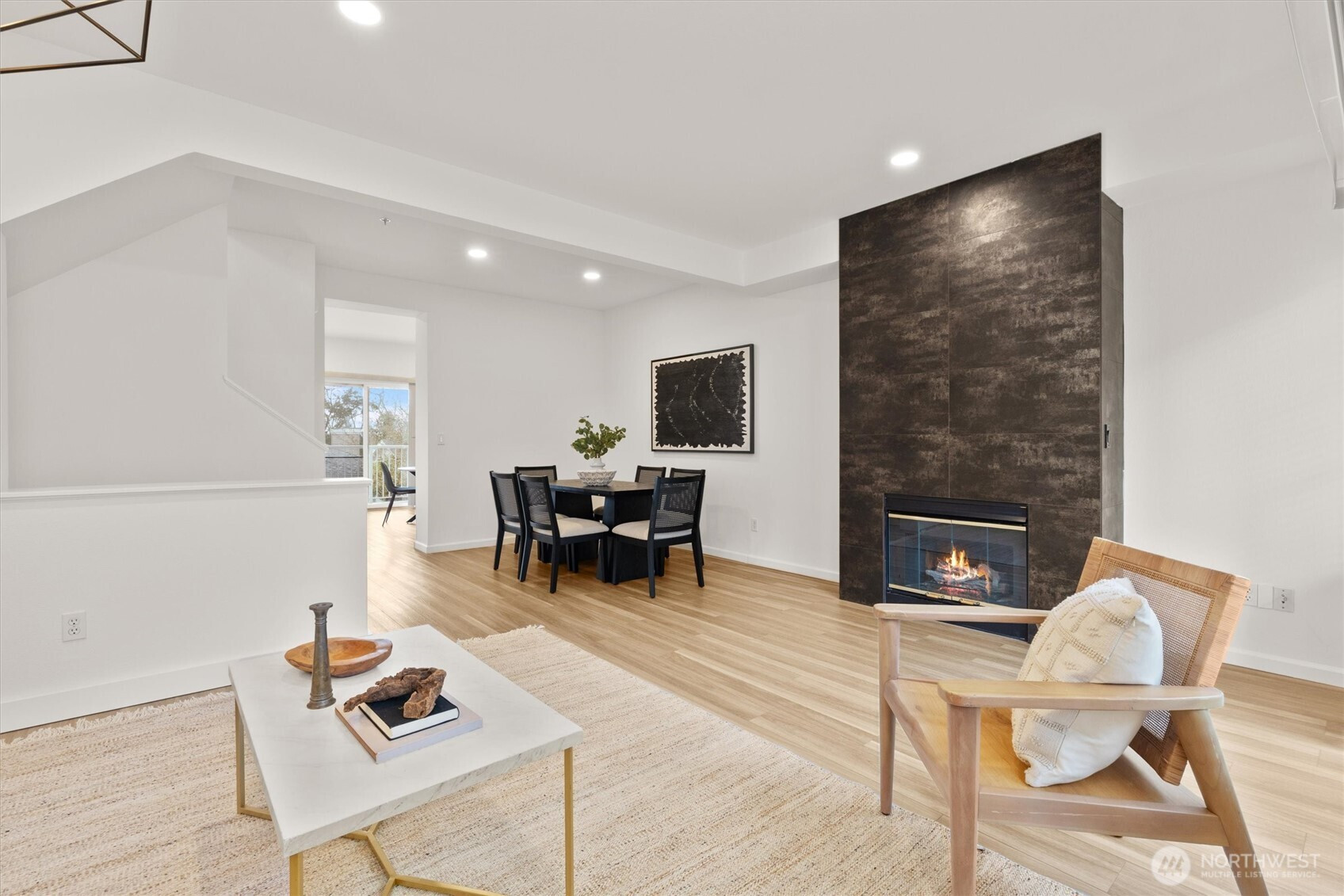 Beautifully reimagined and truly move-in ready, this rare 3-bedroom home in the heart of Bellevue blends modern luxury with everyday convenience just minutes from premier shopping, dining, parks, and major tech campuses. Thoughtfully upgraded with over $130,000 in high-end, minimalist improvements, the home offers a clean, sophisticated aesthetic paired with turnkey ease. The fully remodeled chef’s kitchen serves as the centerpiece, featuring a dramatic waterfall island, luxury countertops, and a 36-inch six-burner designer range, perfect for both entertaining and daily living. Smart home lighting and central A/C provide effortless comfort and control, while fully renovated bathrooms deliver a spa-like experience with premium fixtures and sleek, wall-to-wall tile finishes. The inviting living room is anchored by a striking floor-to-ceiling fireplace feature wall, adding warmth and modern elegance. Upstairs, the primary suite captures captivating views of Downtown Bellevue, bringing the city skyline into your everyday routine. Even the garage has been elevated with a functional slat wall system, offering both style and organization. Pre-inspected for added confidence, this turnkey home allows you to move in worry-free and enjoy elevated Eastside living in an unbeatable location.