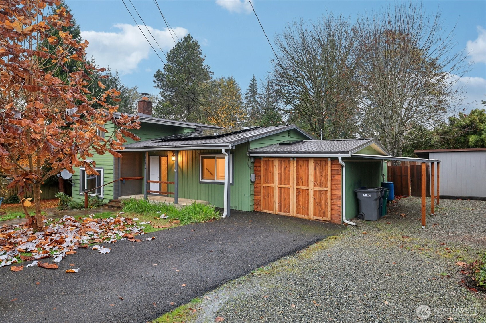 (503) 893-8874Amazing Investment Opportunity just a short walk to Historic Downtown Duvall and the local grade school, on a quiet, dead-end street at the top of the hill, next to the Lake Rasmussen Park. Private fenced backyard, garden space, large deck, gazebo, raised garden beds, lots of parking and storage. 2 bathrooms tastefully updated, with a gourmet kitchen and gas fireplace stove in the family room. Primary bedroom on the main with fireplace, opportunity to convert back storage into a primary bedroom spa/ bathrooms and add 196 sq ft! 3 bedrooms upstairs with 1 full bath. Newer metal roof, AC mini splits, furnace and a 2022 $43k Solar Panel System! A perfect mix of classic charm and modern living in a highly sought-after location! Priced to sell!