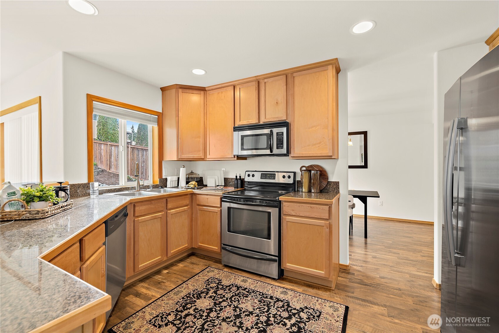 First time on the market! This well-maintained 2,328 sq ft home in the desirable Kent Lake Meridian area offers 4 bedrooms, 2.5 baths, and a 2-car garage, tucked away in a quiet cul-de-sac with no HOA. Step inside to an inviting, open living room with vaulted ceilings that create a bright and airy feel. Functional and spacious layout with recent updates, including a newer HVAC system, furnace, water heater, and washer/dryer. Newer applainces. Newer carpet and flooring. Two dining areas, plenty of room for guests. The primary suite features a recently updated bathroom for added comfort. The exterior has newer paint, enhancing the home’s great curb appeal. Plenty of street parking available for guests and gatherings. Enjoy convenience with nearby shopping, dining, and easy walking distance to schools. Gas line for stove is available. A rare opportunity combining location, updates, and pride of ownership. No HOA!!