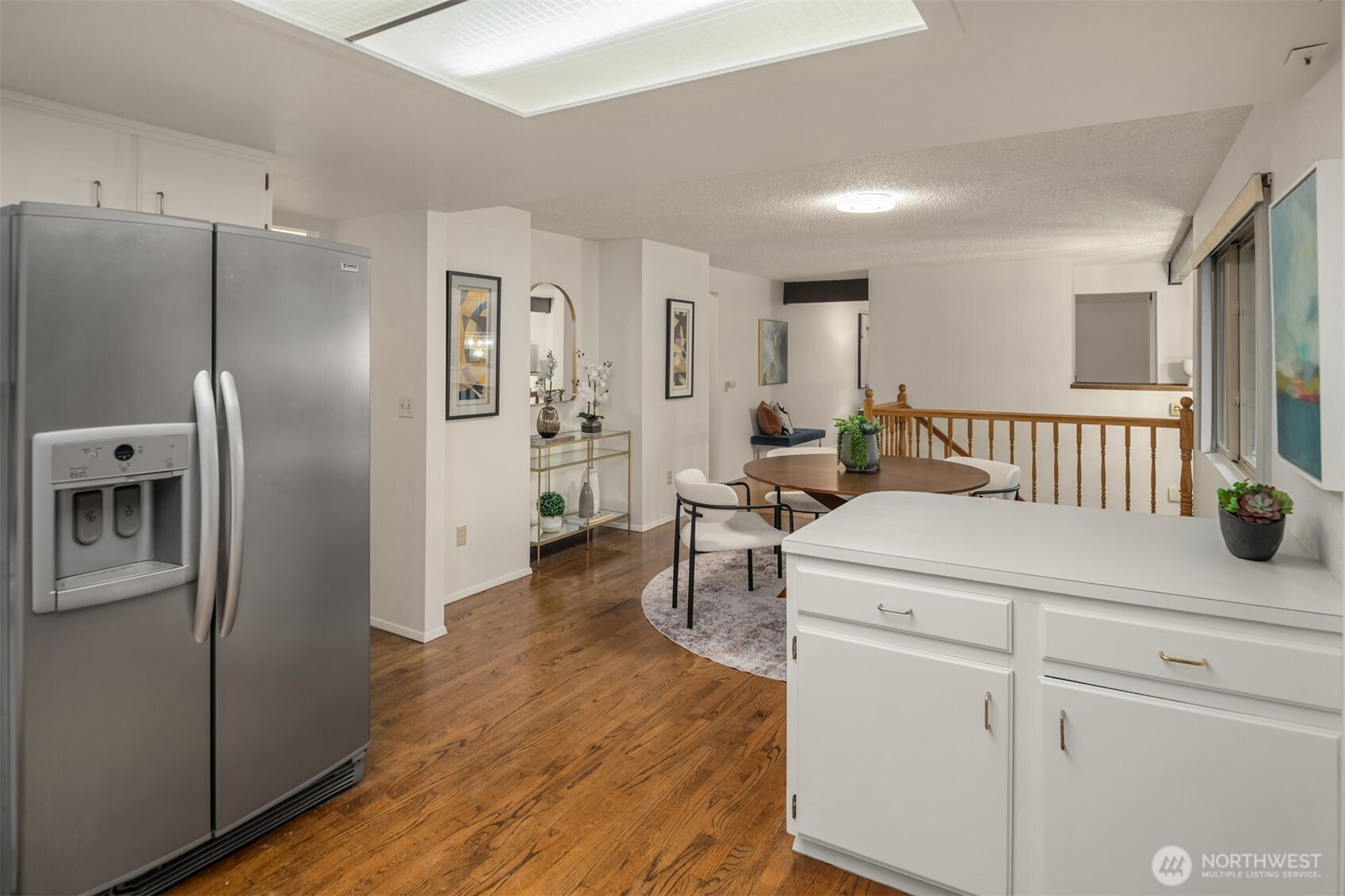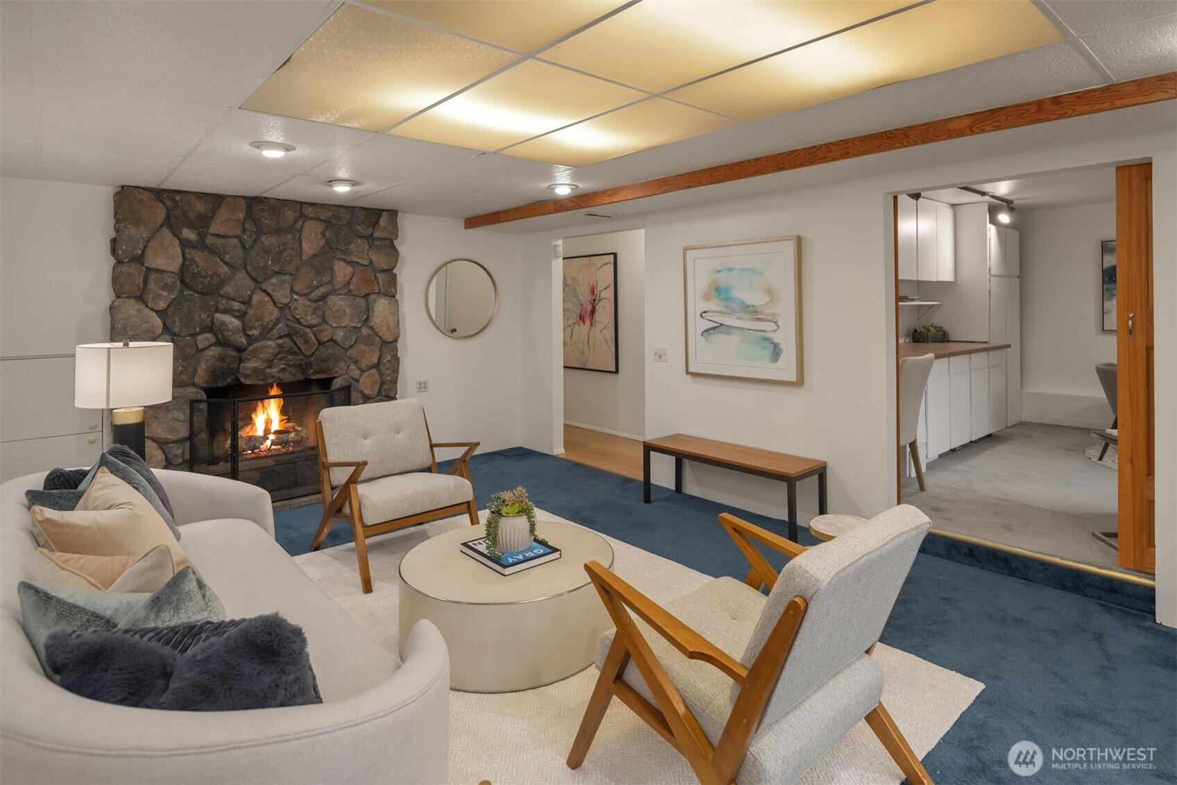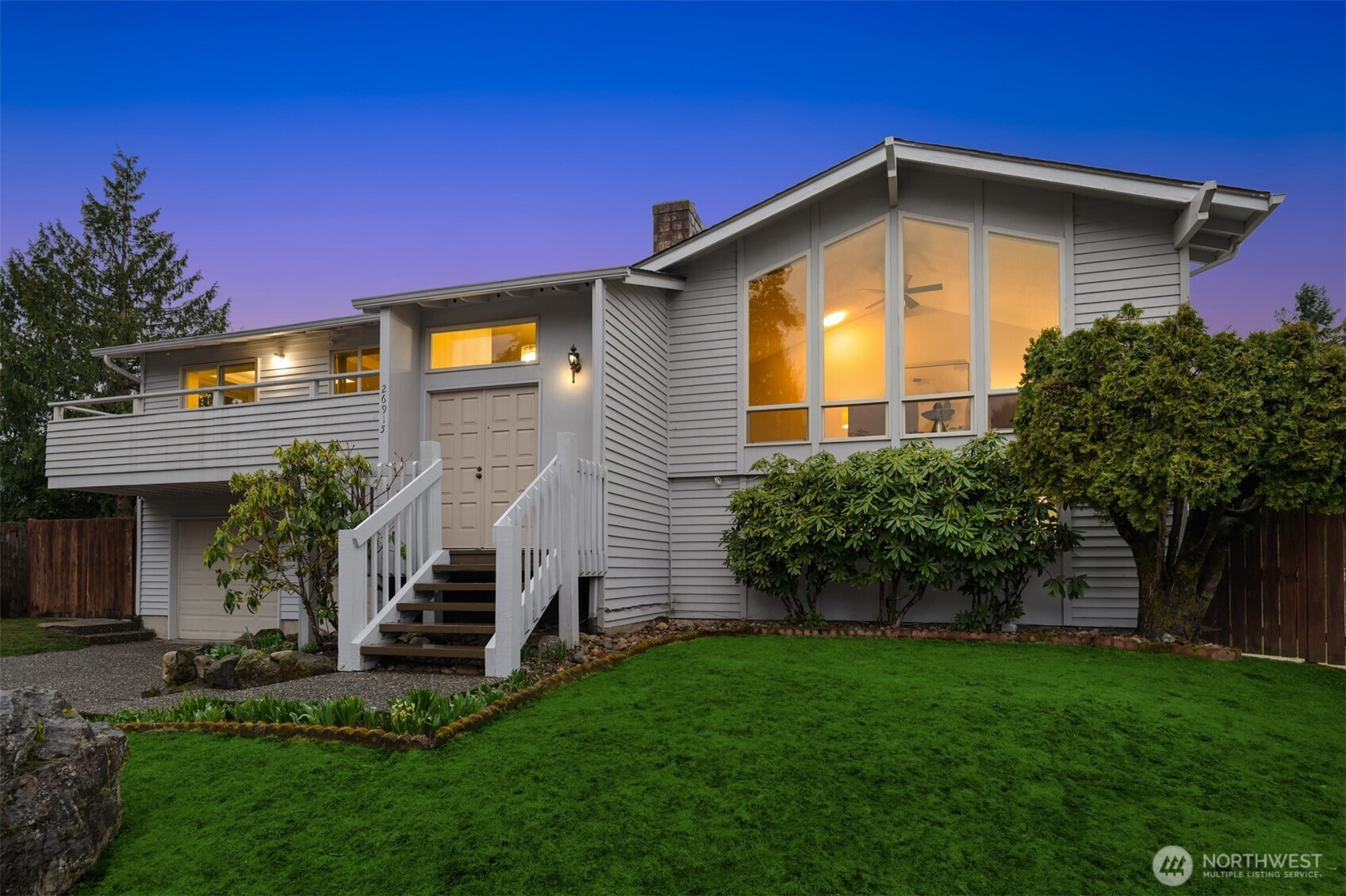 Desirable location highlights this Kent home, with a highly flexible + spacious layout enhancing its appeal. Peaceful cul-de-sac setting with easy proximity to parks, schools + transit. Warm + welcoming living spaces, each with a distinctive fireplace, on two levels. Dramatic vaulted ceiling accentuates brightness of main-level living room. Open-concept dining room + kitchen elevates entertainment potential. Three bedrooms, including primary with ensuite bath. Two bonus rooms, perfect for home office or exercise studio, on lower level. Attached, oversized two car garage. Fenced backyard retreat with detached structure. Close to neighborhood schools + parks, including Lake Fenwick. Just one mile to light rail + convenient to freeways + planned Sounder station.