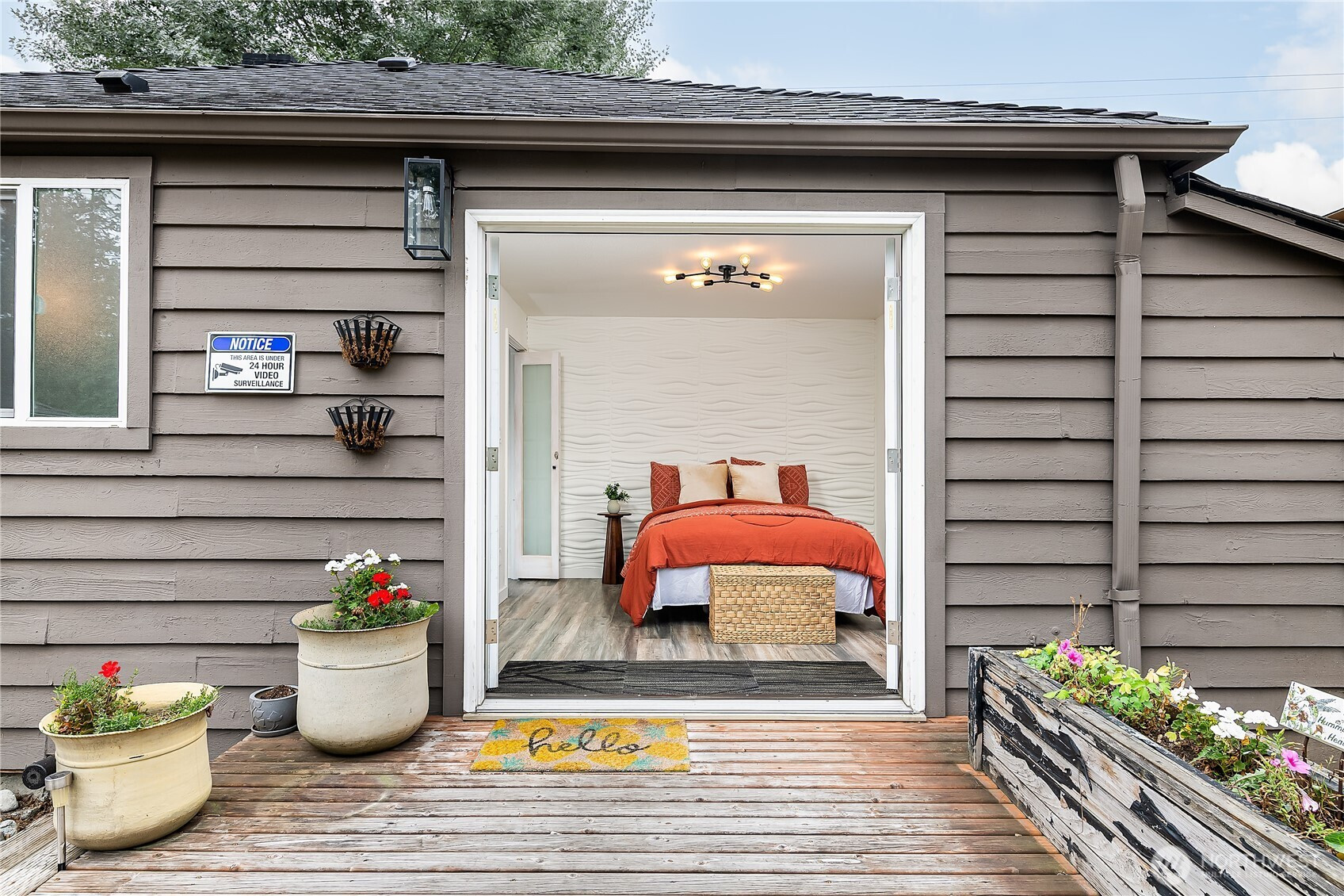 Welcome to a rare dual living estate that combines modern luxury with endless versatility. Located on a secure gated shy quarter acre lot this property is a meticulously reimagined creative sanctuary featuring two separate fully renovated residences. Every inch was transformed in 2022 with premium upgrades including new roofs windows electric panels and high efficiency mini split systems with air conditioning for year round comfort. The primary residence showcases sophisticated design with Italian tile flooring heated bathroom floors and a chef inspired kitchen featuring sleek quartz countertops and a double oven. Elegant French doors lead to a private deck from the main suite which is accented by a stunning custom deco wall. The second detached home is equally impressive with its own private patio and commercial grade flooring ideal for a high end rental or a professional home business. Outside, the expansive newly paved parking area comfortably accommodates eight vehicles all within the safety and privacy of a fully fenced and locked perimeter. This peaceful retreat is often visited by local wildlife yet remains remarkably close to top rated schools, vibrant shopping, serene lakes, and major commuter freeways. Whether you are seeking a house hacking opportunity, a multigenerational compound, or a turnkey investment with dual income streams, this property delivers total flexibility and modern convenience. Everything is new thoughtfully designed and ready for its next chapter