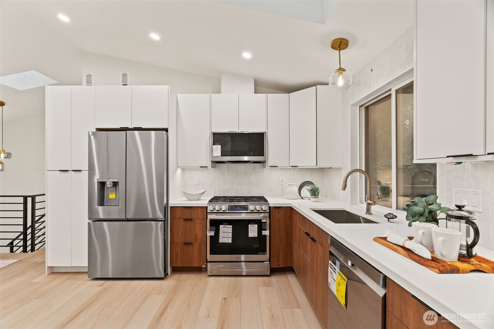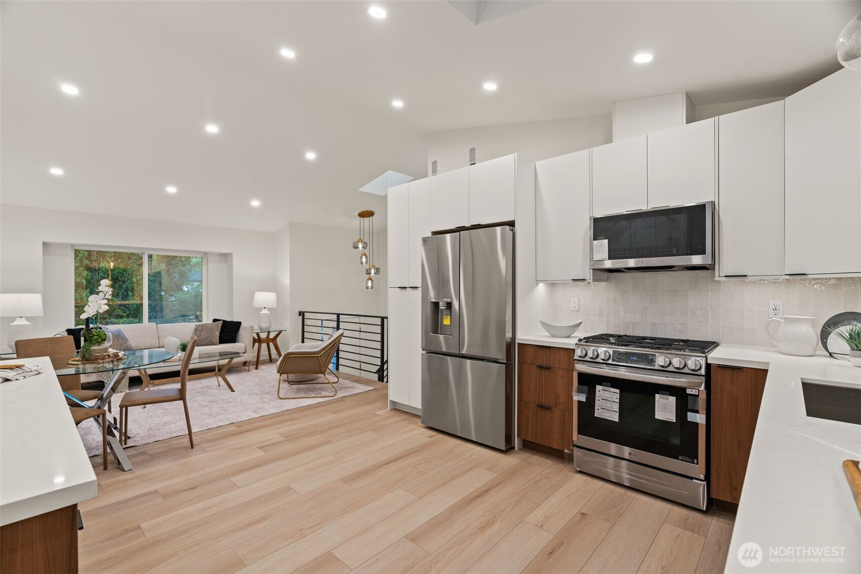 Welcome home to this completely remodeled home, including systems updates, on large and private lot, featuring modern open floor plan with contemporary design. Bright and cozy living spaces, vaulted ceiling, plenty of natural lighting from windows and skylights. Brand new kitchen with high-end finishes, new appliances, quartz countertops. Designer bathrooms with heated floors. Situated in the prestegious Lake Washington School District. Enjoy an easy commute to Redmond, Issaquah, parks, great restaurants and amenities all located nearby.