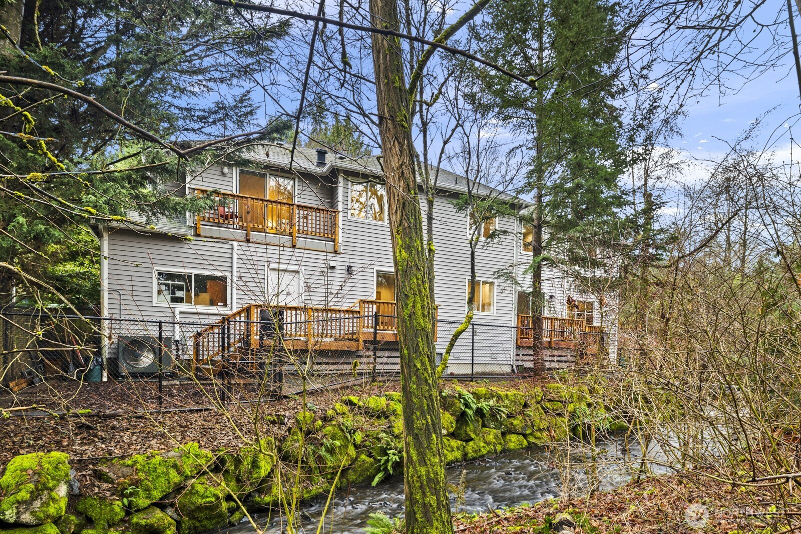 Private park-like living is yours in this magnificent Meadowbrook home! Set on a roomy lot with Thornton Creek at your doorstep & lush native plantings all around, you'll truly feel worlds away from it all; yet all that the city has to offer is just moments away! Sunlight & treed views pour in through abundant windows on the main level, accentuating engineered hardwood floors, a cozy wood-burning fireplace, efficient A/C & a chef's kitchen equipped with quartz counters, stainless steel appliances & ample storage. Living areas are comfortable yet inviting with a smart layout that maximizes space and light! All 4 bedrooms are upstairs, including a relaxing primary with 5-piece ensuite bath, large closet & private deck looking out to your peaceful surroundings. Multiple outdoor spaces all overlook the babbling creek & gorgeous greenery, dappled in shade from towering trees to create a true backyard oasis unlike any other. Stroll to nearby gems like Meadowbrook Playfield & the Burke-Gilman Trail, or take a short drive to Northgate shopping, Wedgwood restaurants or lake views from Matthews Beach. Easy commute downtown via nearby thoroughfares, buses or light rail. Hurry & make this home yours!