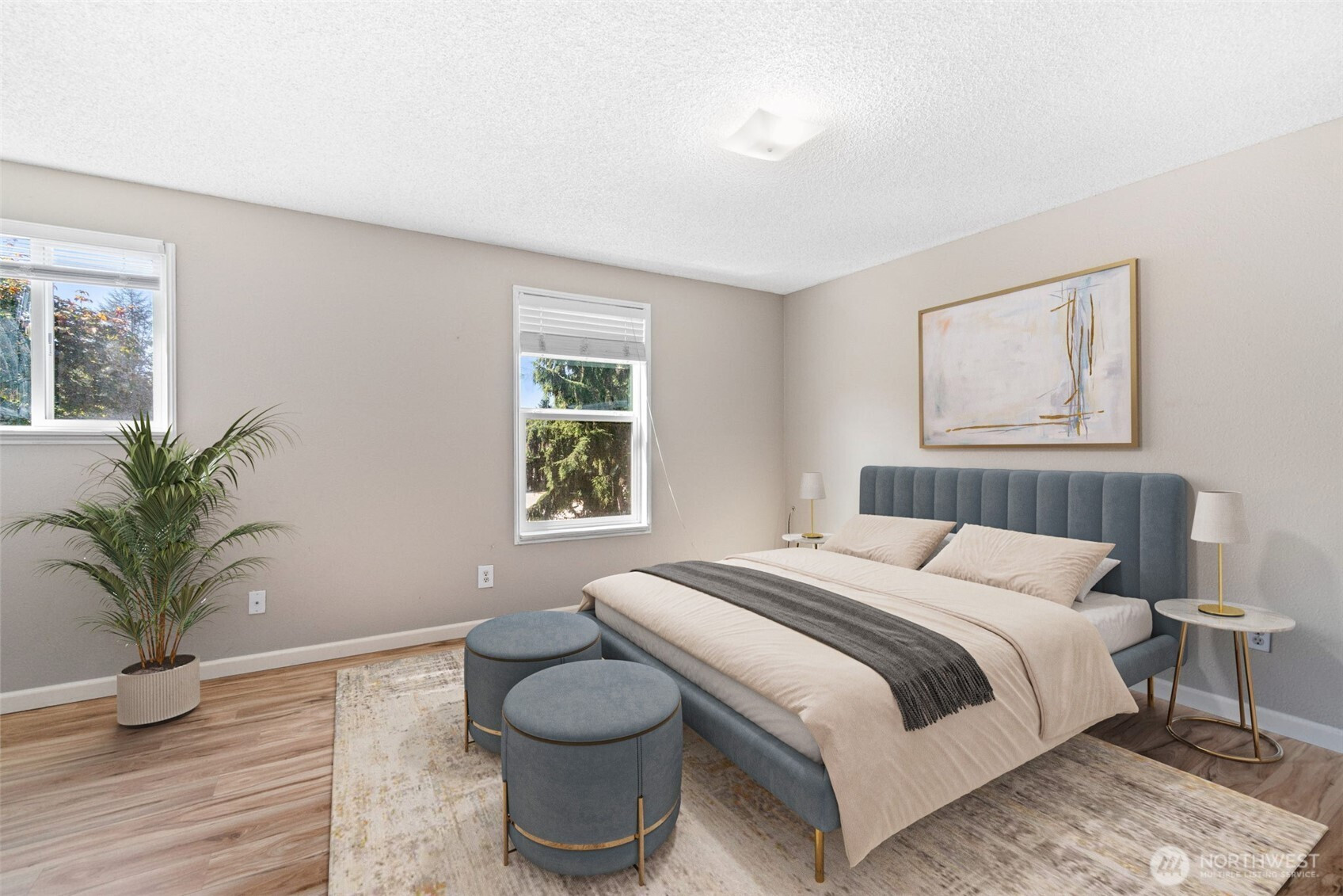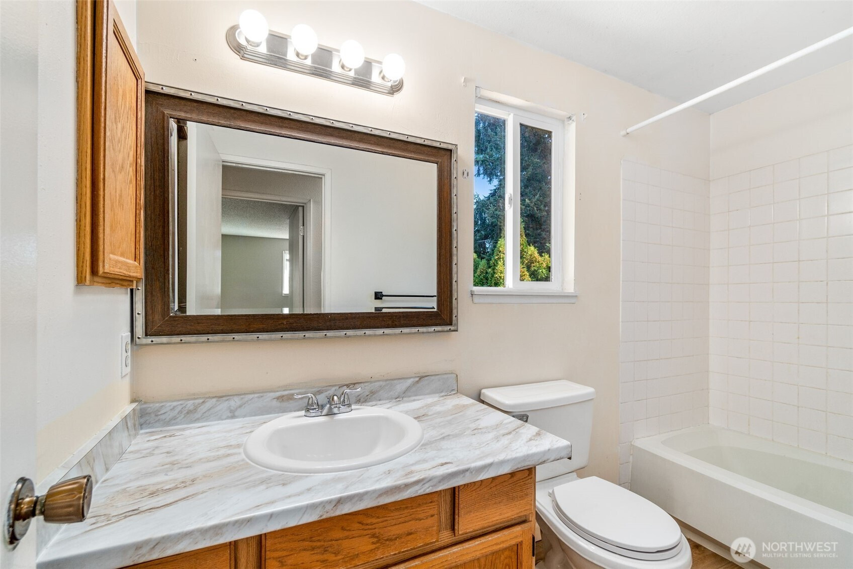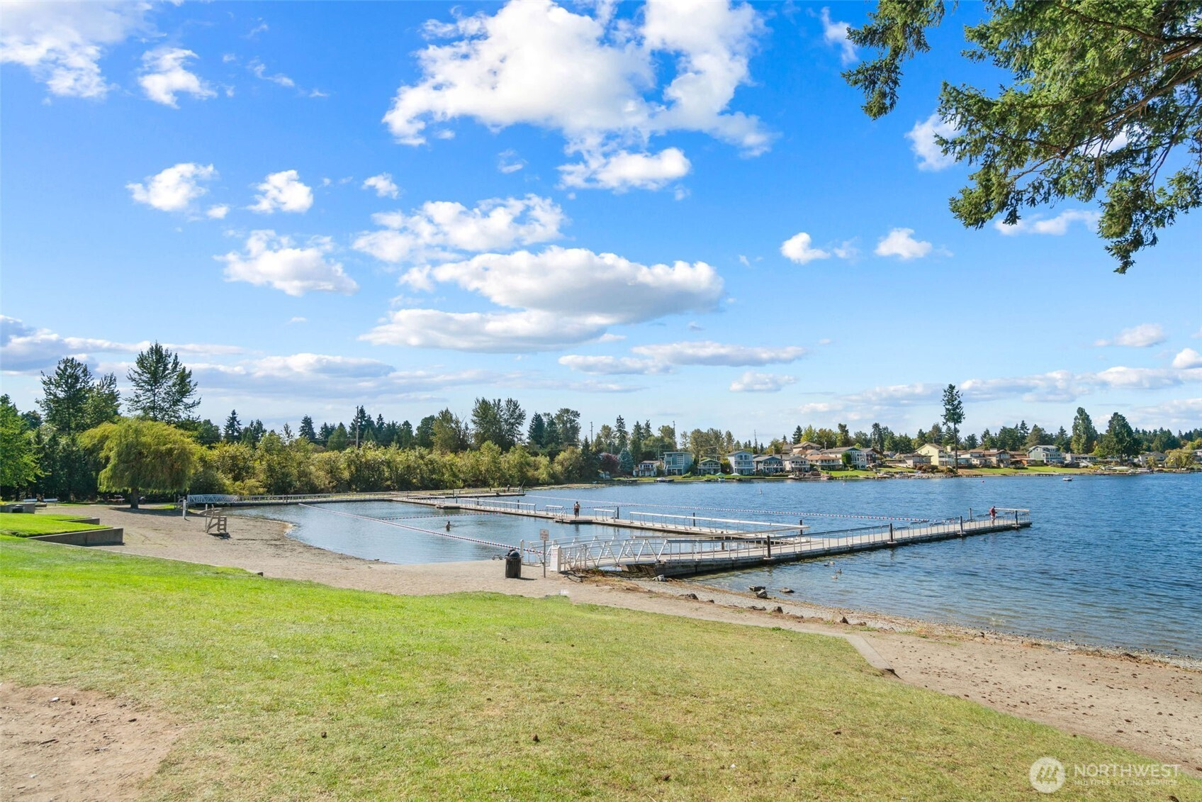 This spacious home is ready for your vision to make it your own. Conveniently located close to shopping and dining. Walkable to scenic Lake Meridian Park. The main level features an open kitchen layout and extra family room space that leads to the covered deck ideal for entertaining. Lower level bedroom ideal for guests or home office space. The upper level features a primary bedroom with walk in closet and en-suite plus two additional bedrooms and hallway bathroom. Hard surface flooring throughout. Easy access for commuting, shopping and recreation & entertainment! Under 10 minutes to Costco, Trader Joe's, Safeway, Fred Meyer, LA Fitness, Starbucks & more!