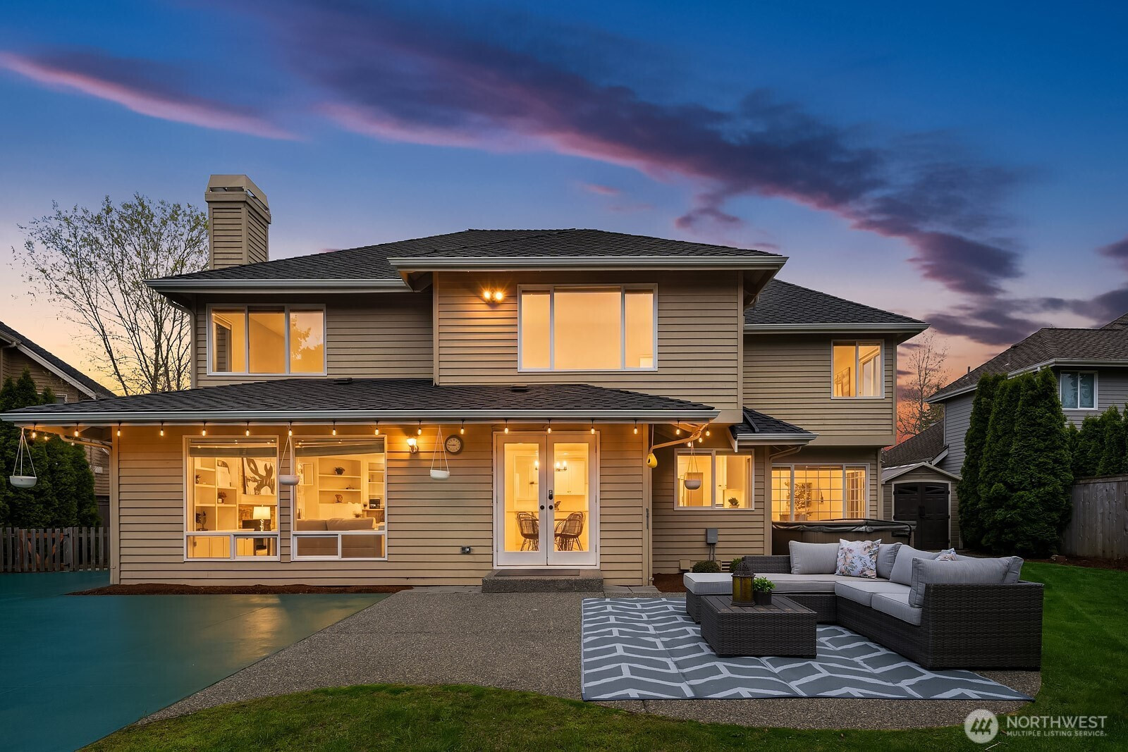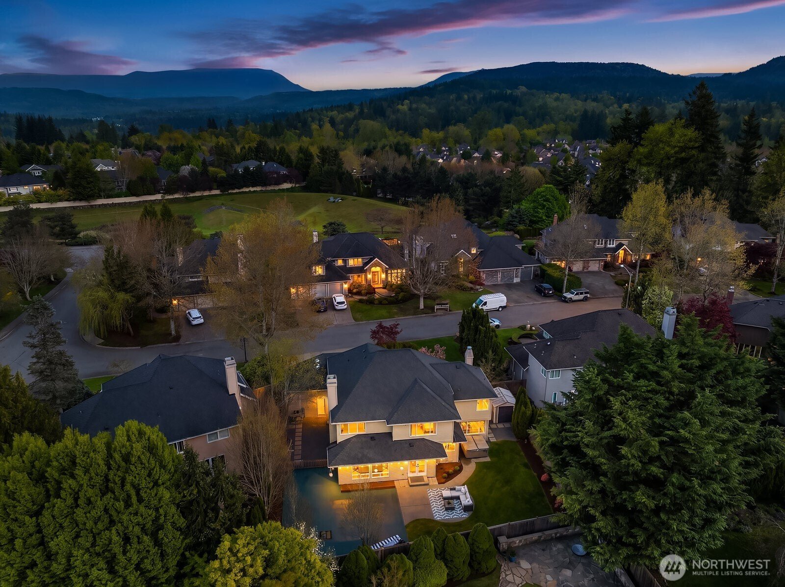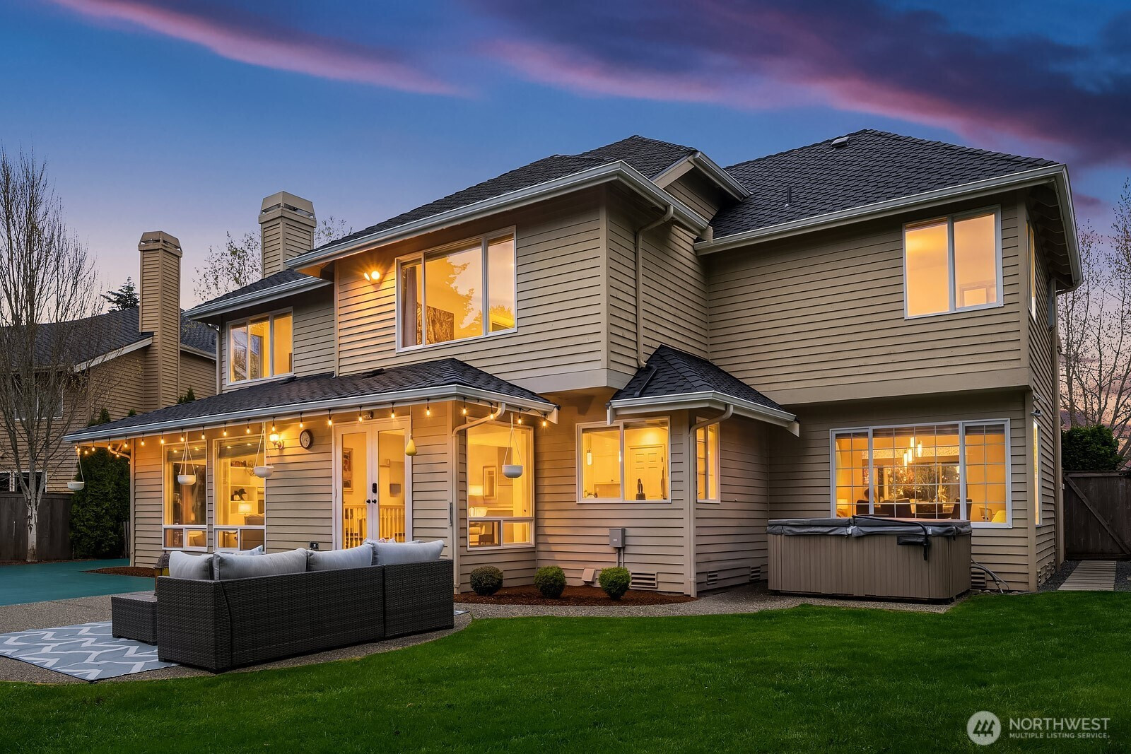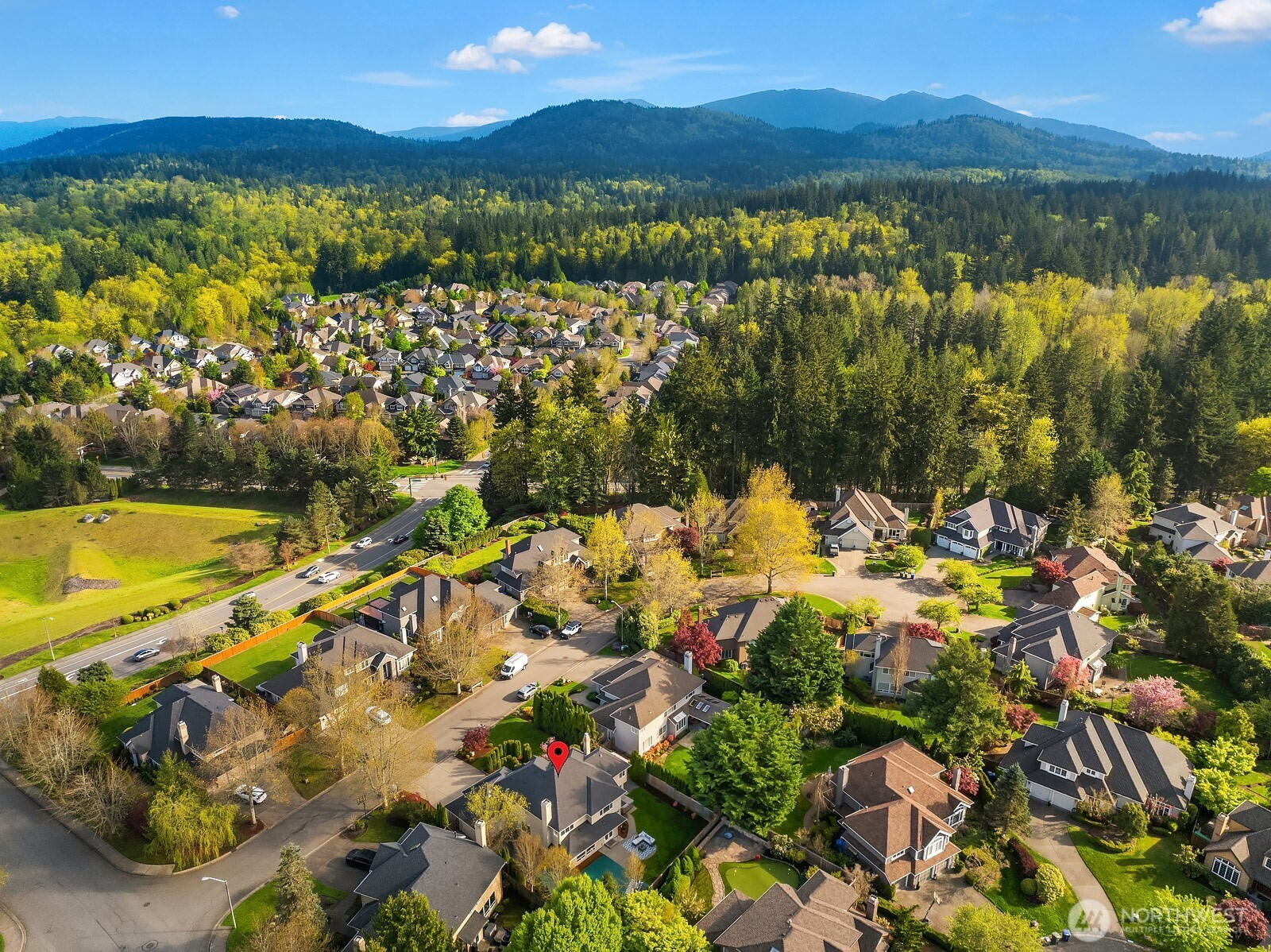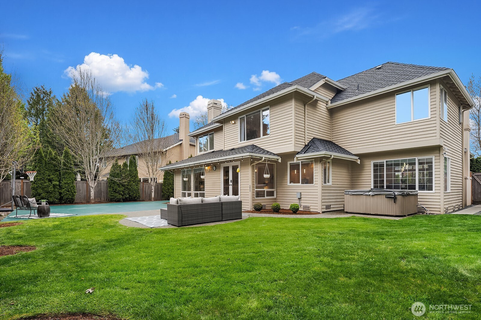 Sought after Buchan resale nestled in the Trossachs community, offering a rare combination of refined finishes and true move-in condition. This east facing 4 bedroom, 2.5 bath home spans 3,110 square feet of well-appointed living space. Step inside to soaring ceilings and a light-filled formal living room framed by a custom front door. The main level gathering room is anchored by expansive picture windows with serene views of the private backyard, perfect for relaxing or hosting guests. The kitchen impresses with upgraded quartz countertops, stainless steel appliances, a large center island, and ample cabinetry, designed equally well for everyday use and entertaining. A dedicated main level office, easily converted to a fifth bedroom, adds valuable flexibility for working from home. The upper level is anchored by a fully remodeled primary suite with a spa-inspired bath featuring premium finishes and a custom built-in walk-in closet offering exceptional organization. Three additional bedrooms and a full bath complete the upper level. Outside, enjoy a shy quarter acre lot with mature landscaping, a sports court, and a three car garage equipped with an EV charger. Central air conditioning ensures year-round comfort in every season. Major updates include a new roof, new furnace, and refinished hardwood floors throughout, making this a truly turnkey opportunity in one of the area's most desirable neighborhoods. Located within the highly regarded Issaquah School District.