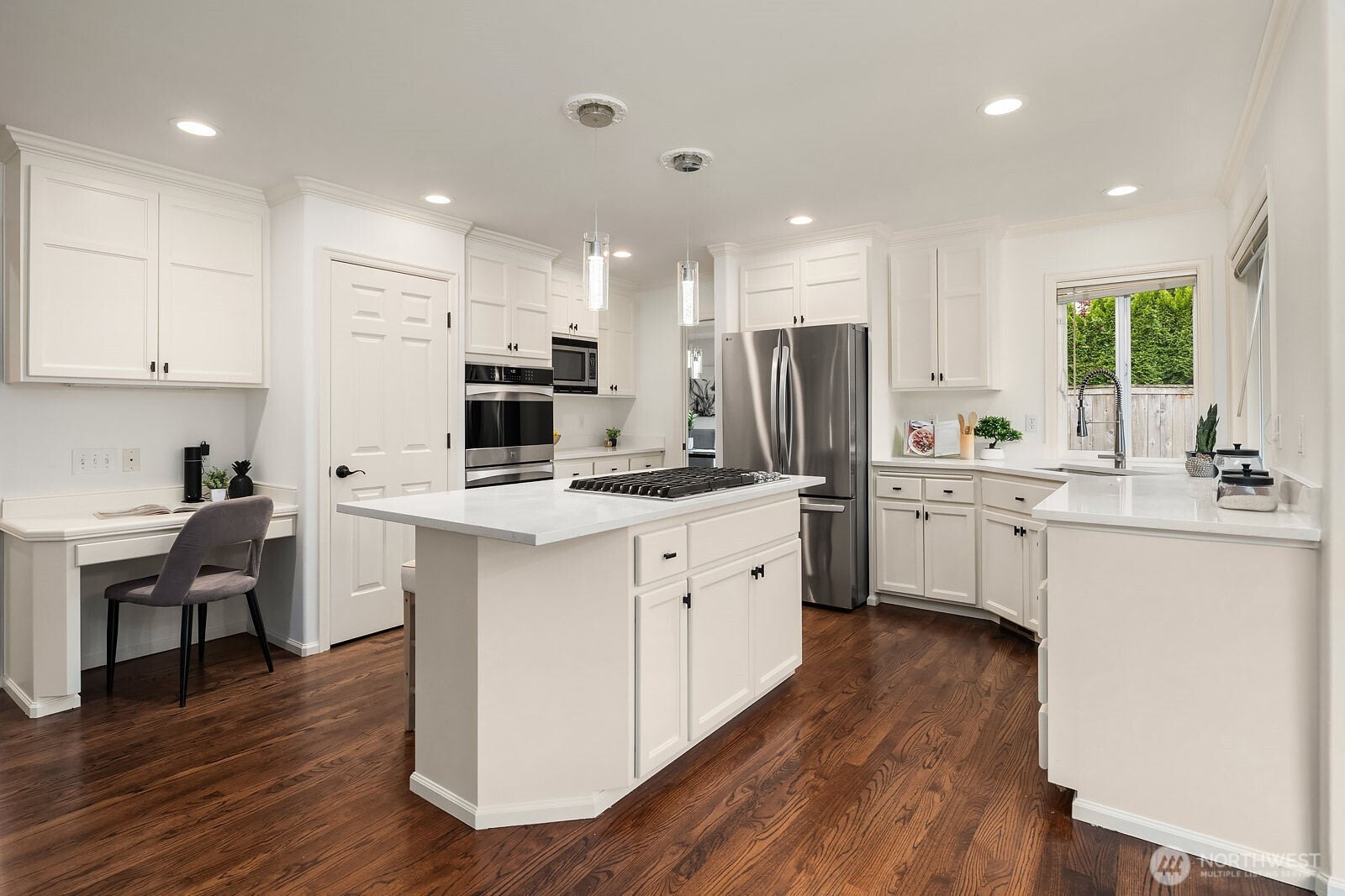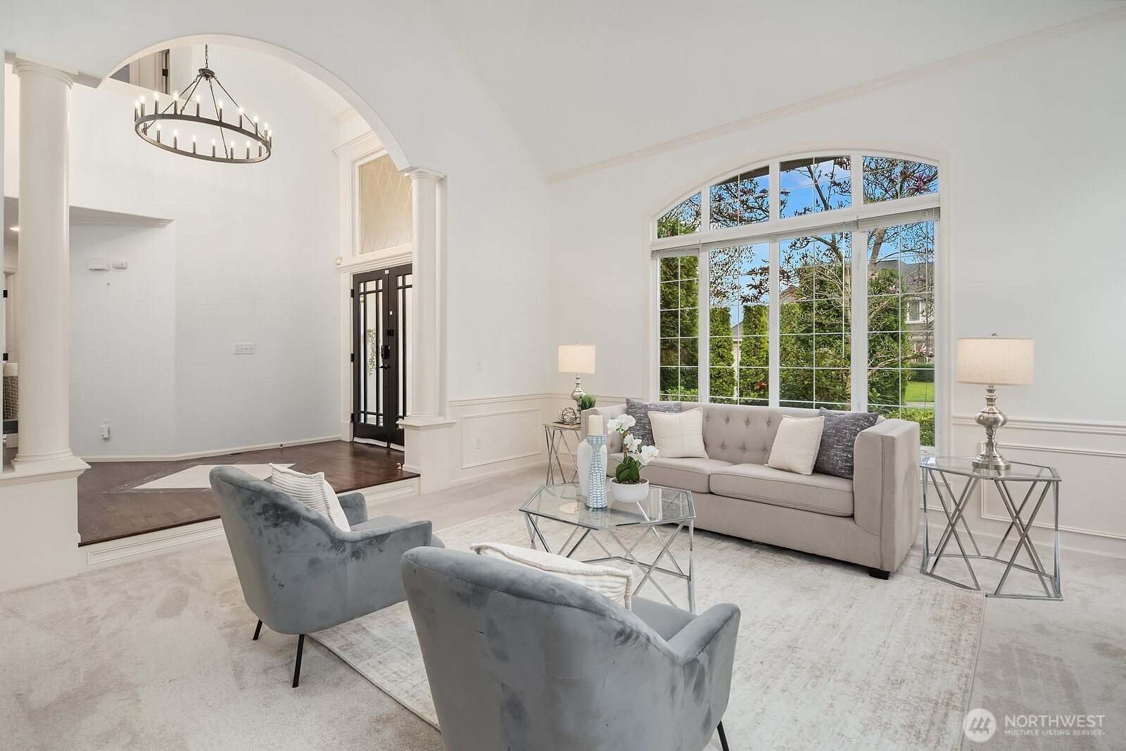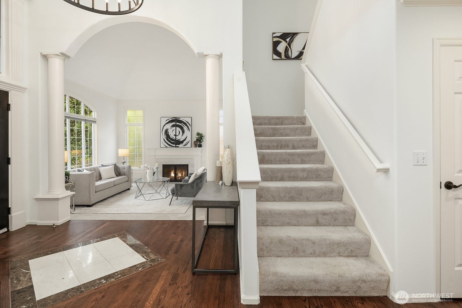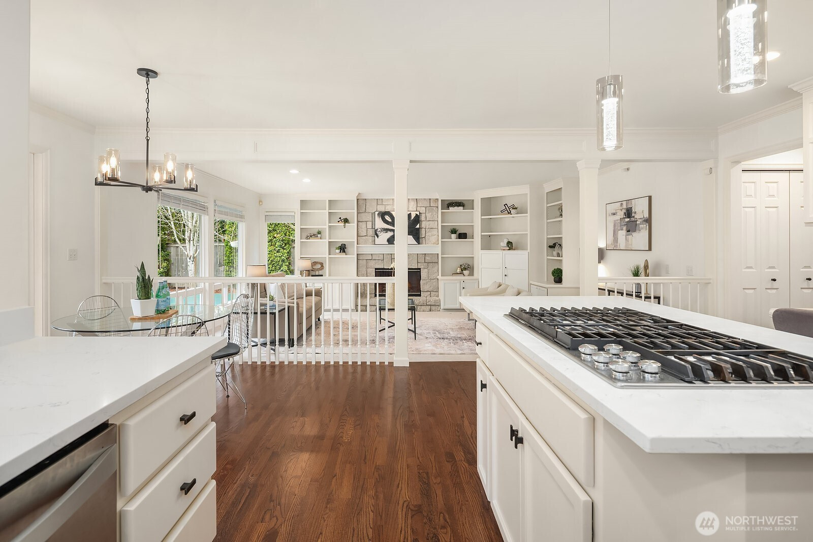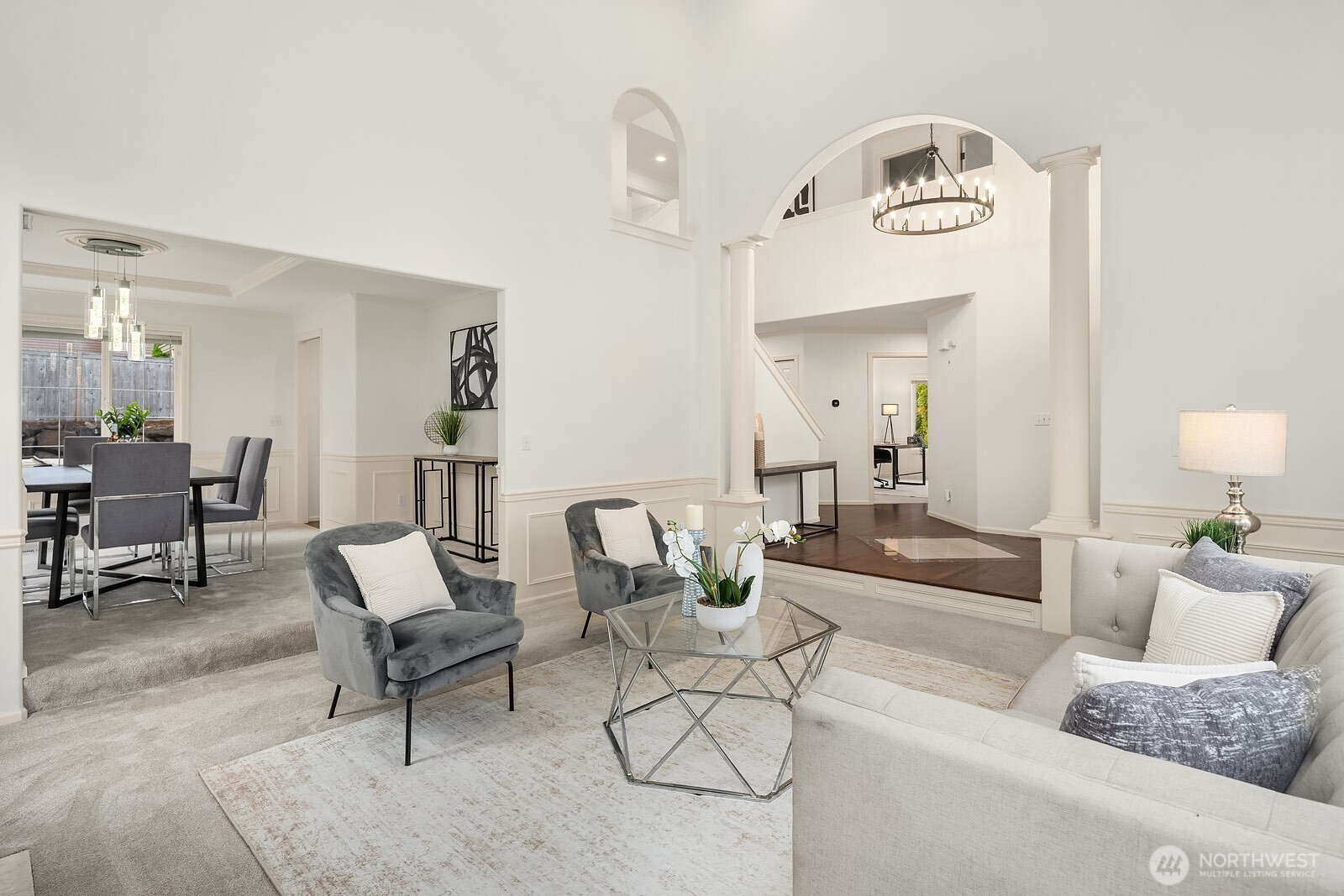 Sought after Buchan resale nestled in the Trossachs community, offering a rare combination of refined finishes and true move-in condition. This east facing 4 bedroom, 2.5 bath home spans 3,110 square feet of well-appointed living space. Step inside to soaring ceilings and a light-filled formal living room framed by a custom front door. The main level gathering room is anchored by expansive picture windows with serene views of the private backyard, perfect for relaxing or hosting guests. The kitchen impresses with upgraded quartz countertops, stainless steel appliances, a large center island, and ample cabinetry, designed equally well for everyday use and entertaining. A dedicated main level office, easily converted to a fifth bedroom, adds valuable flexibility for working from home. The upper level is anchored by a fully remodeled primary suite with a spa-inspired bath featuring premium finishes and a custom built-in walk-in closet offering exceptional organization. Three additional bedrooms and a full bath complete the upper level. Outside, enjoy a shy quarter acre lot with mature landscaping, a sports court, and a three car garage equipped with an EV charger. Central air conditioning ensures year-round comfort in every season. Major updates include a new roof, new furnace, and refinished hardwood floors throughout, making this a truly turnkey opportunity in one of the area's most desirable neighborhoods. Located within the highly regarded Issaquah School District.