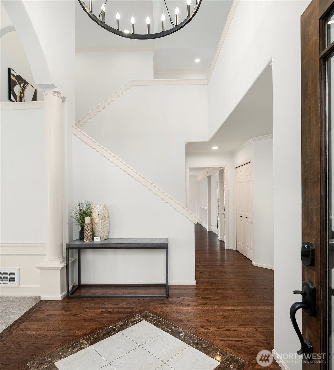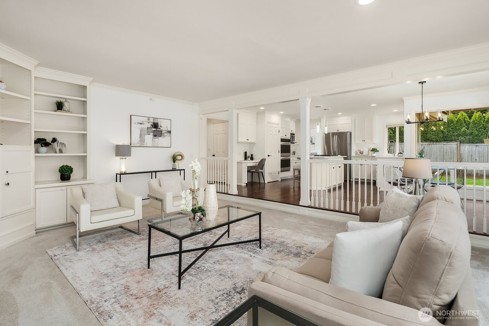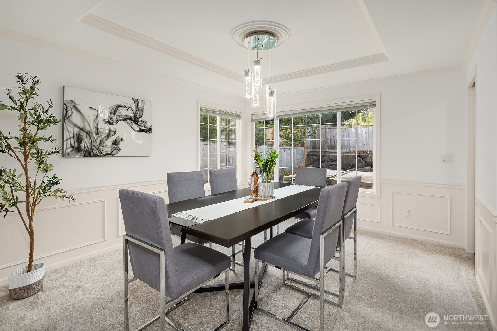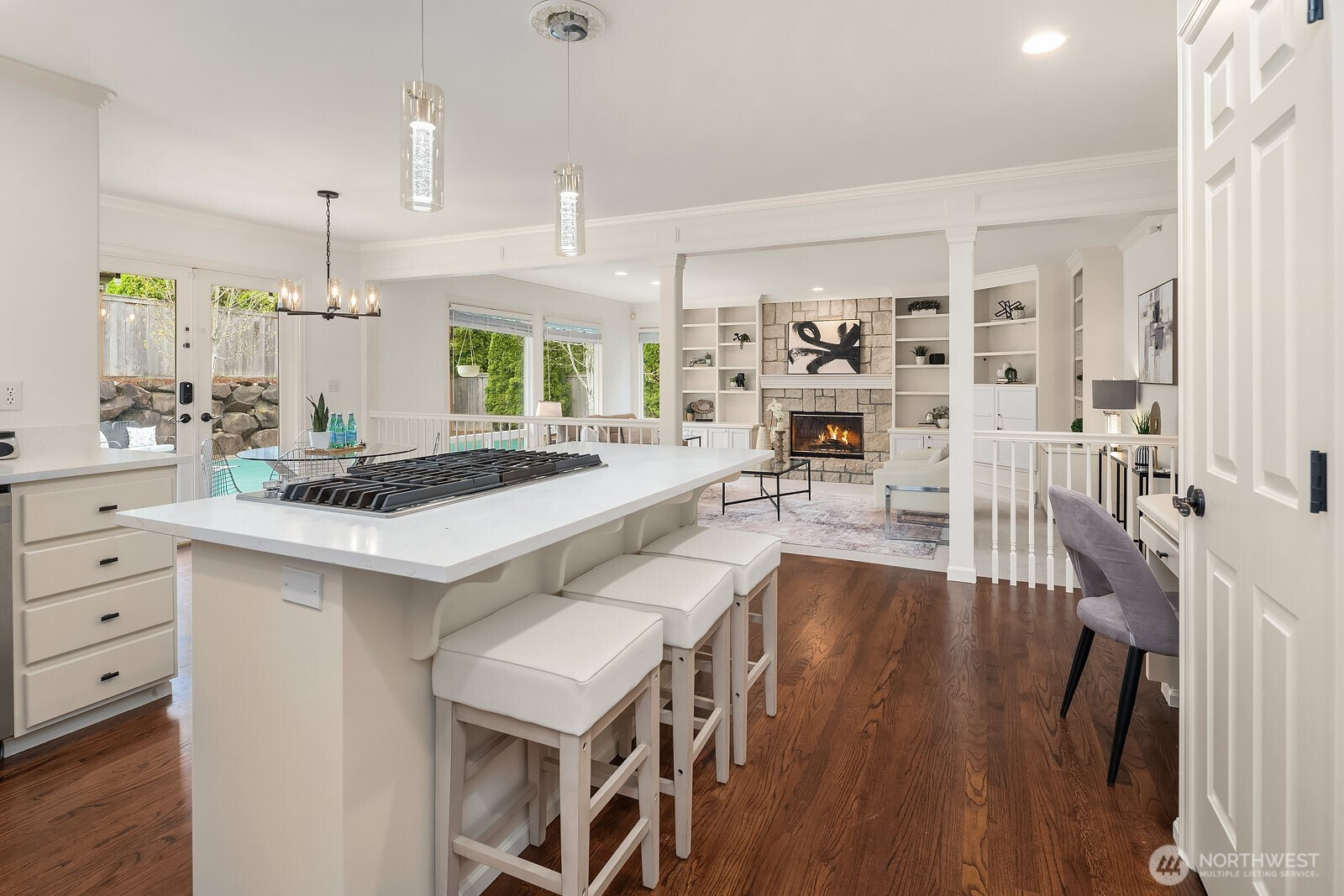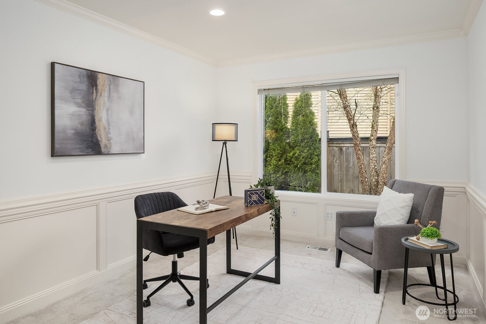 Sought after Buchan resale nestled in the Trossachs community, offering a rare combination of refined finishes and true move-in condition. This east facing 4 bedroom, 2.5 bath home spans 3,110 square feet of well-appointed living space. Step inside to soaring ceilings and a light-filled formal living room framed by a custom front door. The main level gathering room is anchored by expansive picture windows with serene views of the private backyard, perfect for relaxing or hosting guests. The kitchen impresses with upgraded quartz countertops, stainless steel appliances, a large center island, and ample cabinetry, designed equally well for everyday use and entertaining. A dedicated main level office, easily converted to a fifth bedroom, adds valuable flexibility for working from home. The upper level is anchored by a fully remodeled primary suite with a spa-inspired bath featuring premium finishes and a custom built-in walk-in closet offering exceptional organization. Three additional bedrooms and a full bath complete the upper level. Outside, enjoy a shy quarter acre lot with mature landscaping, a sports court, and a three car garage equipped with an EV charger. Central air conditioning ensures year-round comfort in every season. Major updates include a new roof, new furnace, and refinished hardwood floors throughout, making this a truly turnkey opportunity in one of the area's most desirable neighborhoods. Located within the highly regarded Issaquah School District.