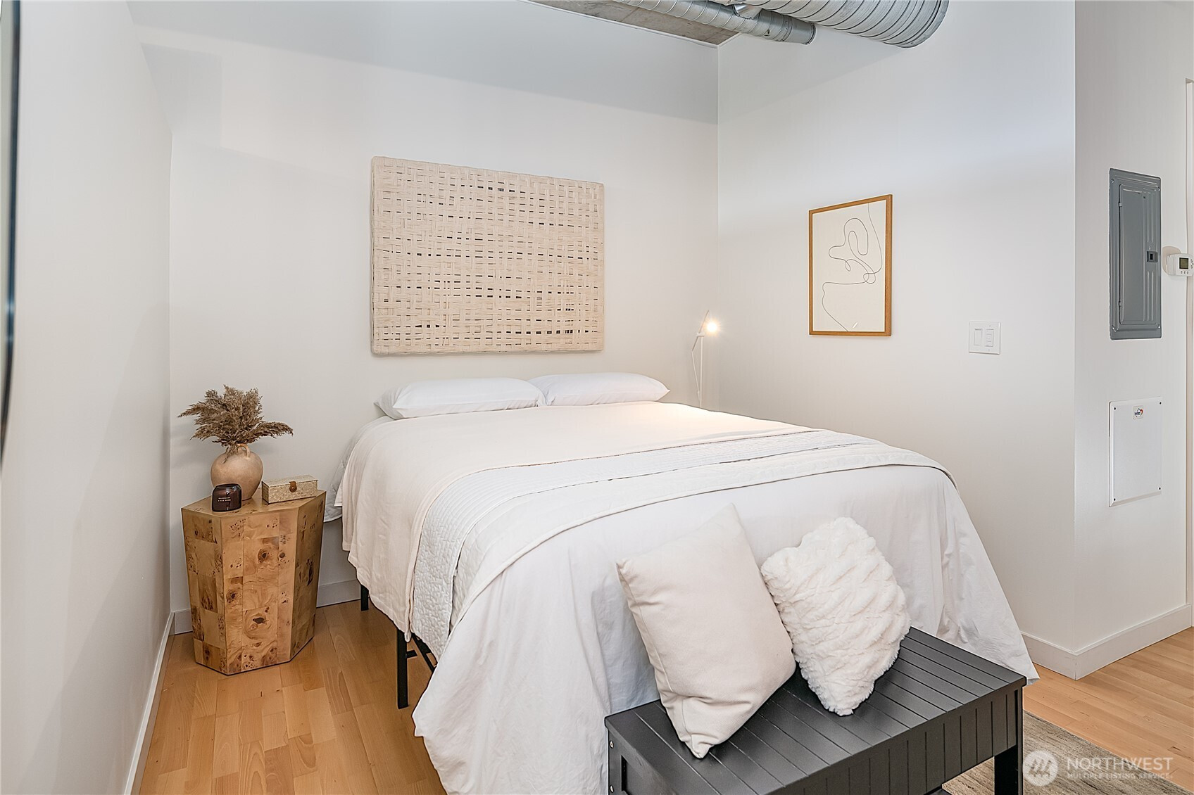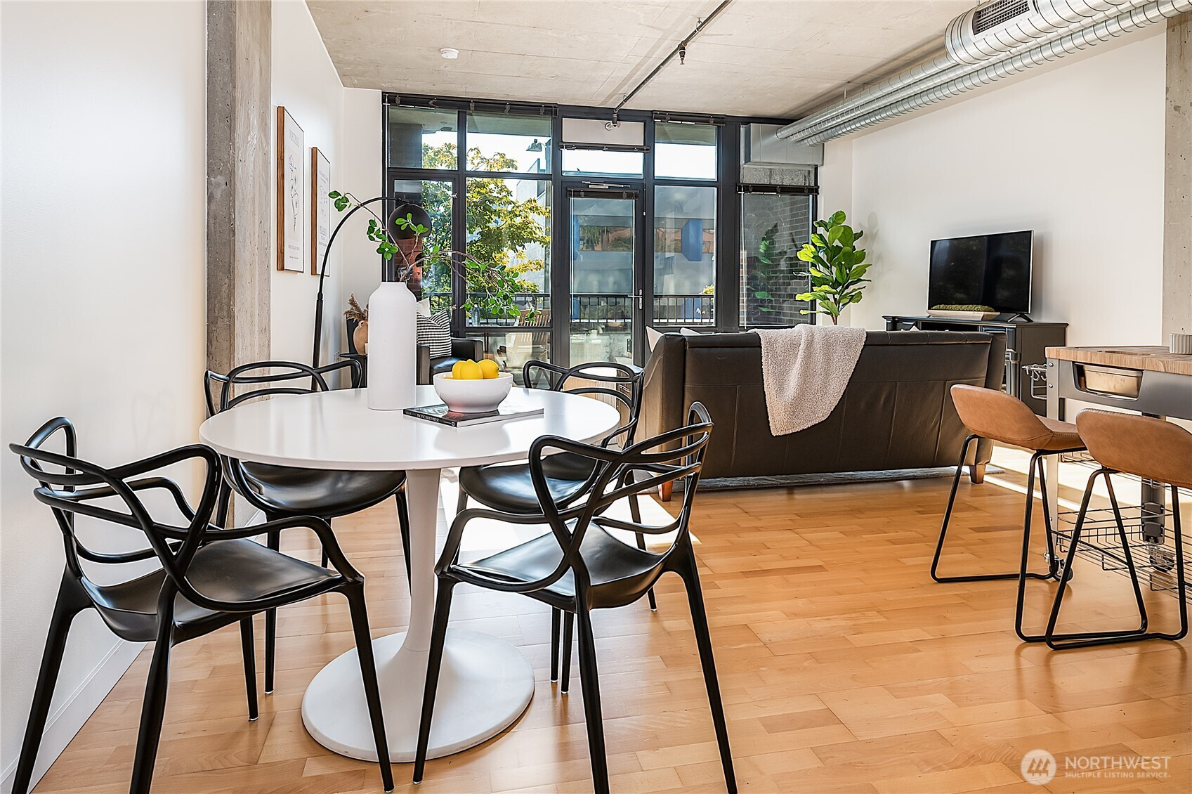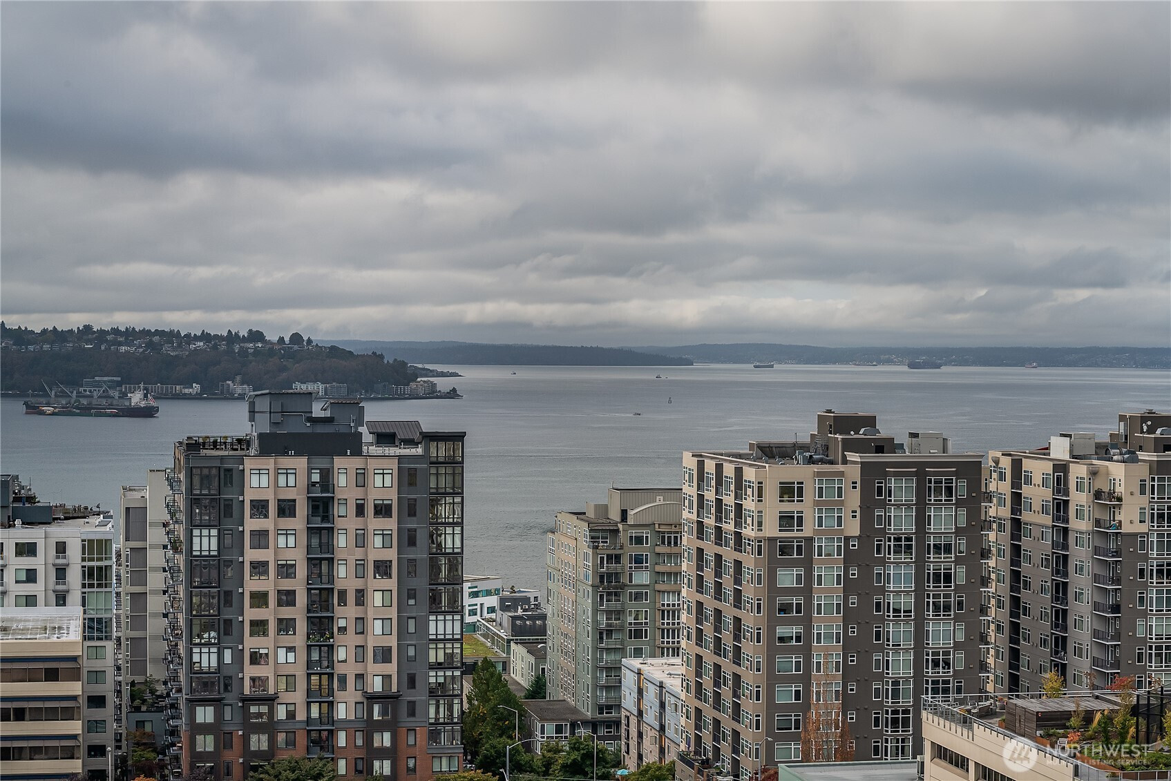 Experience the epitome of city living in this near 1000SF 1BD+Den at Mosler Lofts. This home features 10'ceilings, exposed concrete, & West-facing floor-to-ceiling windows opening to a private terrace oasis. The sleek kitchen boasts quartz counters, SS appliances w/gas stv, & great strg. The BD can remain open for intended loft-style vibes or enclosed as preferred, while the Den is ideal for a home office. EV-ready parking, motorcycle parking, private storage, & amenities incl- a rooftop deck w/Space Needle & sound views, 24-hr concierge, fitness & guest suite. Steps from the Olympic Sculpture Park, Climate Pledge & Pike Place, this home offers the best of Belltown, Lower Queen Anne & SLU living w/quick access to ALL major transit routes.