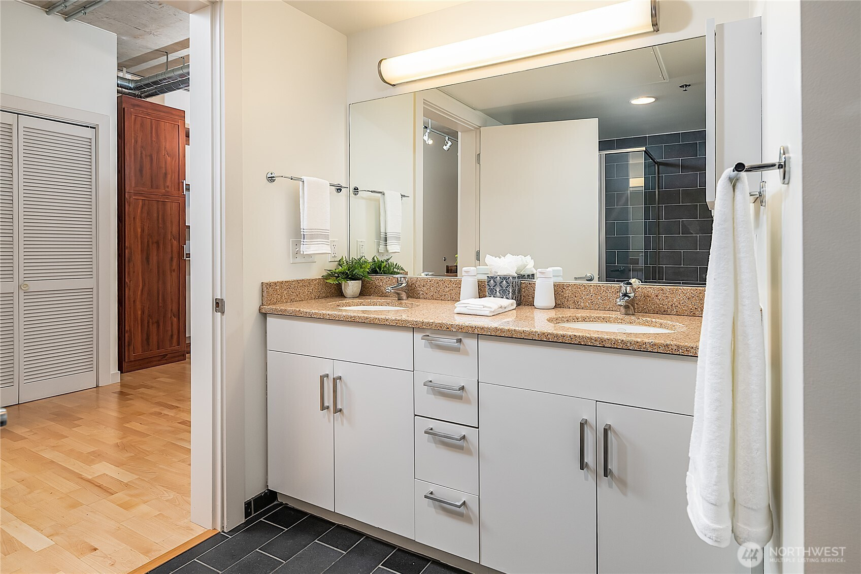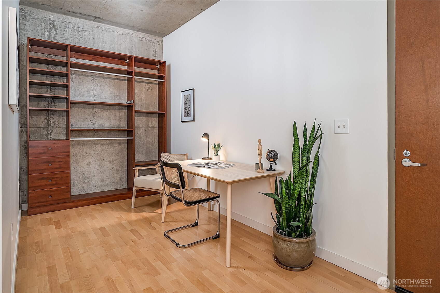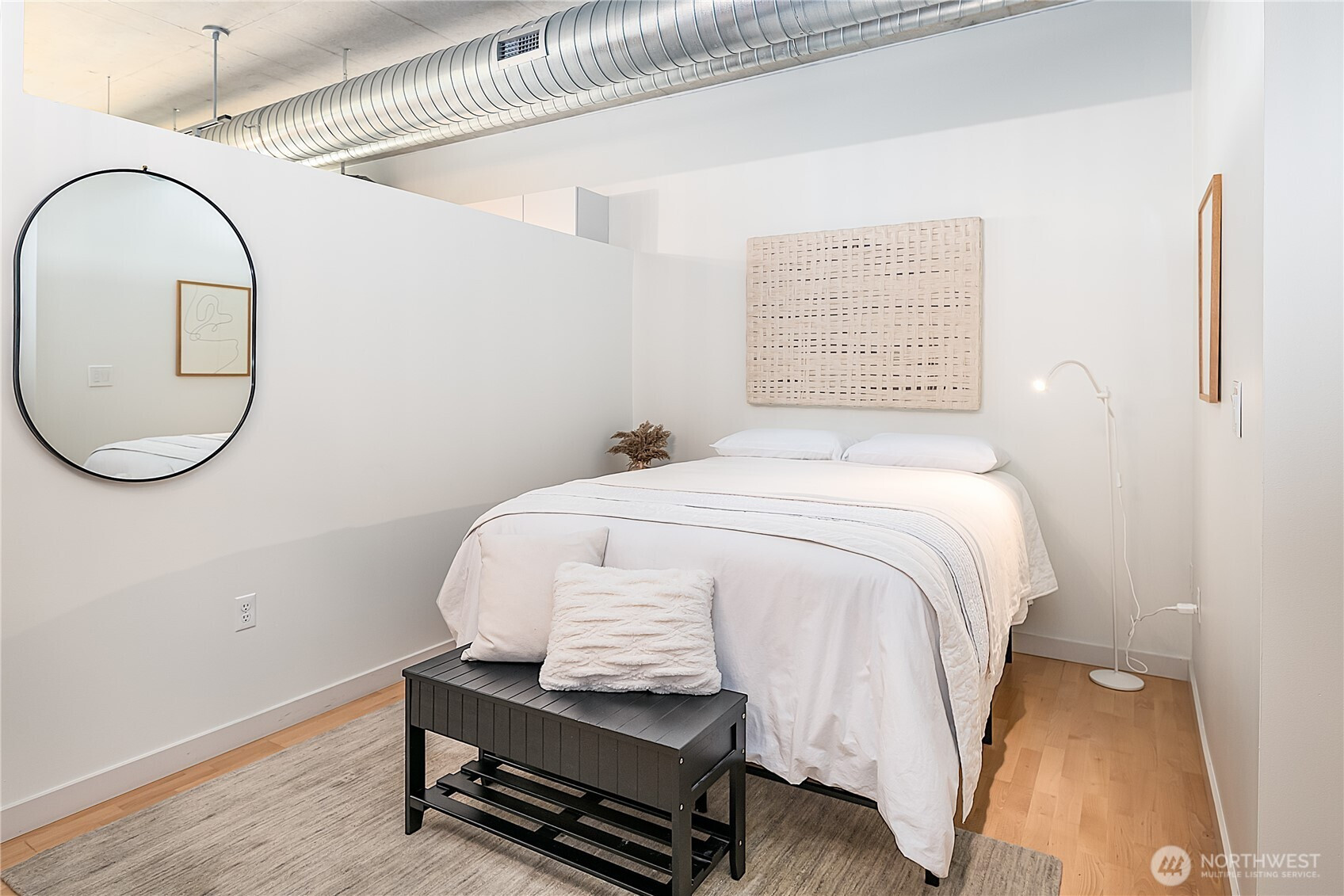 Experience the epitome of city living in this near 1000SF 1BD+Den at Mosler Lofts. This home features 10'ceilings, exposed concrete, & West-facing floor-to-ceiling windows opening to a private terrace oasis. The sleek kitchen boasts quartz counters, SS appliances w/gas stv, & great strg. The BD can remain open for intended loft-style vibes or enclosed as preferred, while the Den is ideal for a home office. EV-ready parking, motorcycle parking, private storage, & amenities incl- a rooftop deck w/Space Needle & sound views, 24-hr concierge, fitness & guest suite. Steps from the Olympic Sculpture Park, Climate Pledge & Pike Place, this home offers the best of Belltown, Lower Queen Anne & SLU living w/quick access to ALL major transit routes.