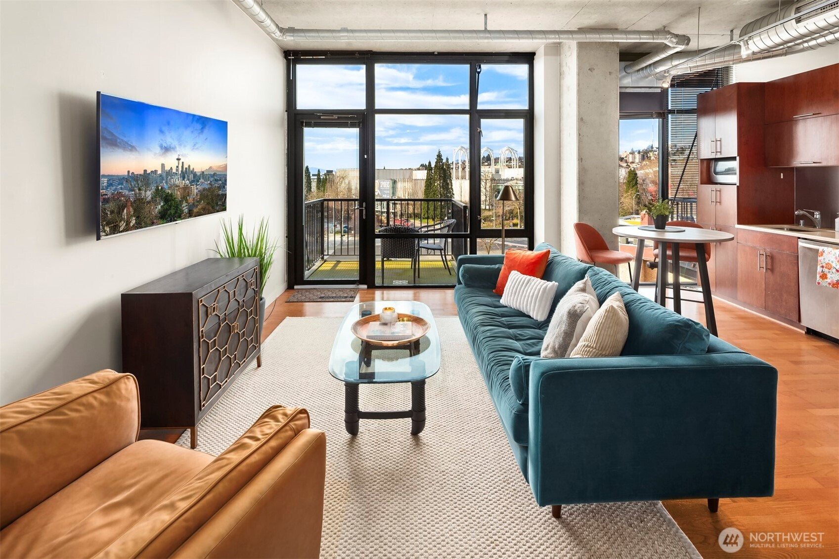 This iconic Mosler Lofts residence features sophisticated architecture and design plus a commanding view of the Space Needle. Designed as an ideal urban retreat, this home places you at the center of Seattleās downtown lifestyle, surrounded by iconic views, resort caliber amenities and the energy of Belltown and South Lake Union. Soaring 10-foot ceilings and expansive walls of glass flood the interior with natural light, creating an open, airy ambiance that lives well beyond its square footage. The space is impeccably finished with hardwood floors, a beautiful kitchen featuring gas cooking and stainless steel appliances.Enjoy the convenience of a full size washer and dryer in your own condo plus secure garage parking and a dedicated storage locker along with a well-managed HOA offering a fitness center, full-time concierge services and a guest suite. Take in sweeping skyline views and unforgettable sunsets from your private balcony or entertain above it all on the rooftop terrace complete with BBQs, a fire pit and an exceptional setting for city living at its finest. Chances to secure this level of luxury at this value are exceptionally rare!