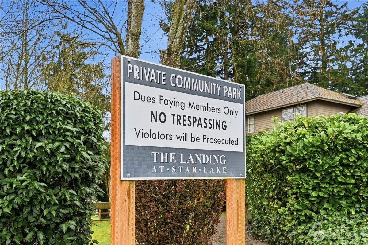 The Landing at Star Lake offers a rare opportunity to buy, as homes rarely become available. Nestled in a peaceful neighborhood with great access to freeways, this charming home offers private community lake access exclusively to residents. Residents may bring their own kayak and launch it from the dock or choose to unwind fishing at Star Lake. The property has been recently renovated and features a spacious, fenced backyard and a larger two-car garage that emphasizes additional storage space for all your toys. With four bedrooms and an impressive open floor plan with vaulted ceilings, the home feels expansive and inviting. Additional bedroom on lower floor with full bathroom is a hard find. The primary bedroom boasts a stunning bathroom with both a walk-in shower and closet. Other enhancements include sleek white cabinetry, designer countertops, fresh interior and exterior paint, new flooring, a durable 50-year roof, updated furnace and hot water tank and all the essentials for comfort. The backyard offers excellent privacy thanks to the size of the lot, and the concrete patio provides plenty of space to enjoy the backyard with elbow room. Residents enjoy lake amenities, including a private dock and dedicated lake access for residents only. This home is ideal for commuters, offering easy access to I-5, Highway 167, grocery stores, restaurants, and the new Star Lake public transit station for the light rail. It combines comfort with convenience and is A must-see home.