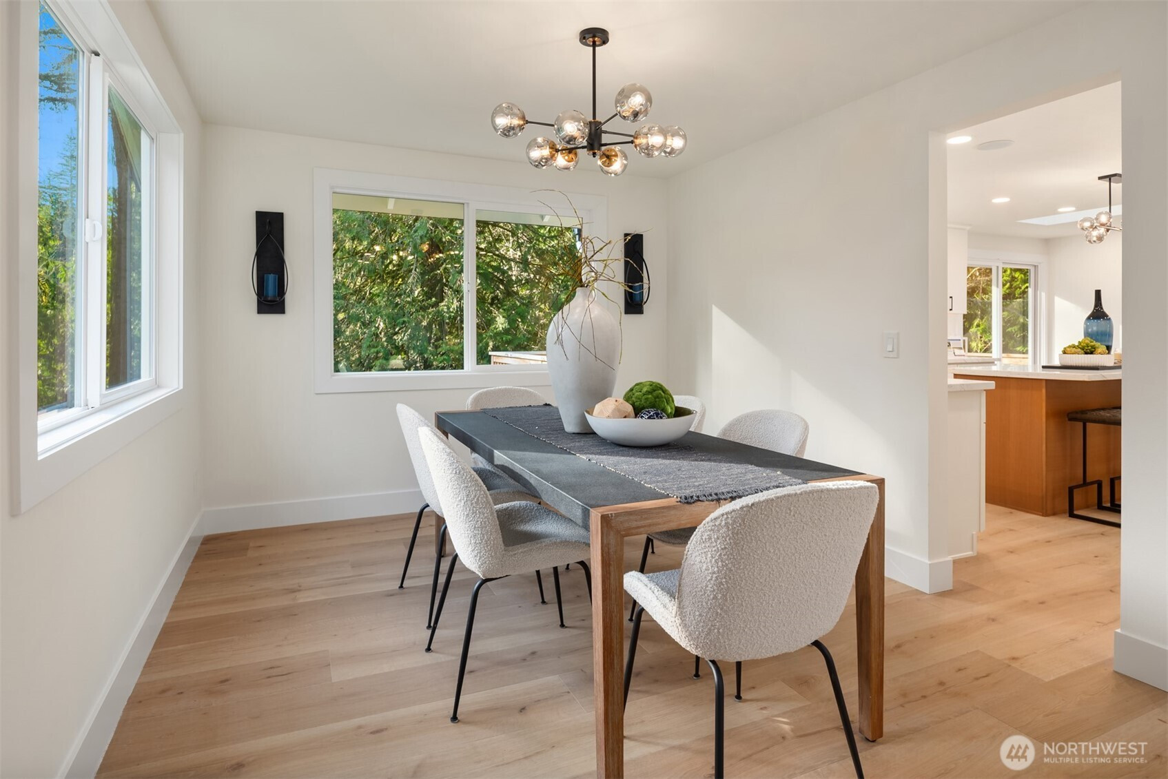 Discover your private retreat in Union Hill, where modern comfort meets peaceful Northwest living on 5 serene wooded acres. This beautifully remodeled modern rambler with daylight basement offers an open, light-filled floor plan designed for both everyday living and effortless entertaining. The stunning new chef’s kitchen features quartz countertops, European stainless appliances, custom cabinetry, and a spacious dining area that opens to a large deck overlooking the tranquil forest setting. The spacious primary suite is a true sanctuary with a spa-like bath, heated floors, and a walk-in closet. The lower level offers exceptional flexibility with two additional bedrooms, an office, and a massive family room—perfect for a home theater, game room, gym, or multi-generational living. Recent upgrades include new windows, new roof, and fresh interior and exterior paint, making this home truly move-in ready. Enjoy the rare combination of privacy and convenience, just minutes to Redmond Town Center, shopping, dining, parks, and Microsoft. A unique opportunity to own a turnkey retreat with space to breathe, relax, and recharge.