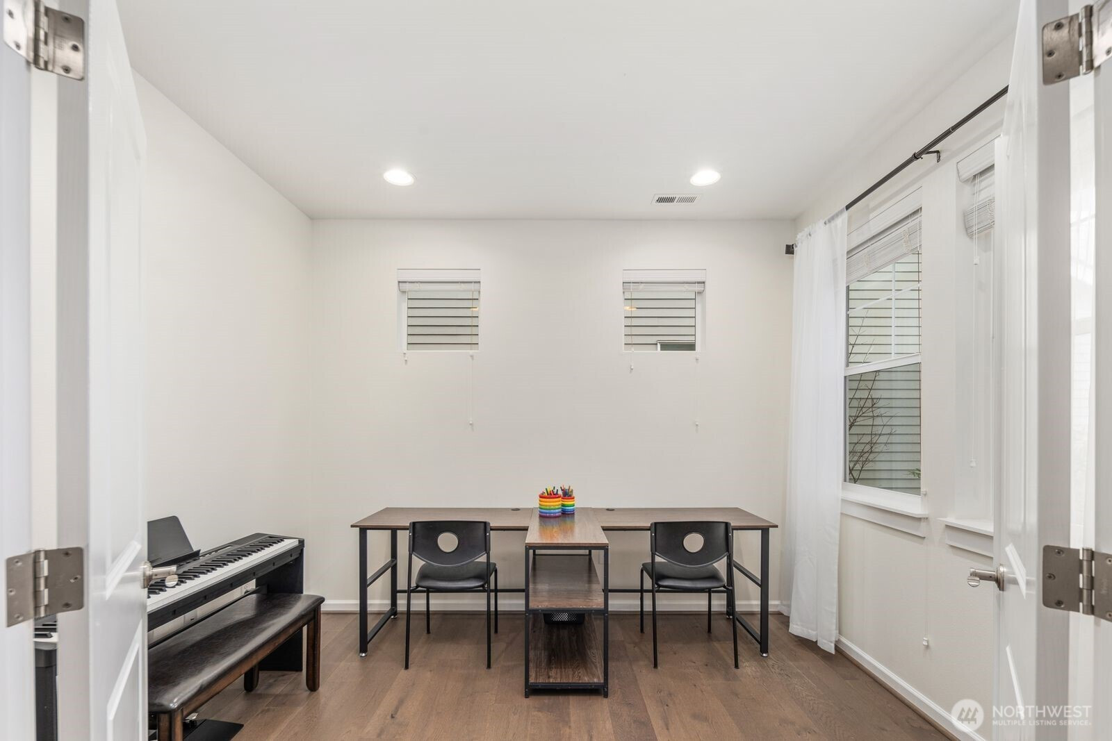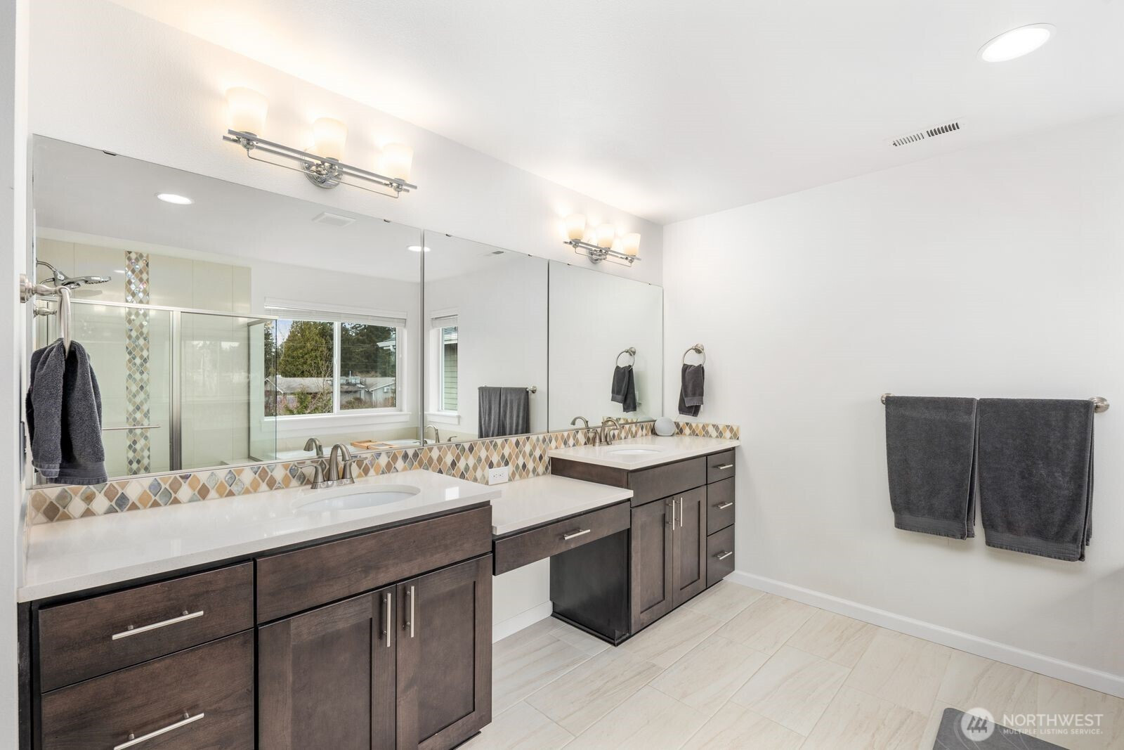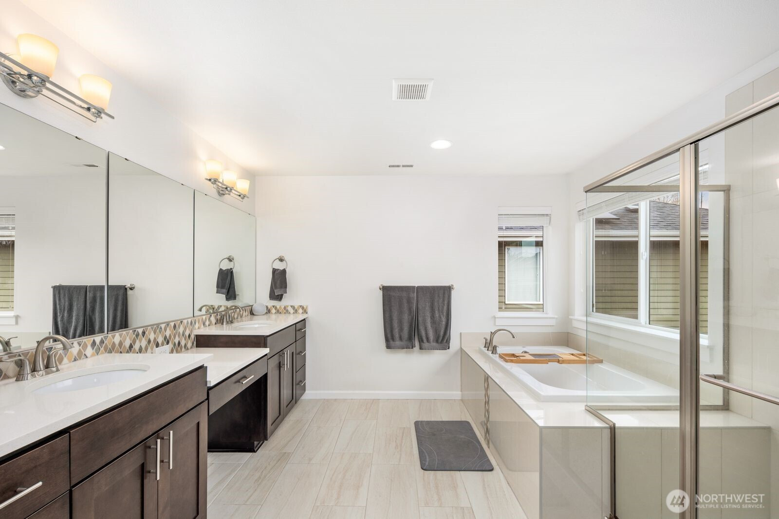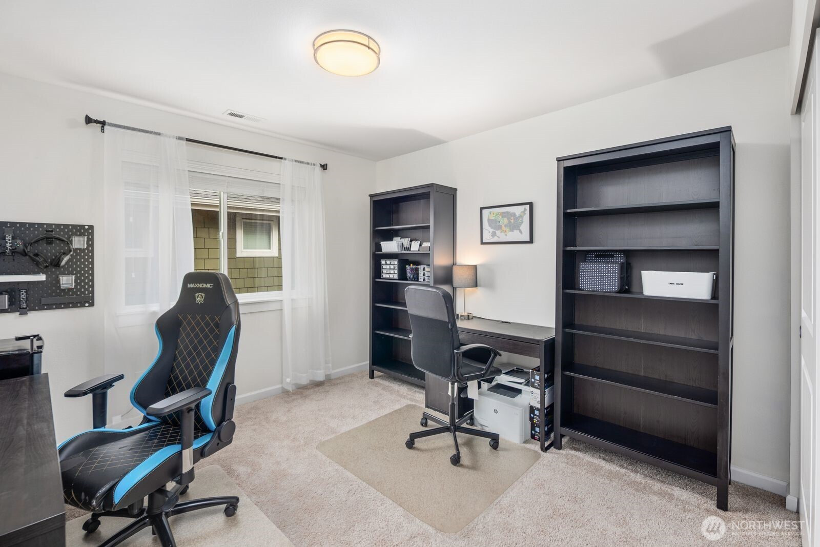 Built in 2019 and still like new, this 2,639 sq. ft. home offers 4 bedrooms and 2.5 baths in a quiet cul-de-sac within a beautifully maintained community, featuring a private neighborhood park at the end of the street. West-facing and backing to a serene greenbelt, the home enjoys abundant natural light and a fully fenced private yard. The open-concept main level showcases hardwood floors, a spacious kitchen with stainless steel appliances, large island with a formal dining area, gas fireplace in the living room, custom blinds throughout, Solar Panel, Tankless water heat, mudroom built-ins, EV charger in garage, new W/D and dishwasher, and A/C—ideal for both everyday living and entertaining. Upstairs features an inviting loft, comfortable secondary bedrooms and bathroom, and a spacious primary suite with a 5-piece en-suite bath and walk-in closet. Conveniently located minutes to the Star Lake Light Rail station with easy access to Sea-Tac Airport and downtown Seattle, and close to Redondo Beach, dining, and everyday amenities. A rare blend of comfort, privacy, and convenience—this home is a must-see.